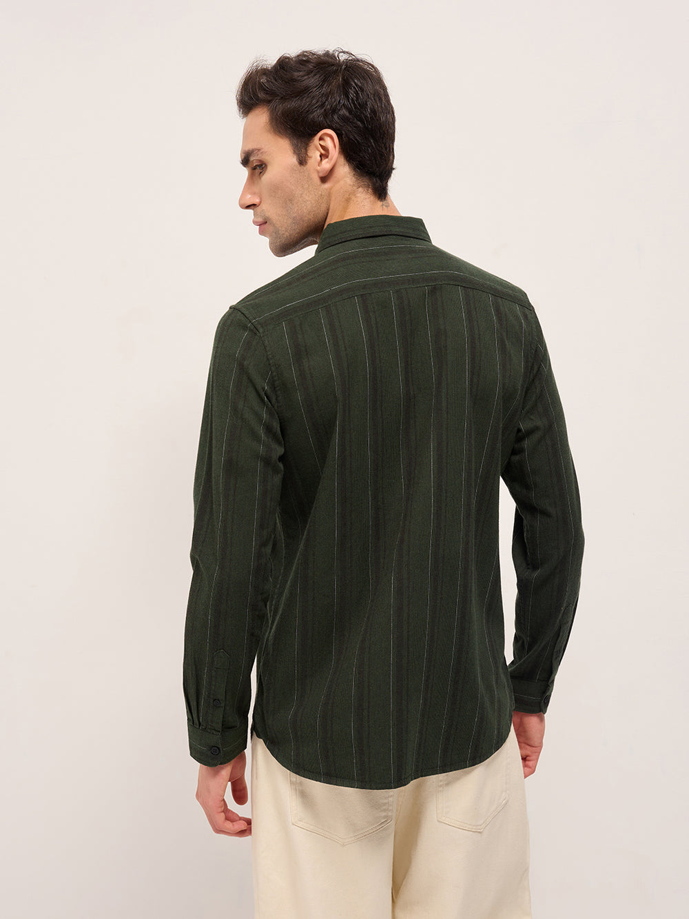 Green with Black Vertical Stripes Slim Fit Casual Shirt