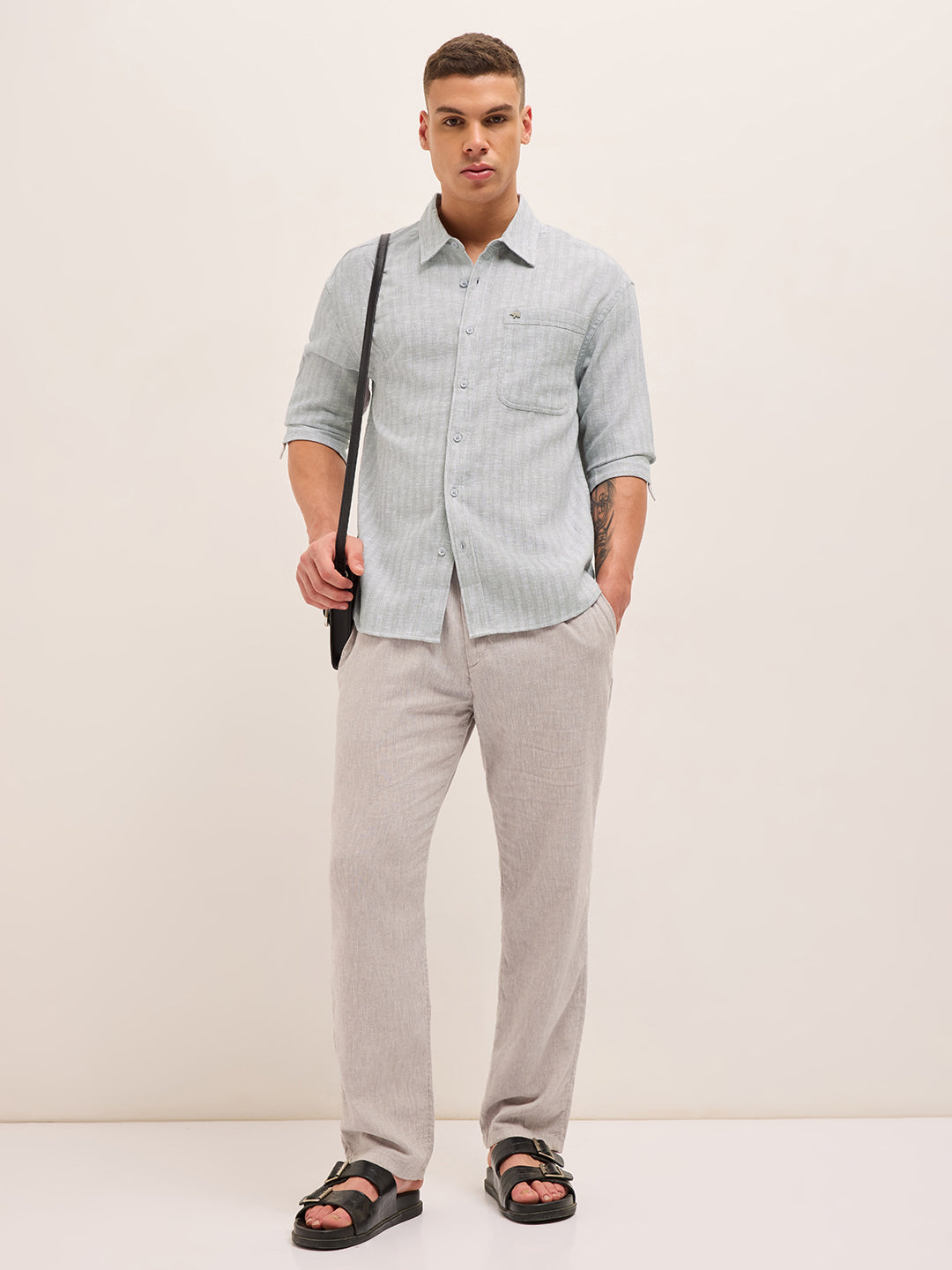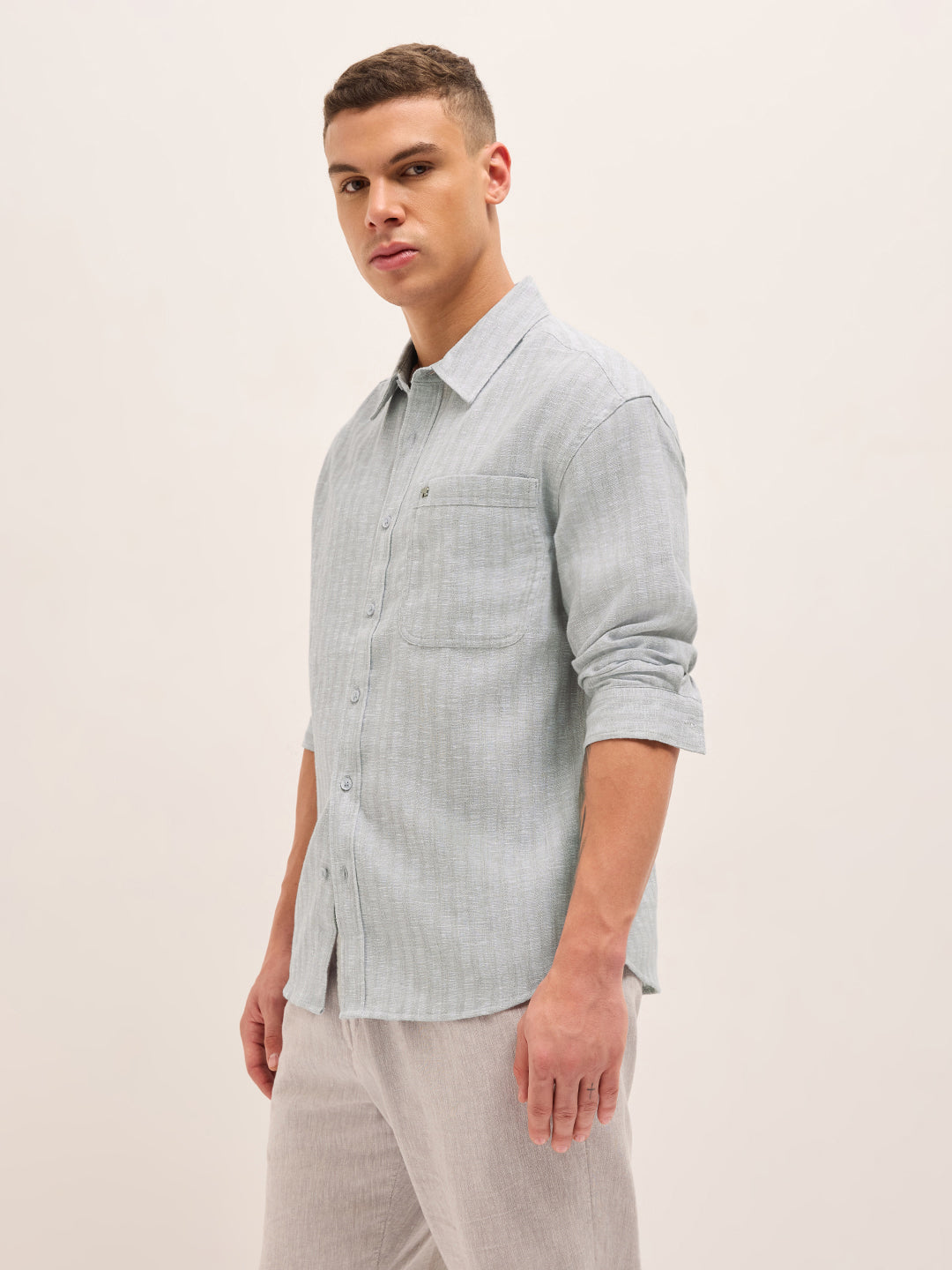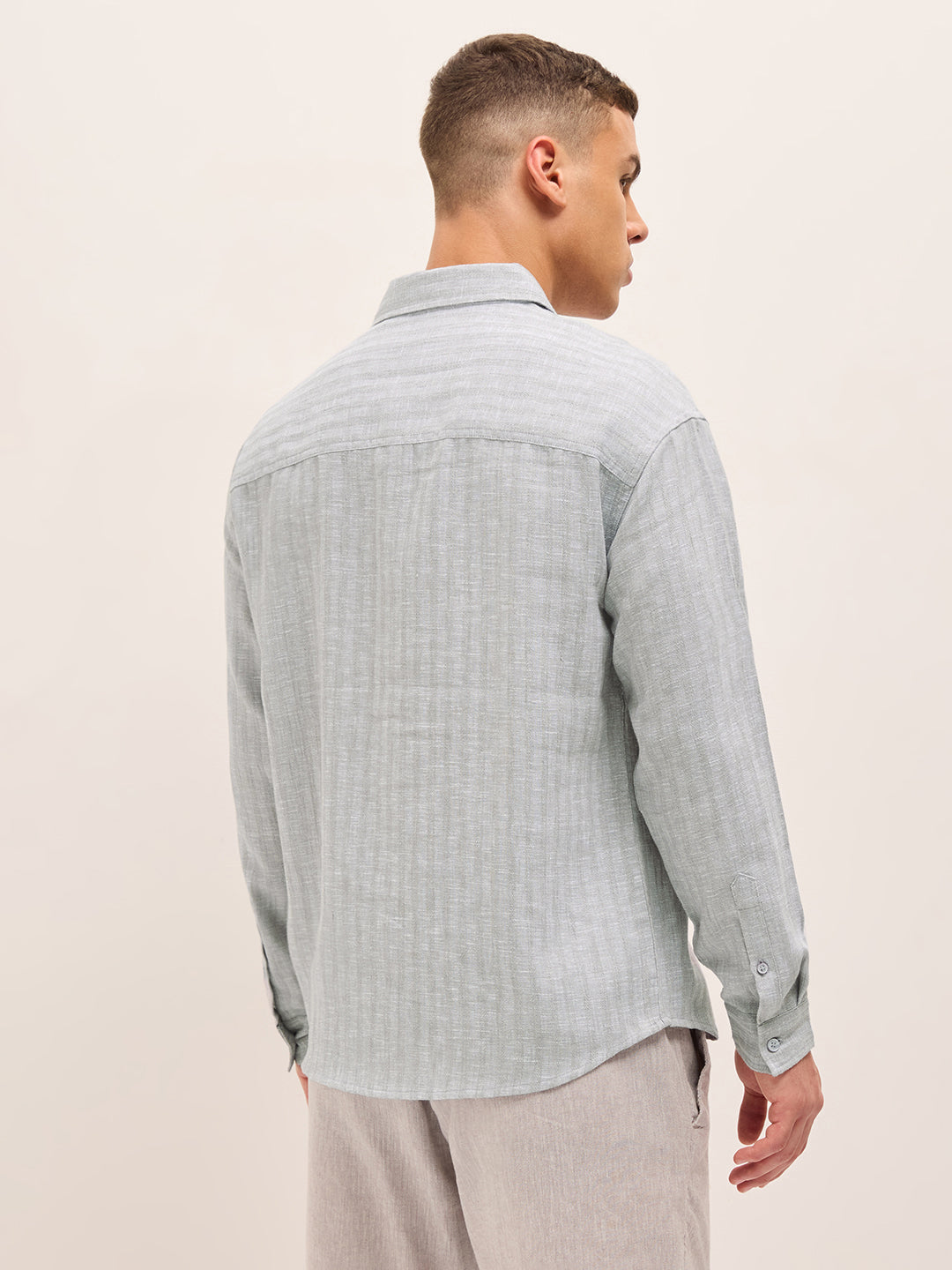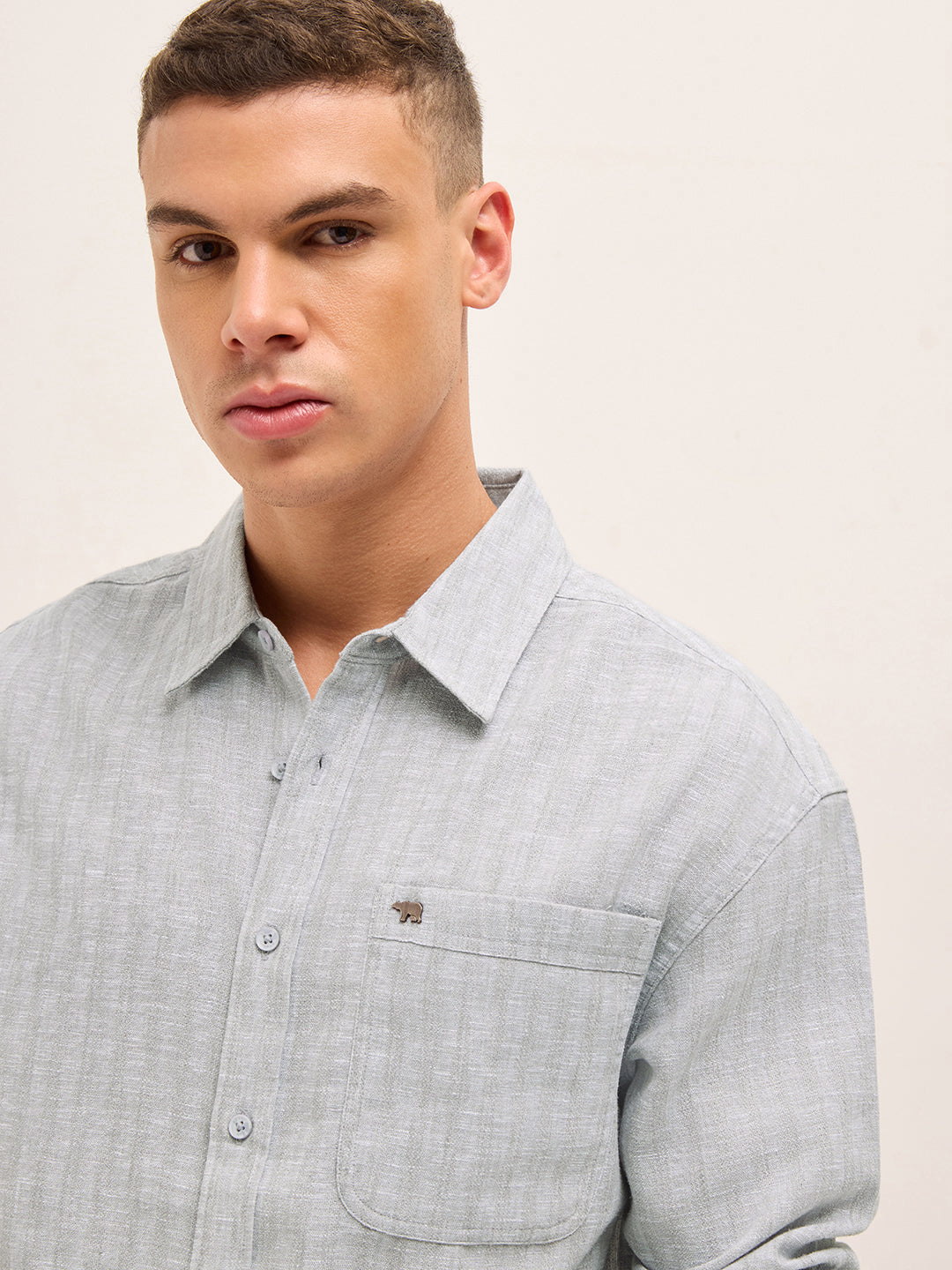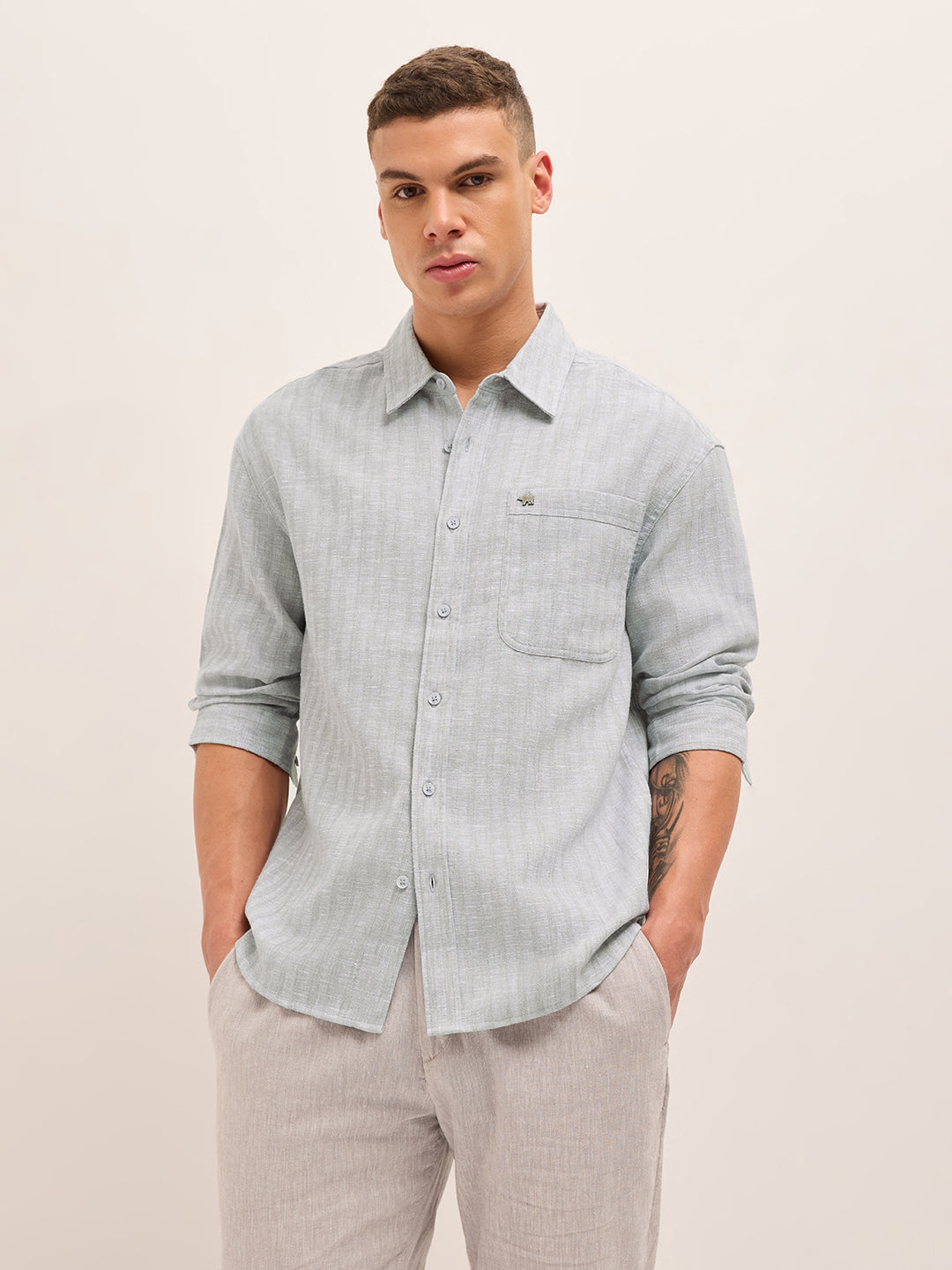 Shop Grey Woven Stripe Relaxed Fit Overshirt Online.