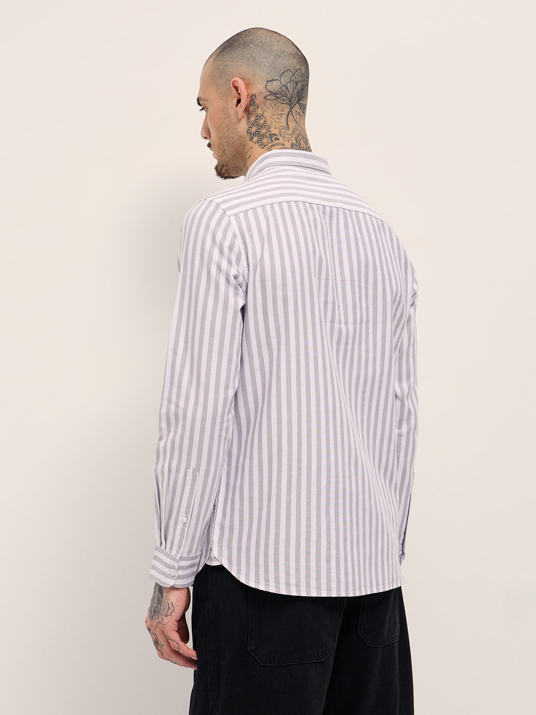 Grey & White Vertical Stripes Slim Fit Casual Shirt