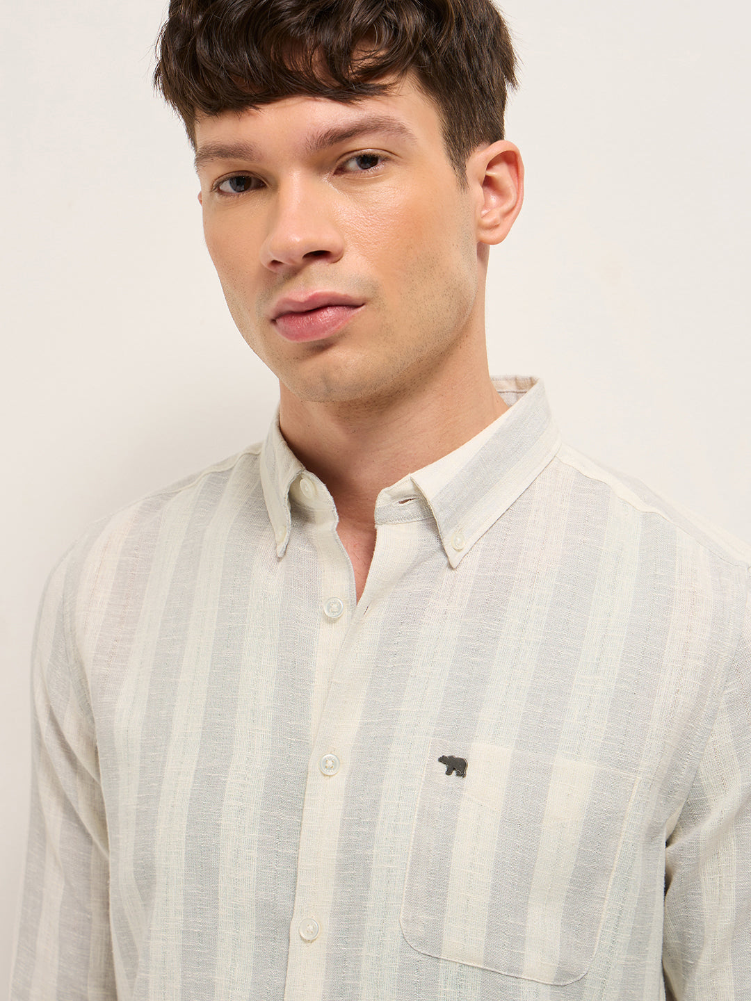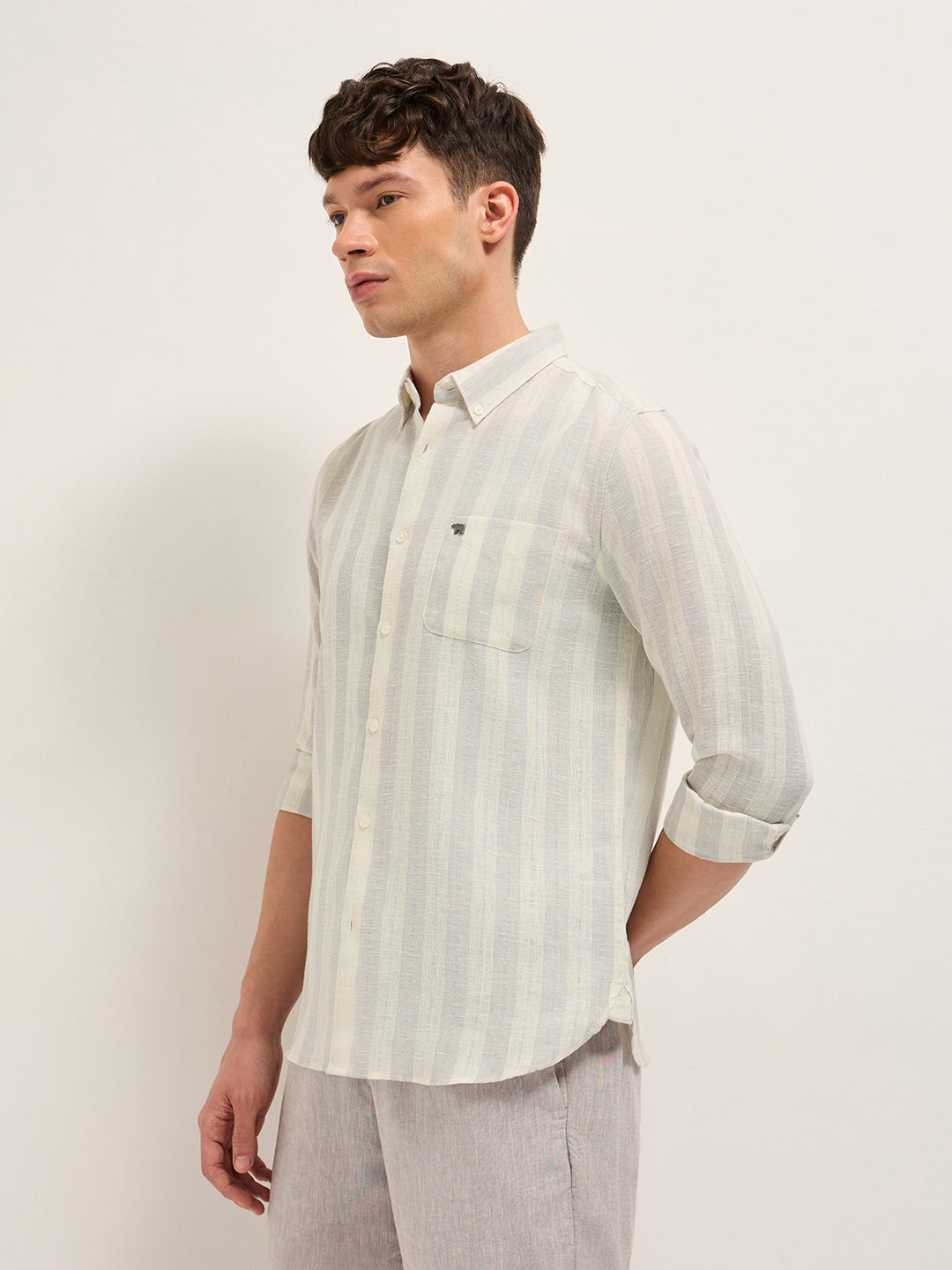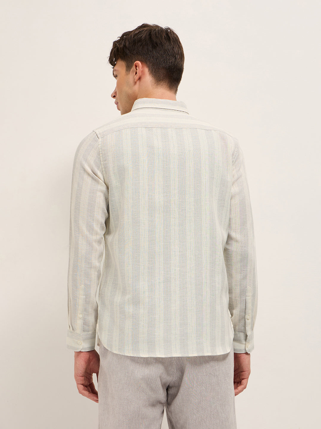 Grey Woven Vertical Stripe Slim Fit Casual Shirt