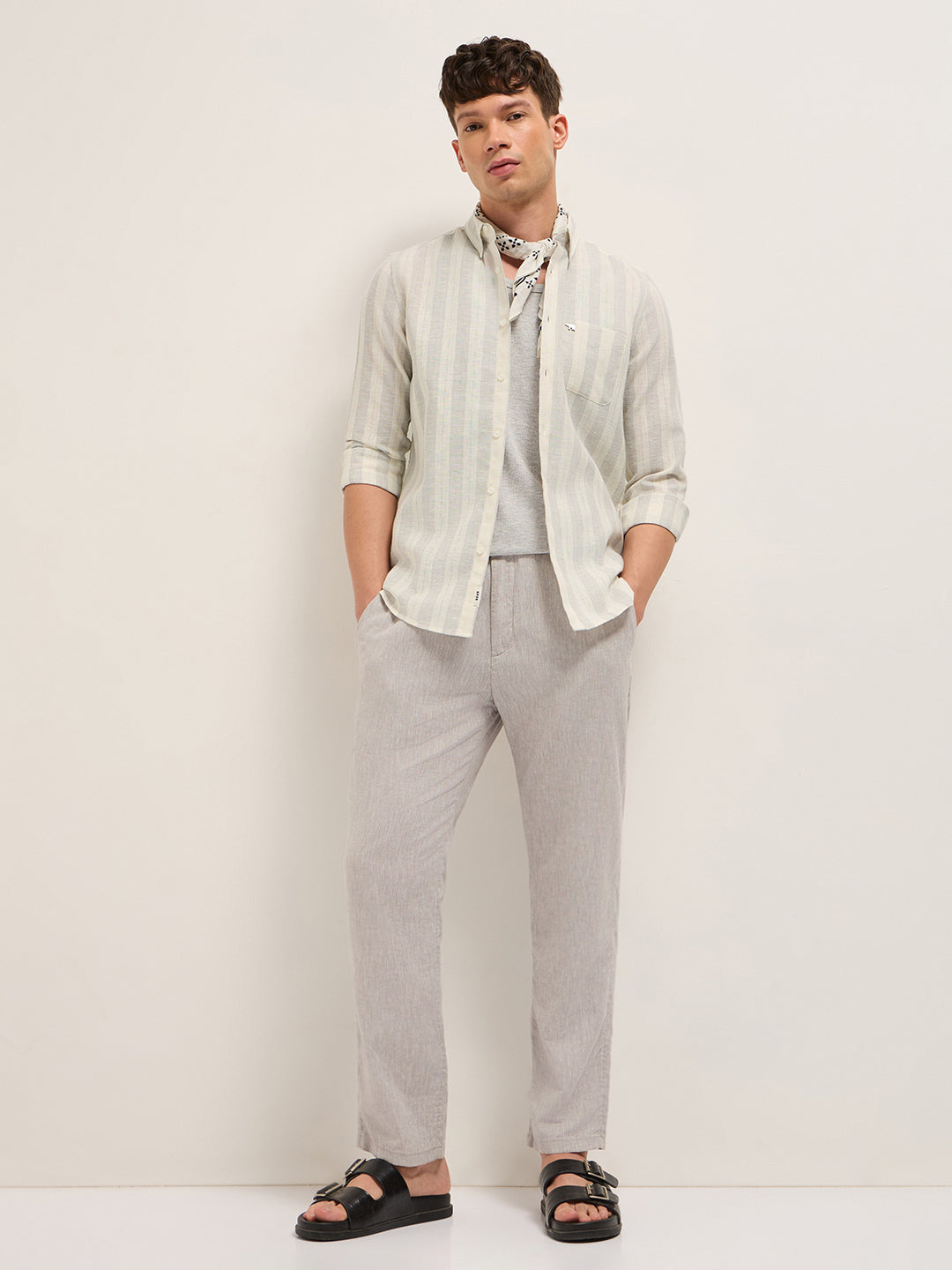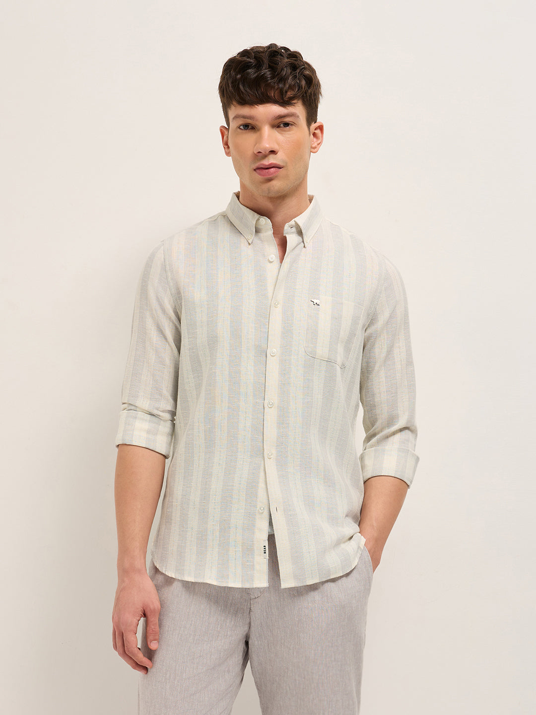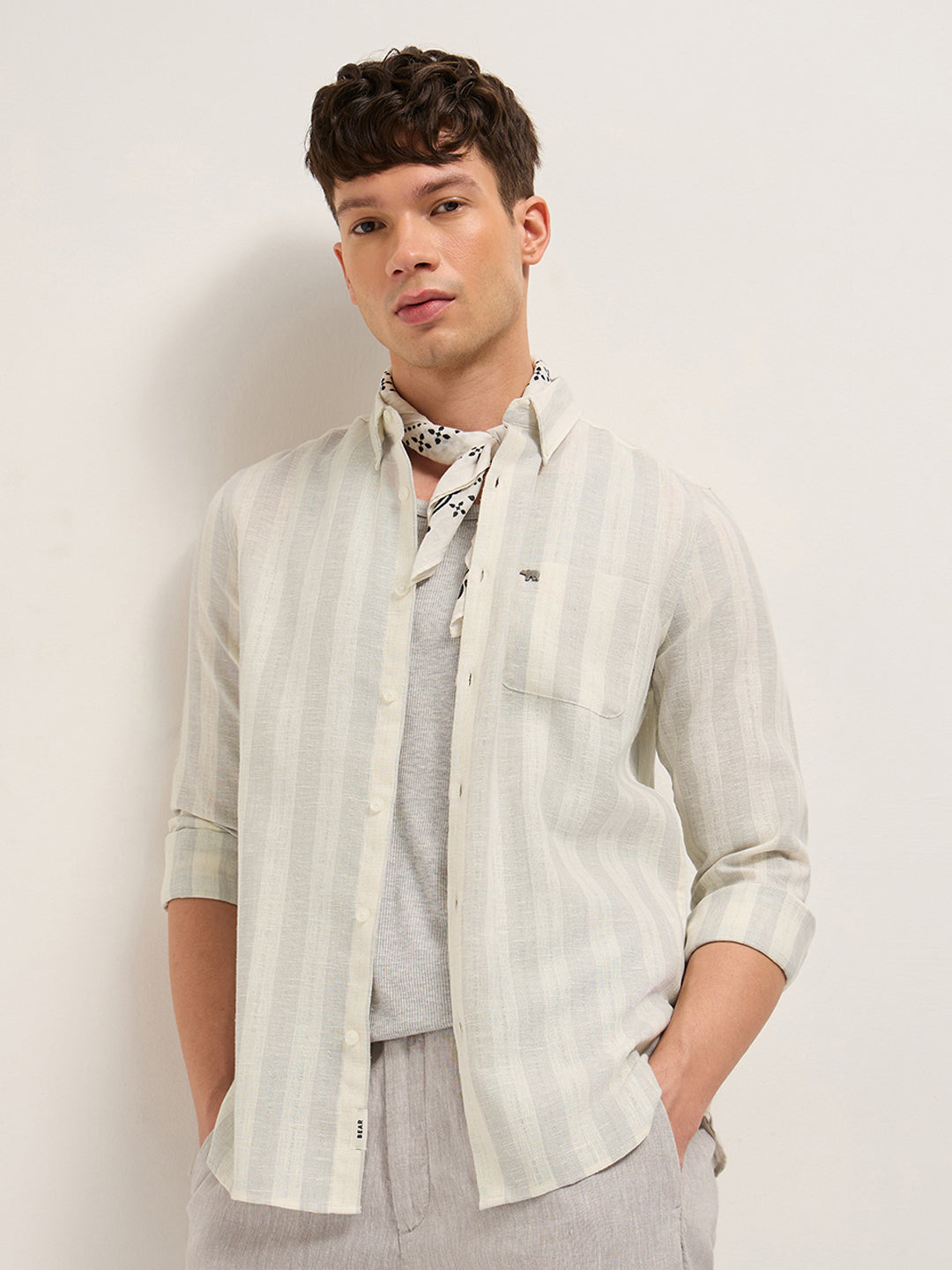 Grey Woven Vertical Stripe Slim Fit Casual Shirt