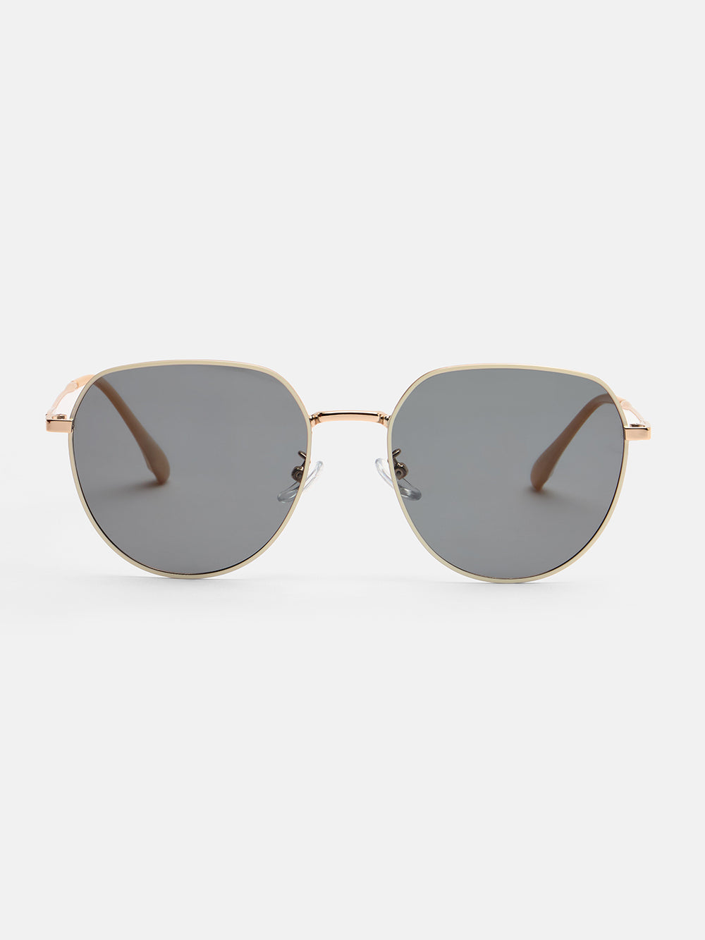 Shop Aviator Sunglasses with Gold Frame and Grey Tint Lenses Online.
