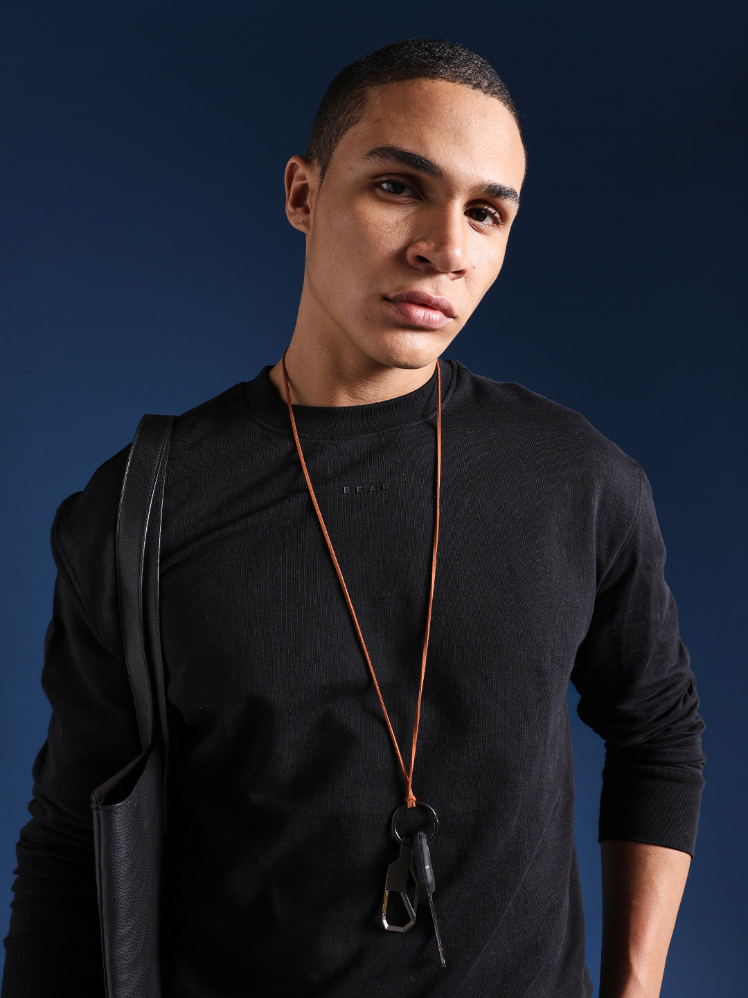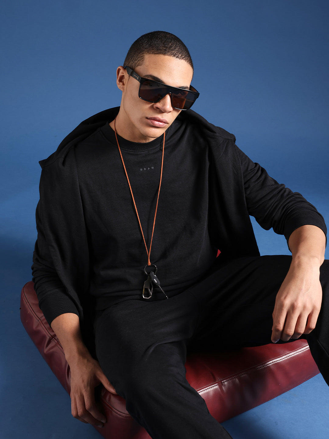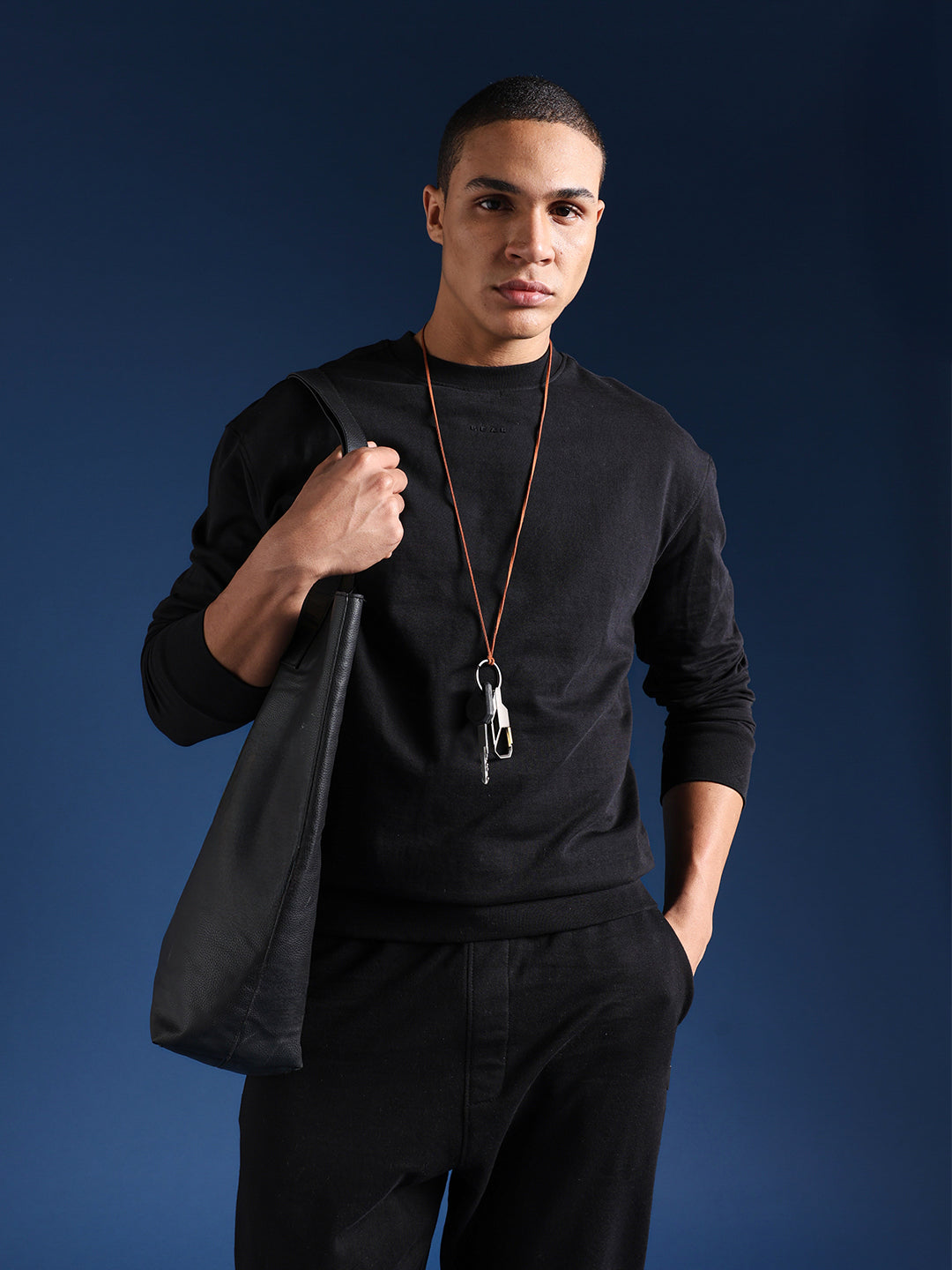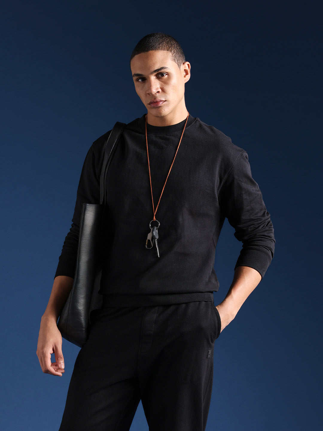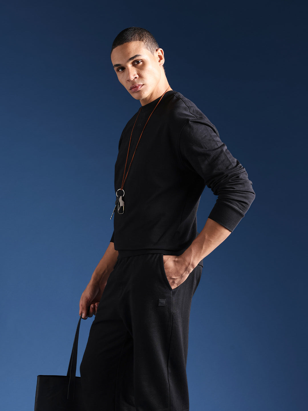 Shop Black Crew Neck Relax Fit Sweatshirt with Minimal Branding Online