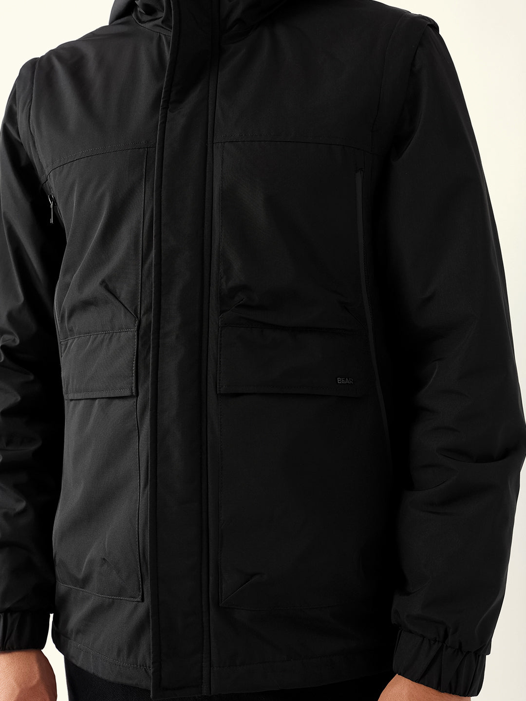 Design: Utility Jacket featuring cut-and-sew panels and Water Repellent