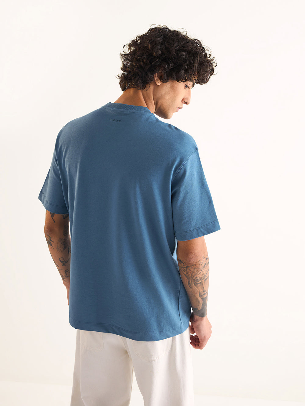 Blue Oversize Patchwork Graphic Print Crew Neck T-shirt