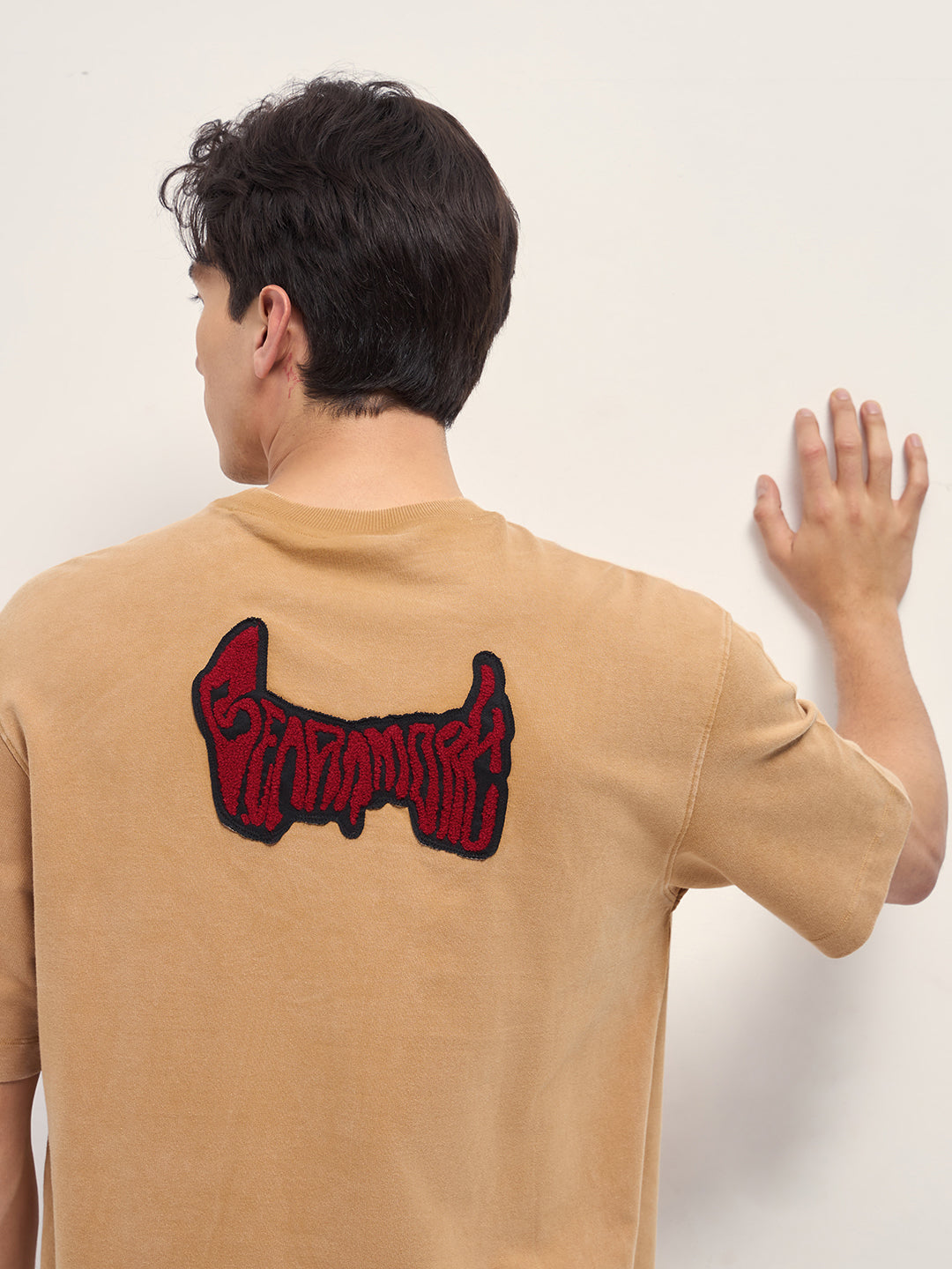 Mustard Oversized Crew Neck T-Shirt with Chenille Embroidered Back Design