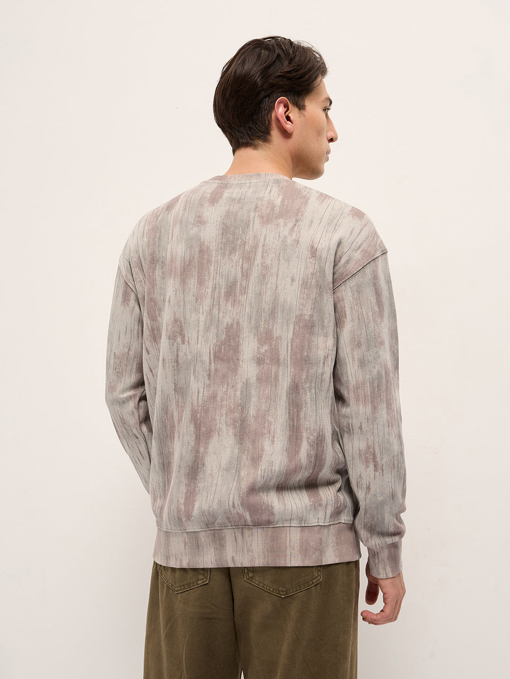 Grey Regular Fit Crew Neck T-Shirt with All-Over Faded Streak Print