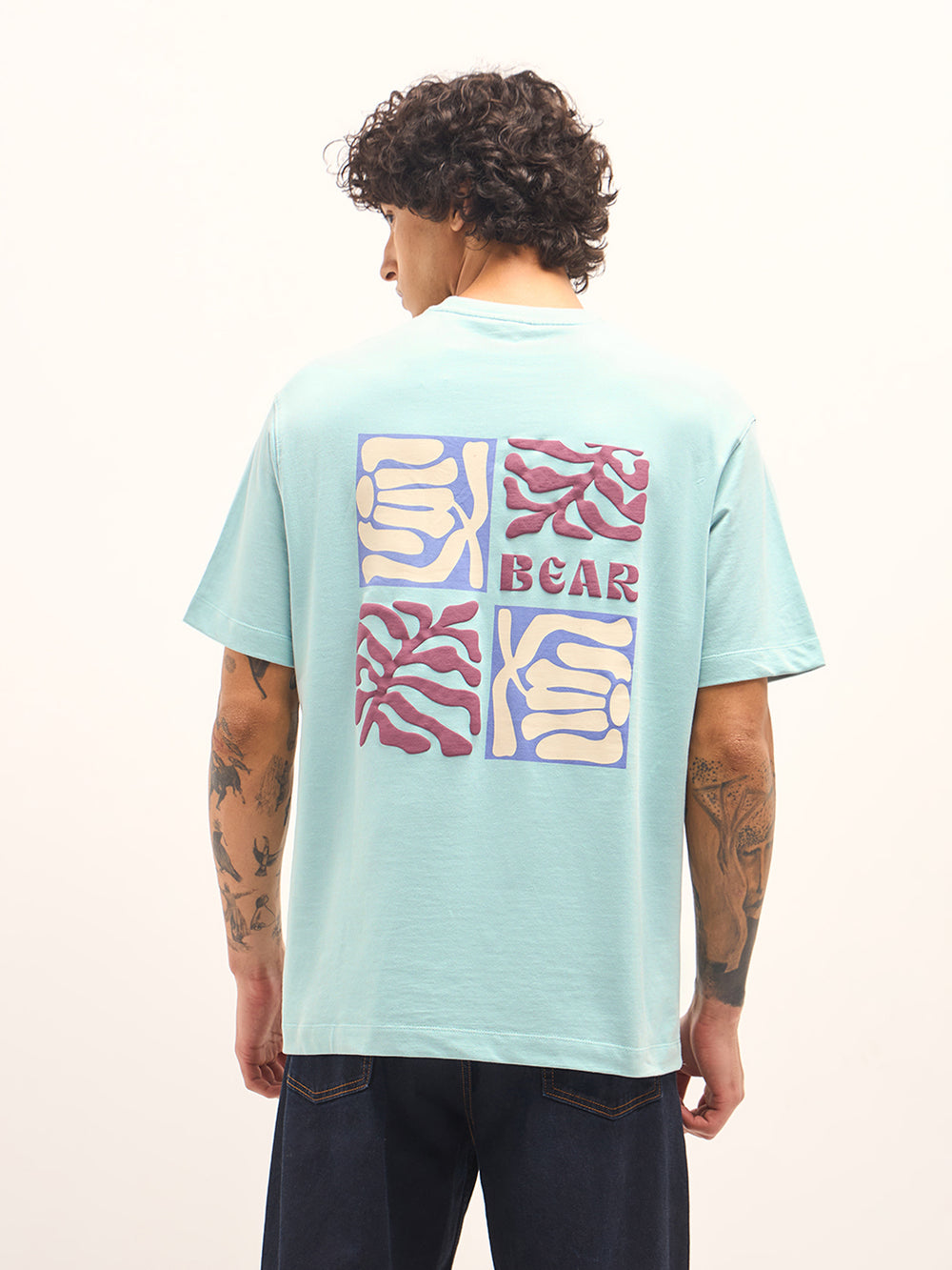 Aqua Blue Oversized Crew Neck T-Shirt with Back Graphic Print