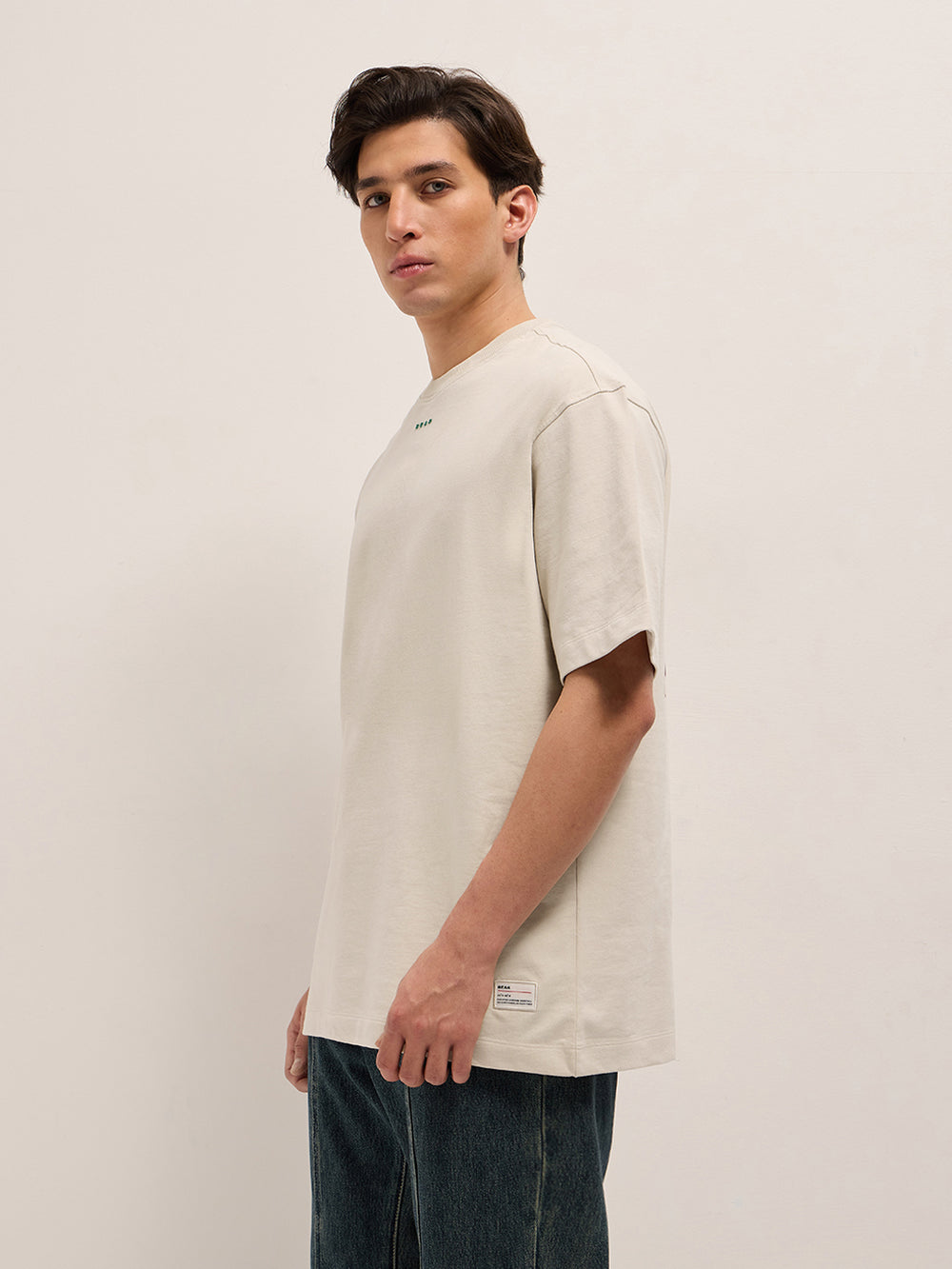 Beige Graphic Back Print Oversized Crew Neck T-Shirt