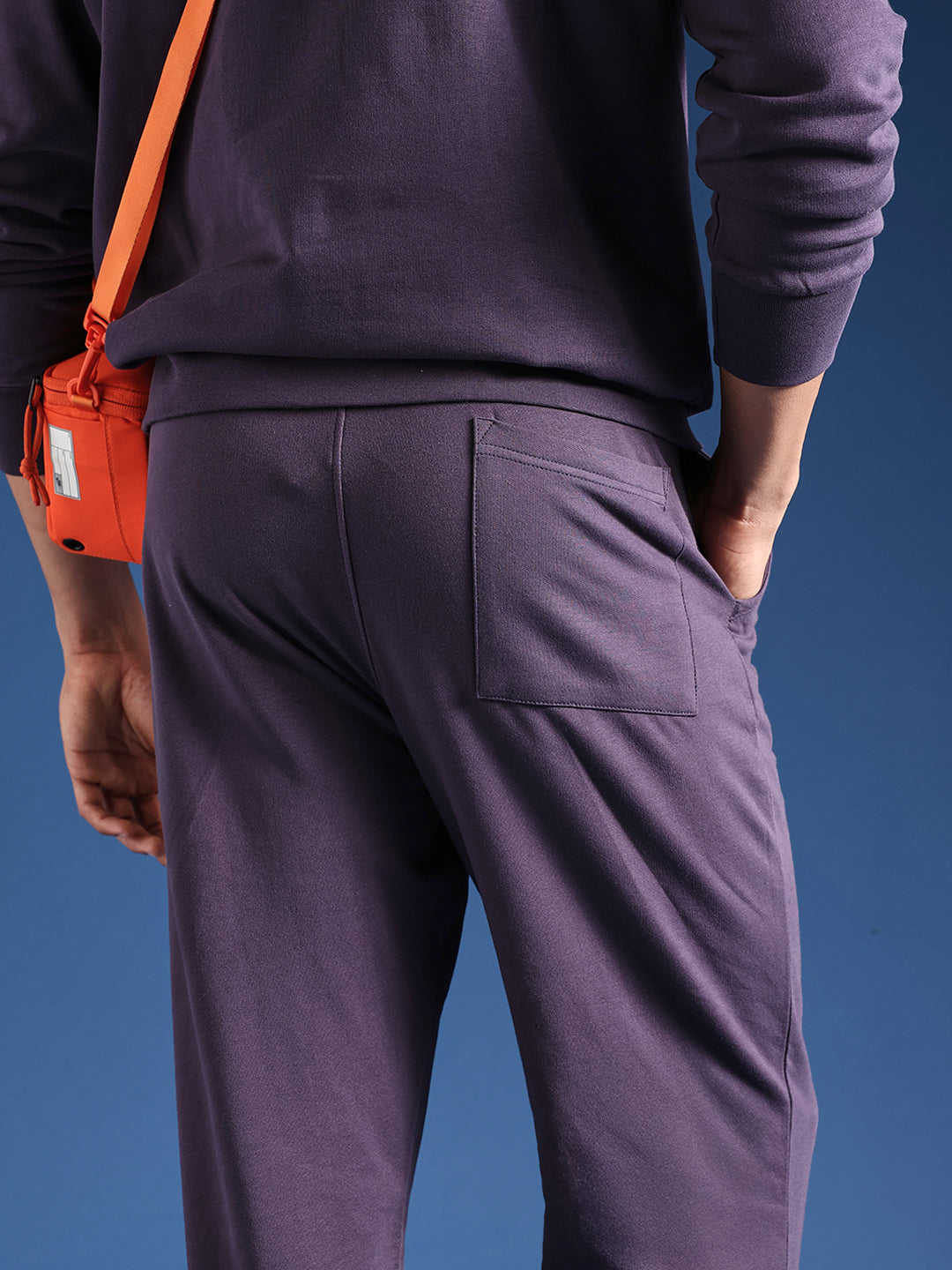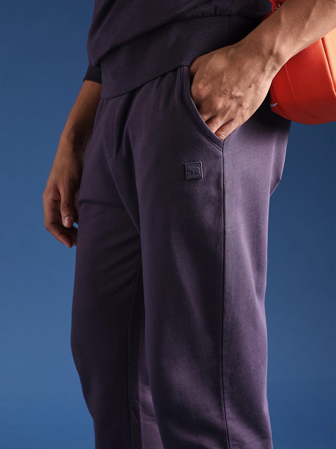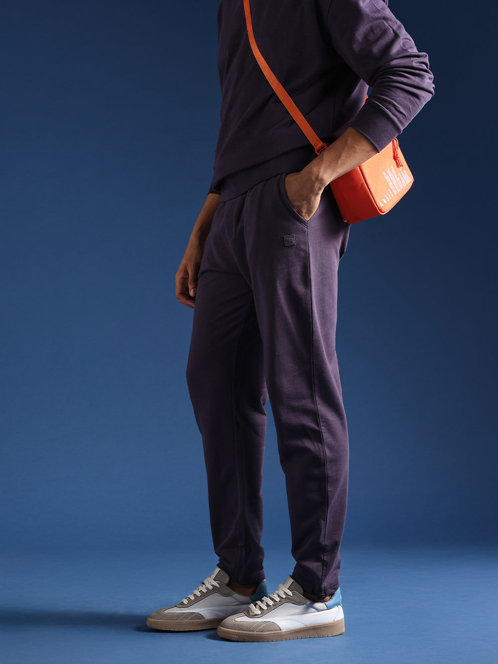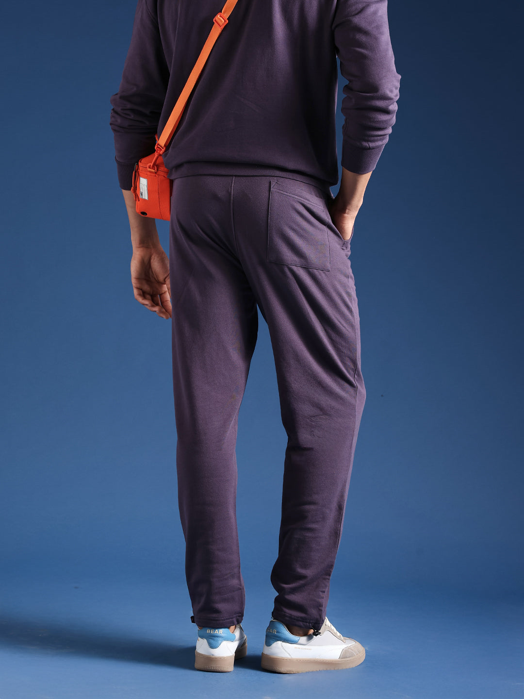 Purple Relaxed Fit Solid Track Pants with Toggle Adjustable Hem