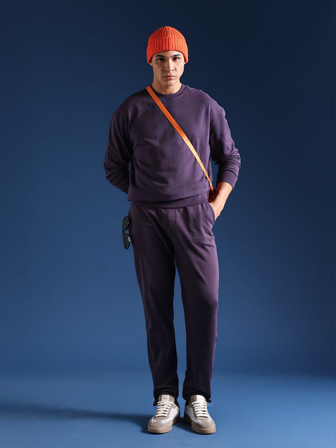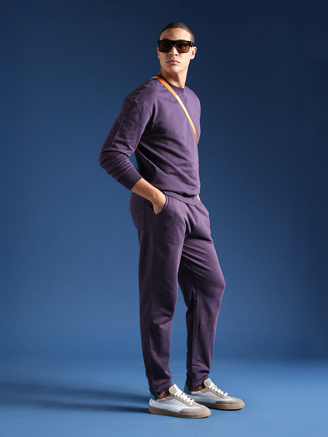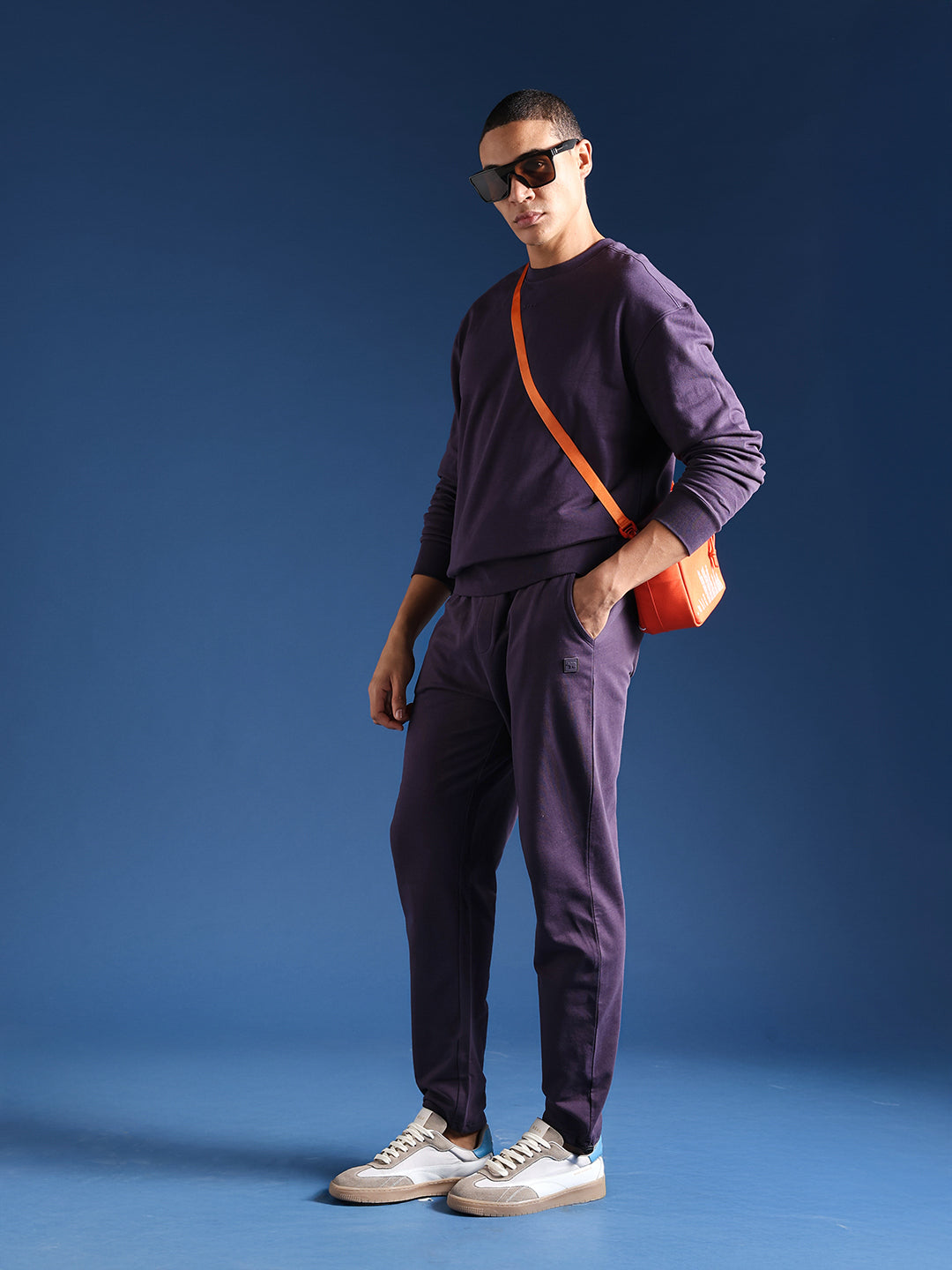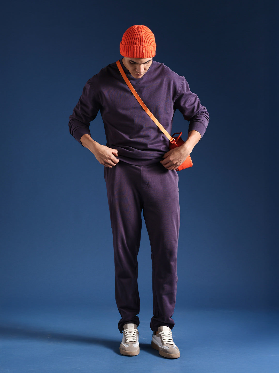 Purple Relaxed Fit Solid Track Pants with Toggle Adjustable Hem
