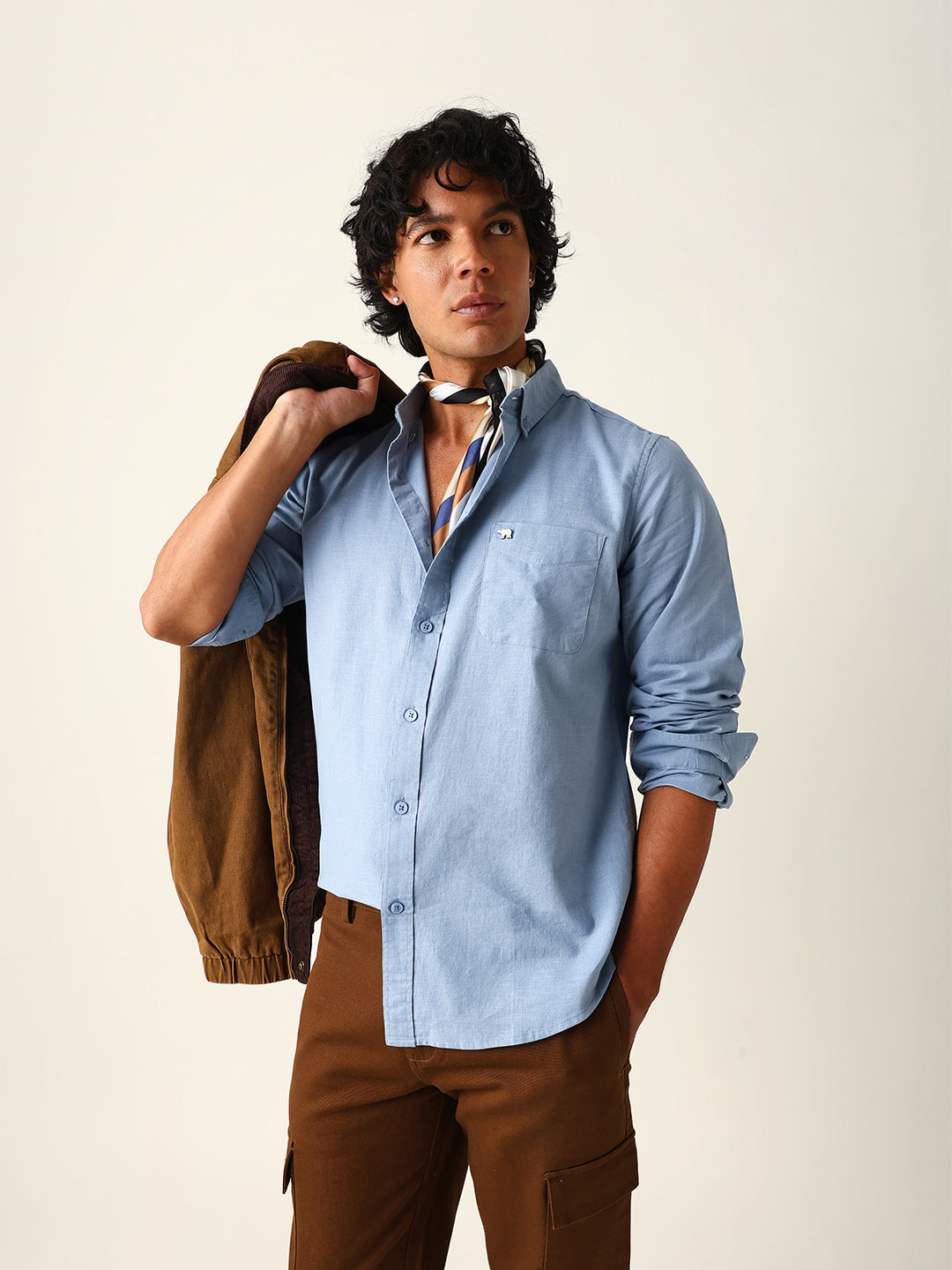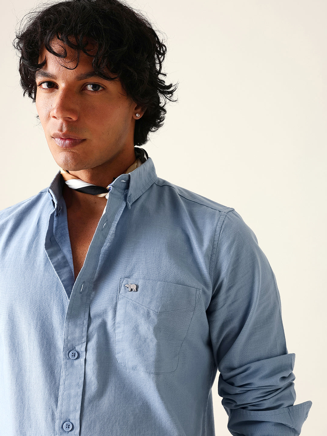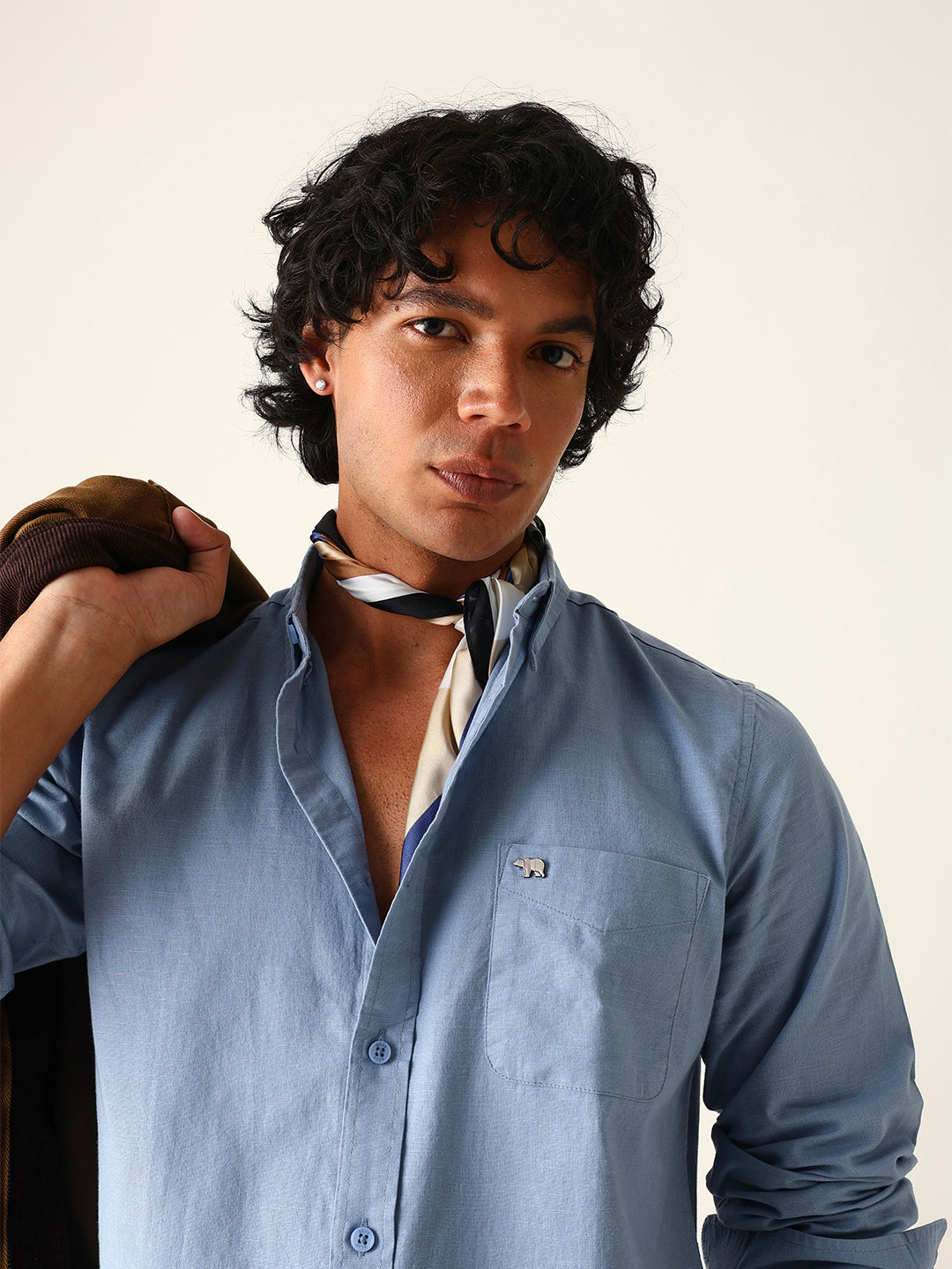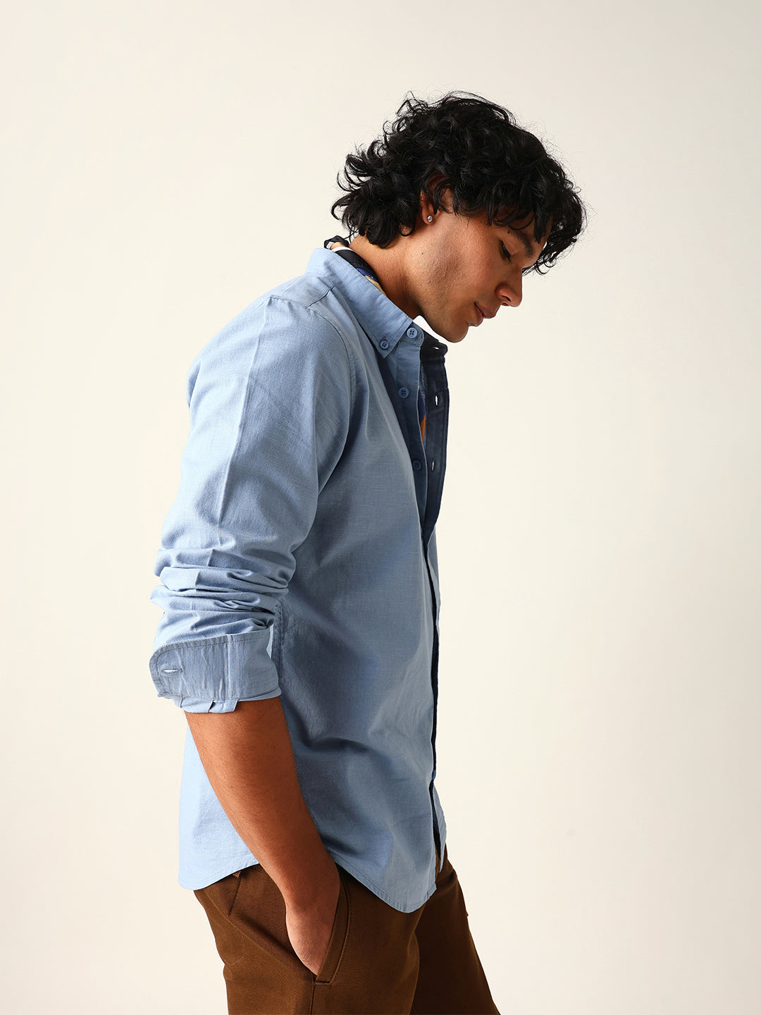 Shop Blue Solid Regular Fit Casual Shirt Online.