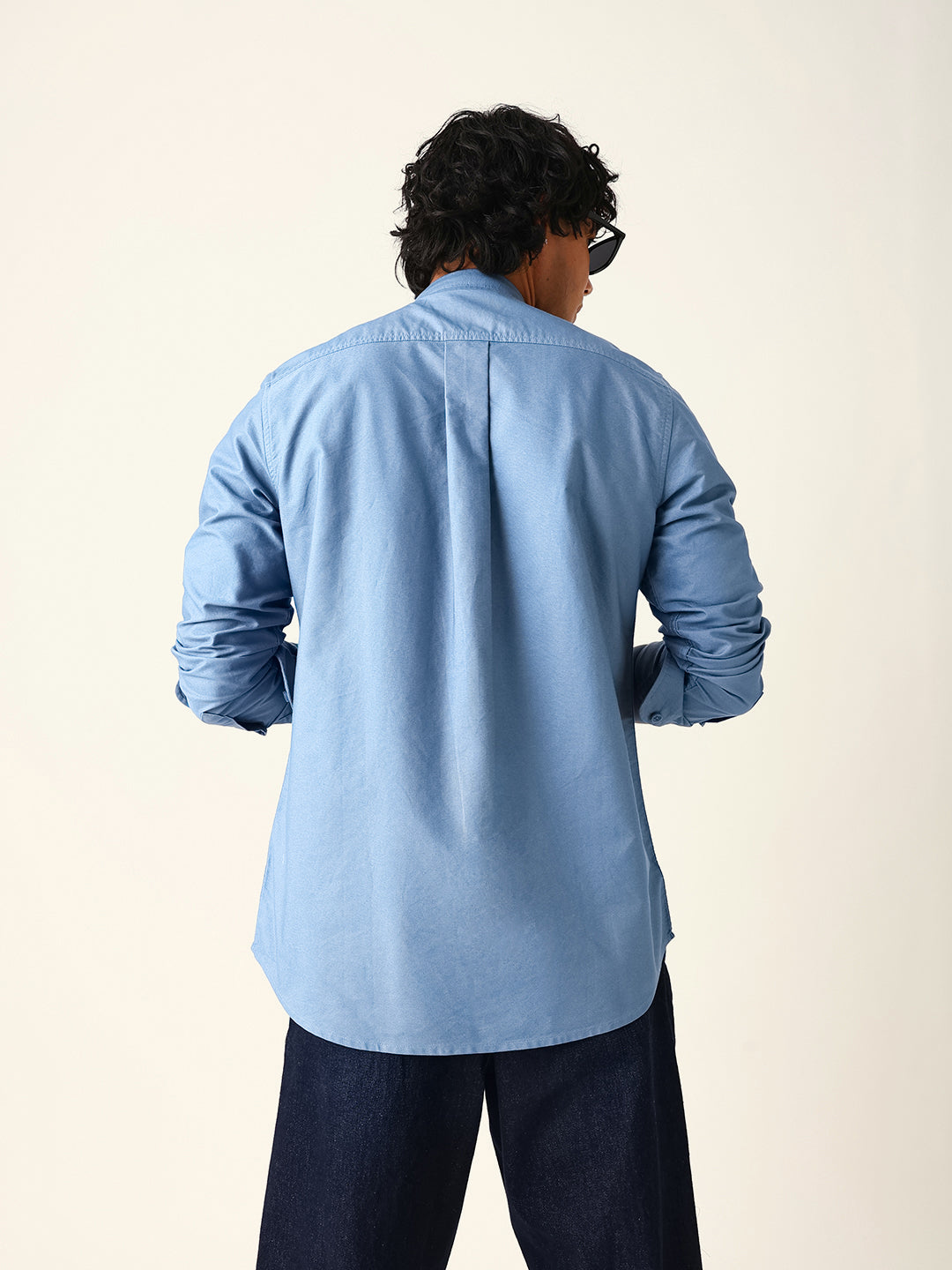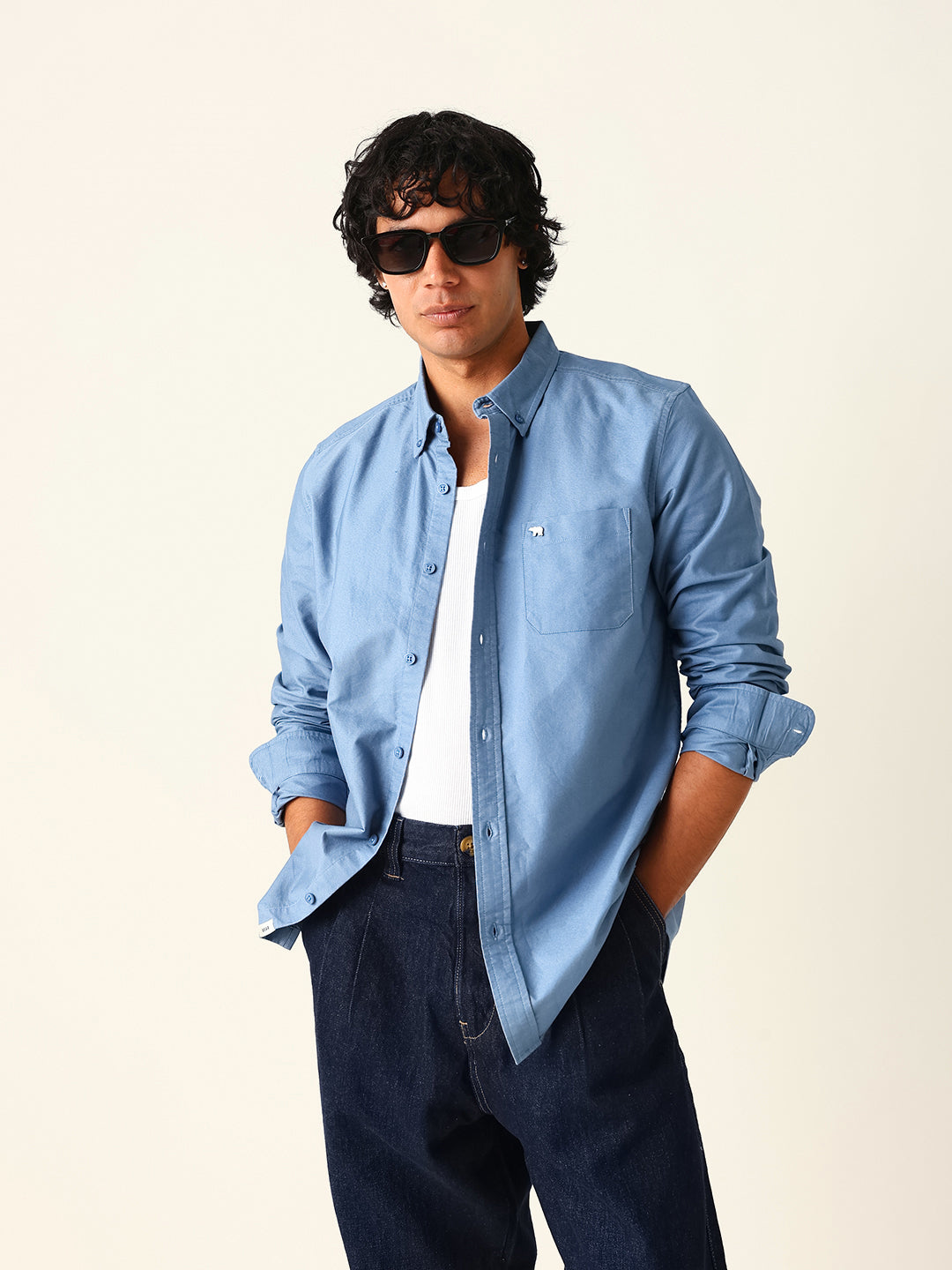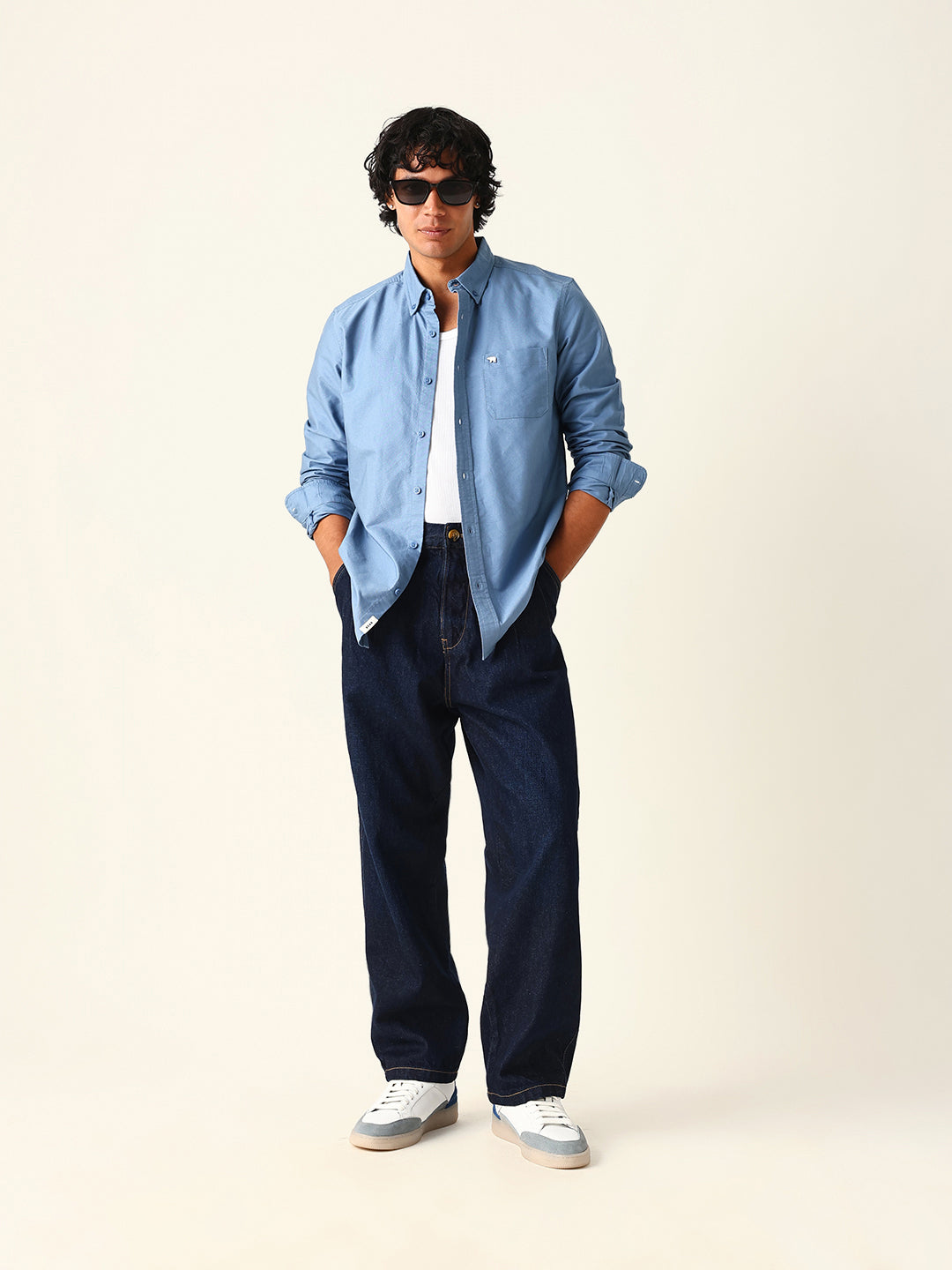 Blue Solid Slim-Fit Casual Shirt with Button-Down Collar