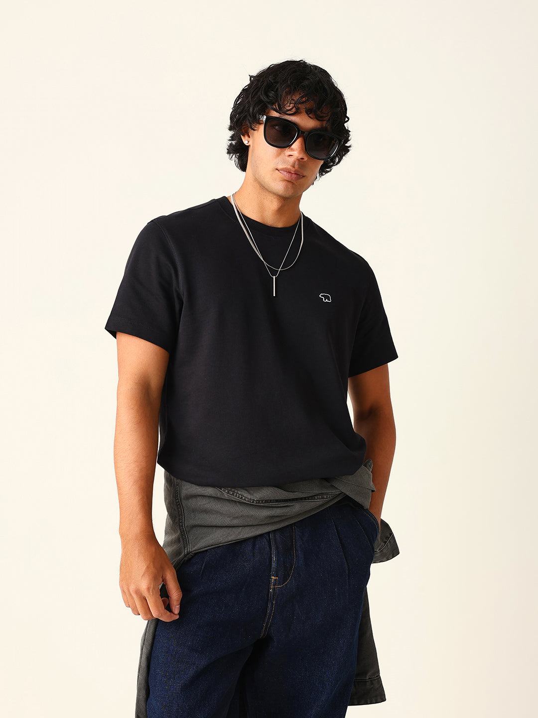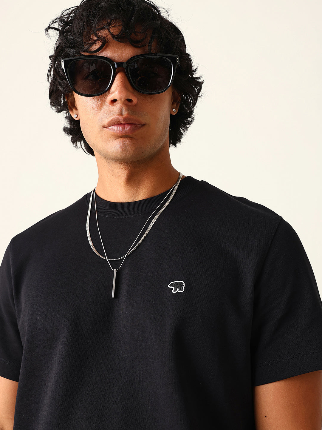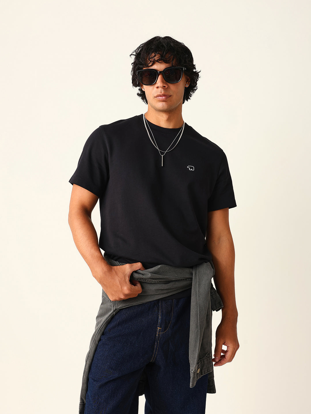 Shop Black Crew Neck T-Shirt with Bear Logo Embroidery Online
