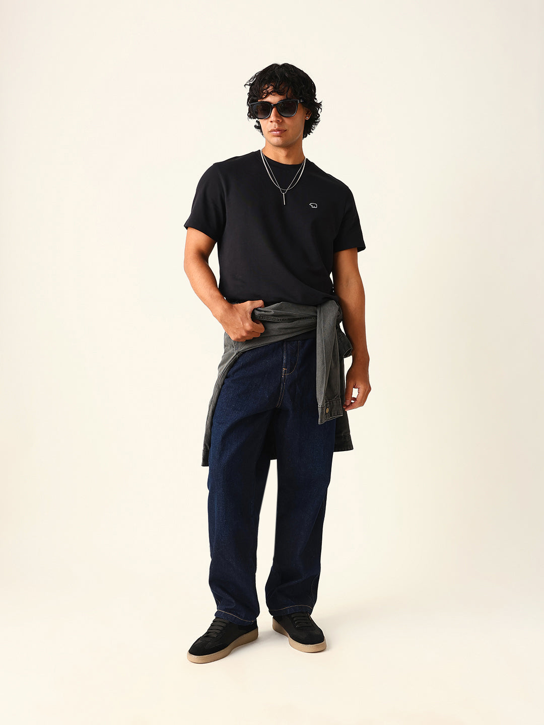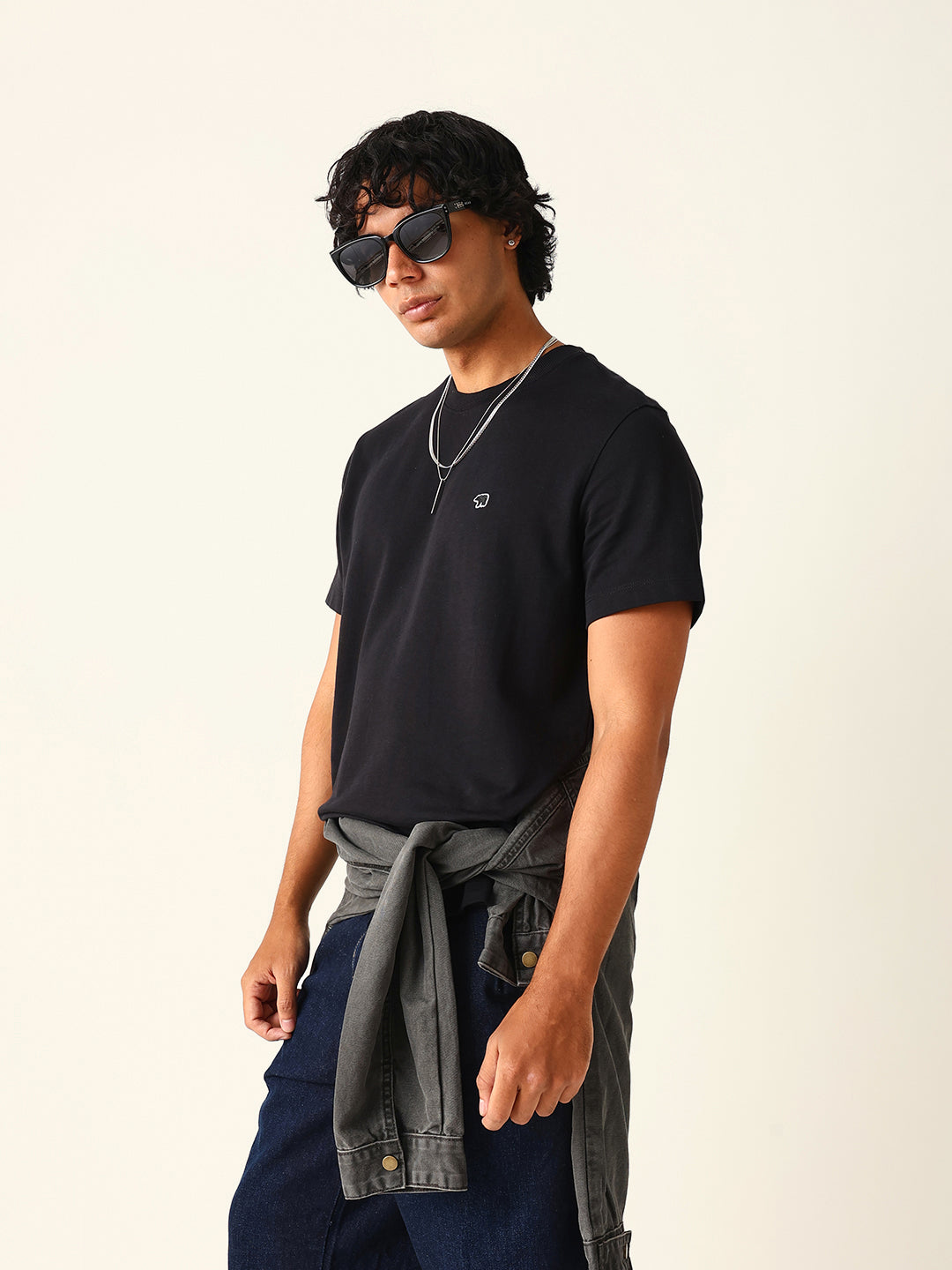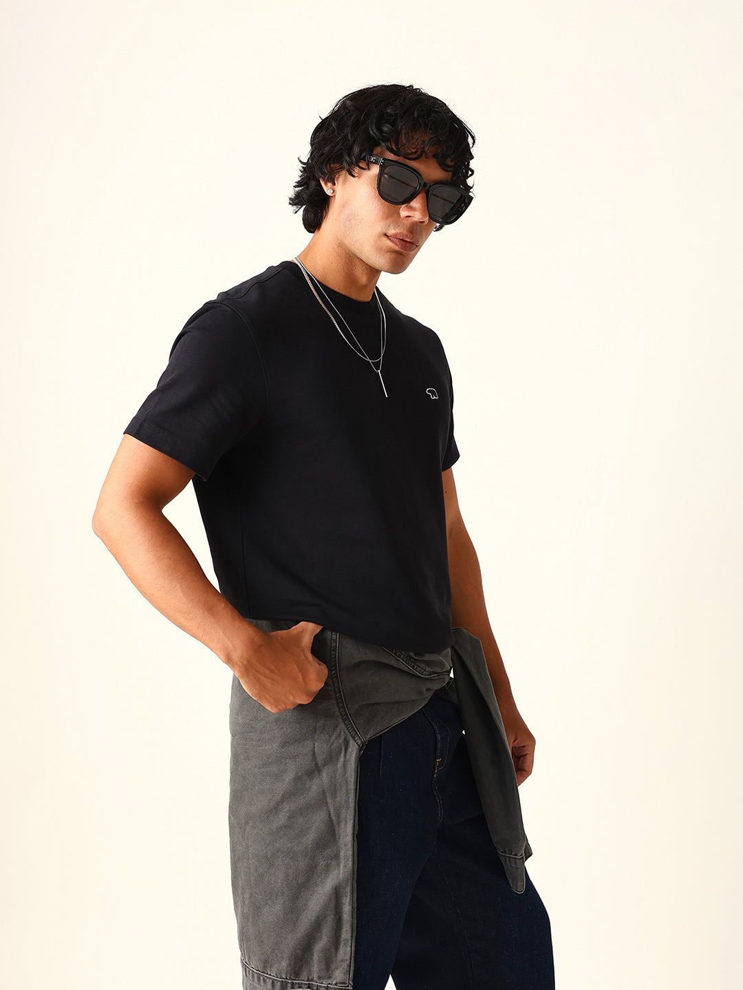 Shop Black Crew Neck T-Shirt with Bear Logo Embroidery Online