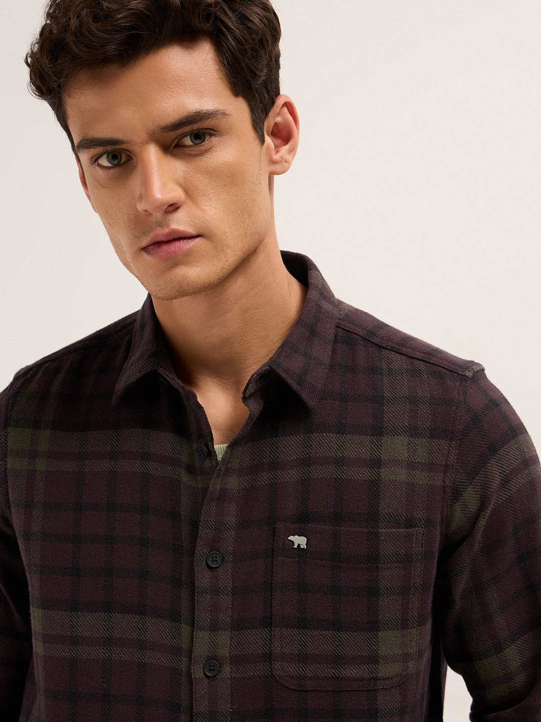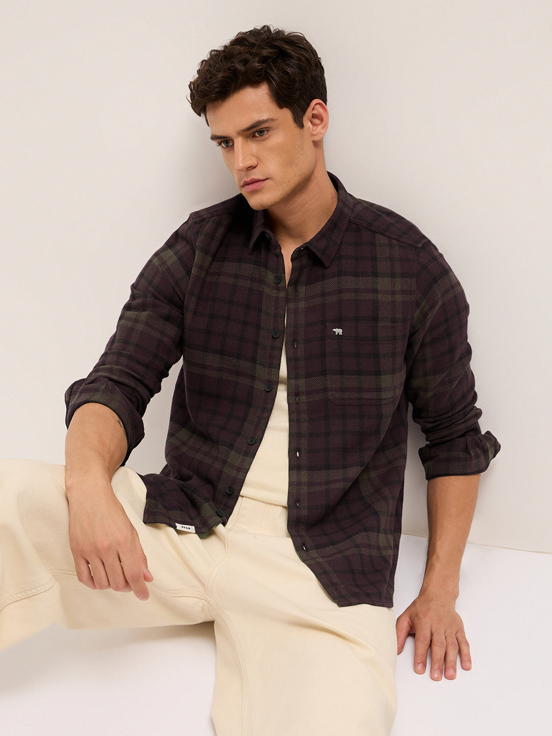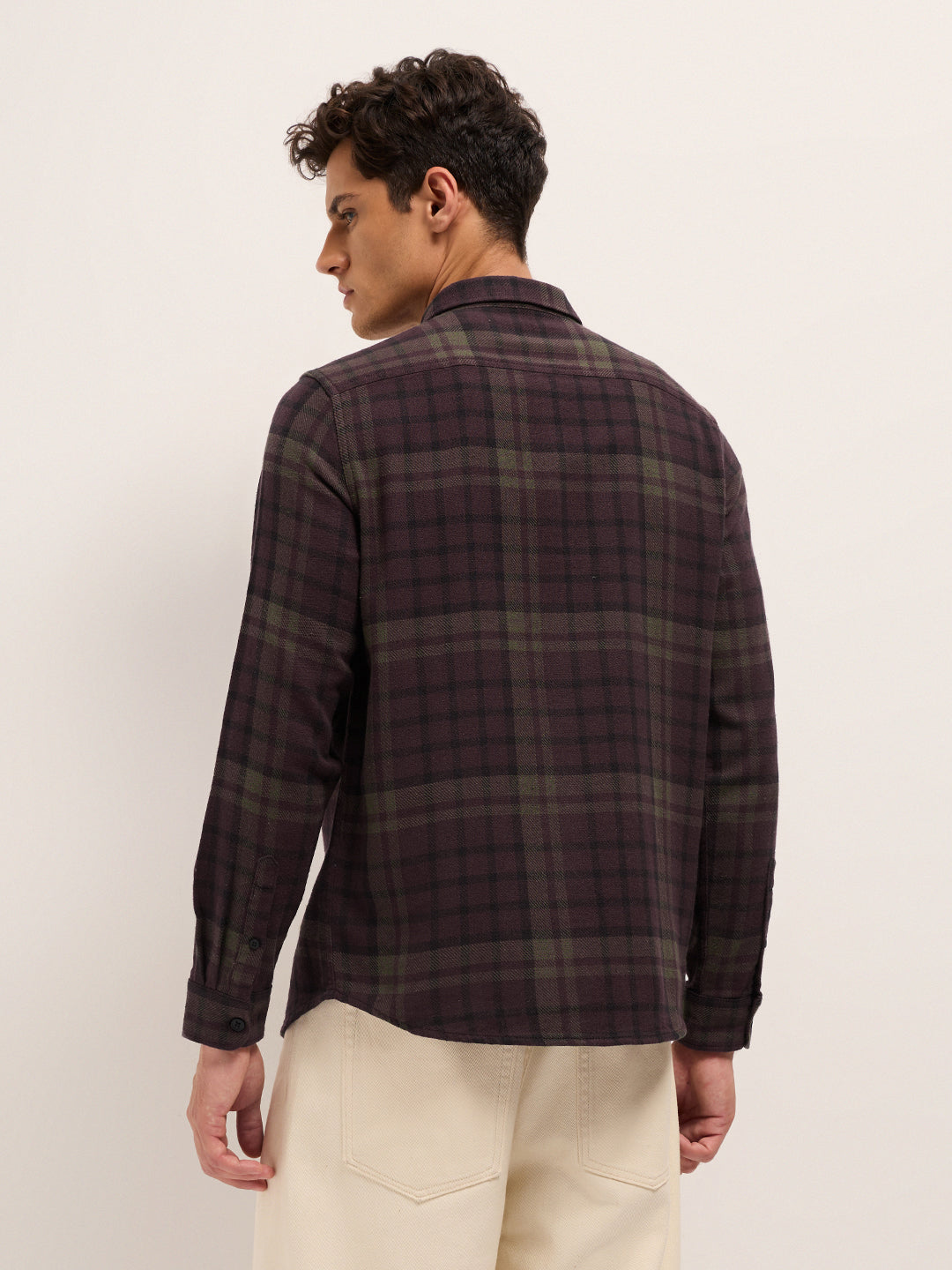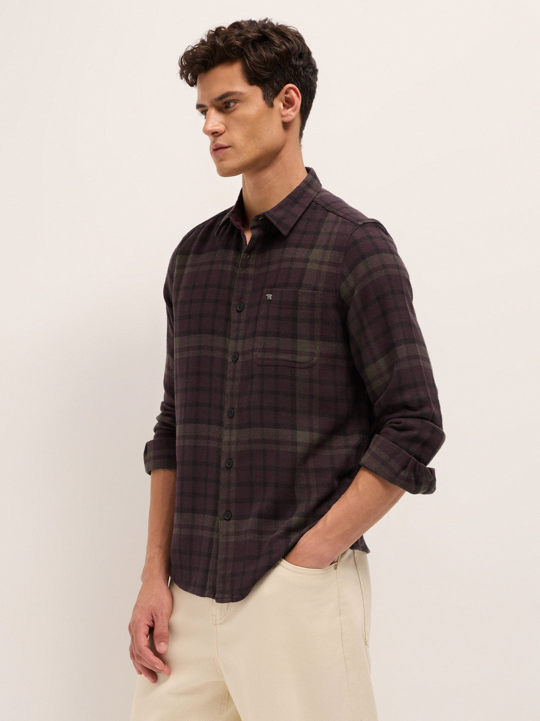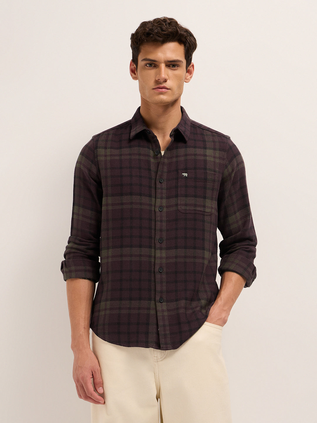 Maroon Woven Check Regular Fit Casual Shirt