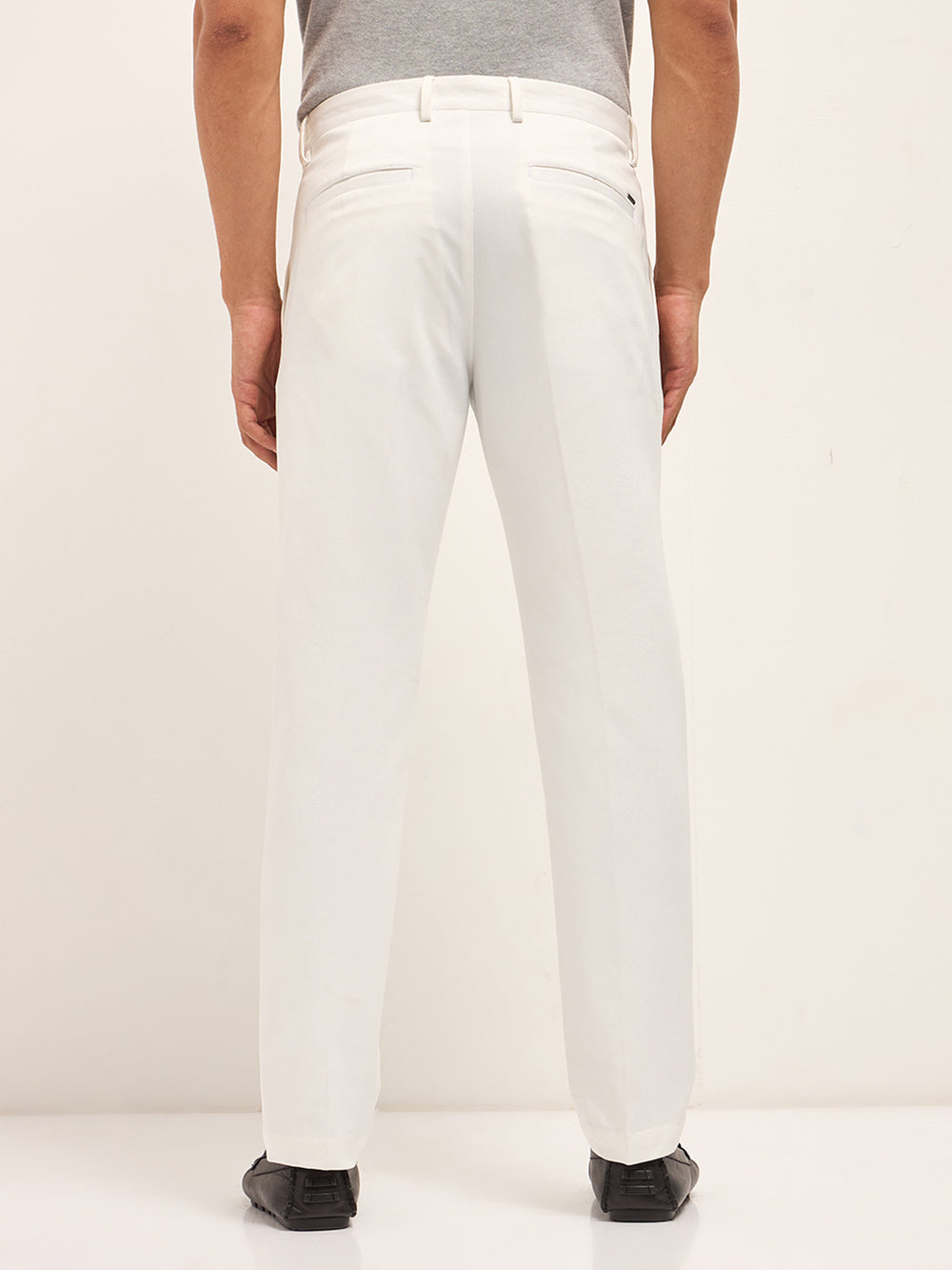 White Woven Design Regular Fit Formal Trousers with Front Pleat