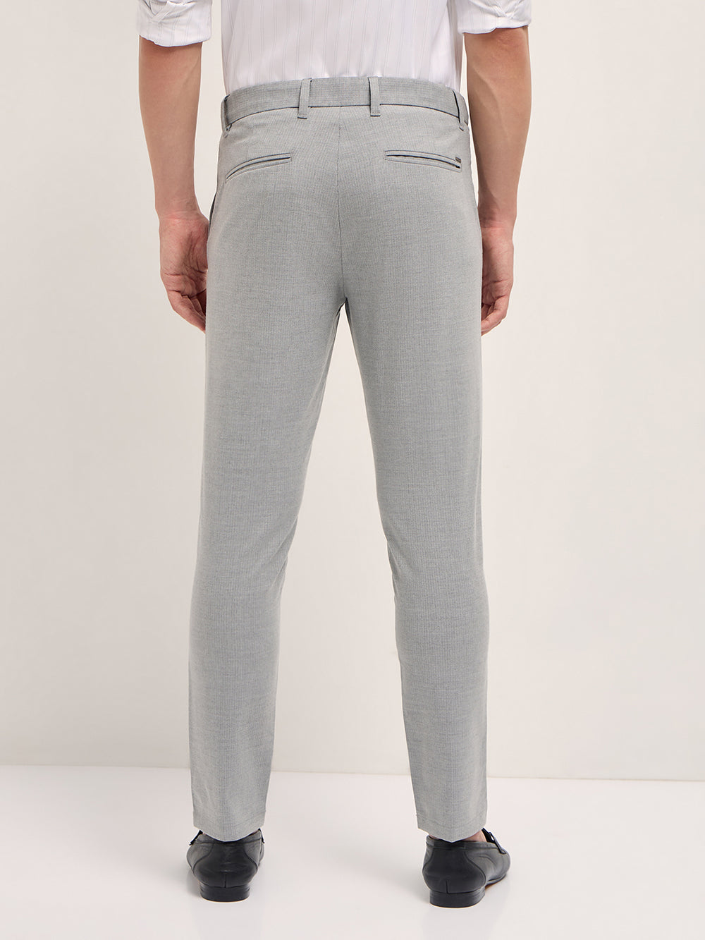 Light Grey Woven Pinstripe Slim Fit Formal Trousers