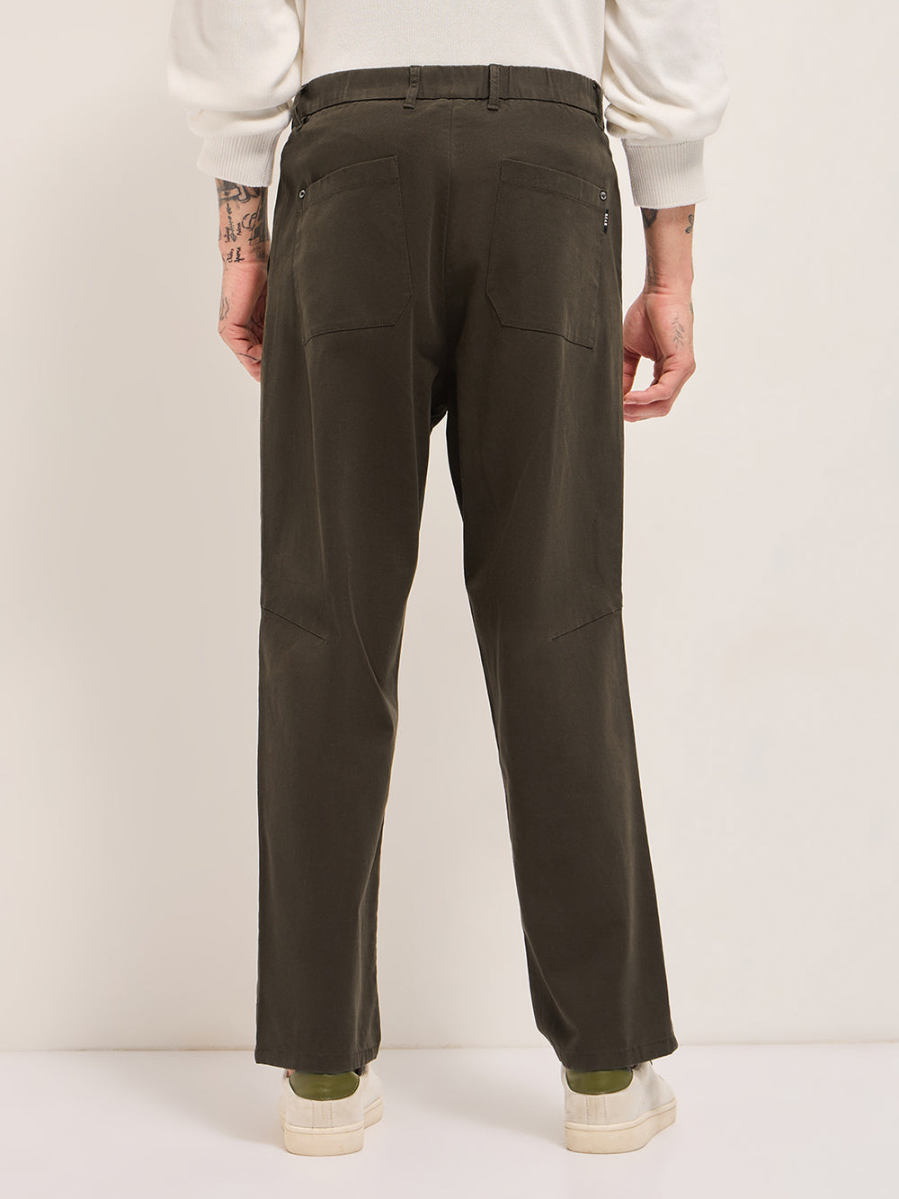 Olive Solid Baggy Fit Casual Trouser with Centre line Detail