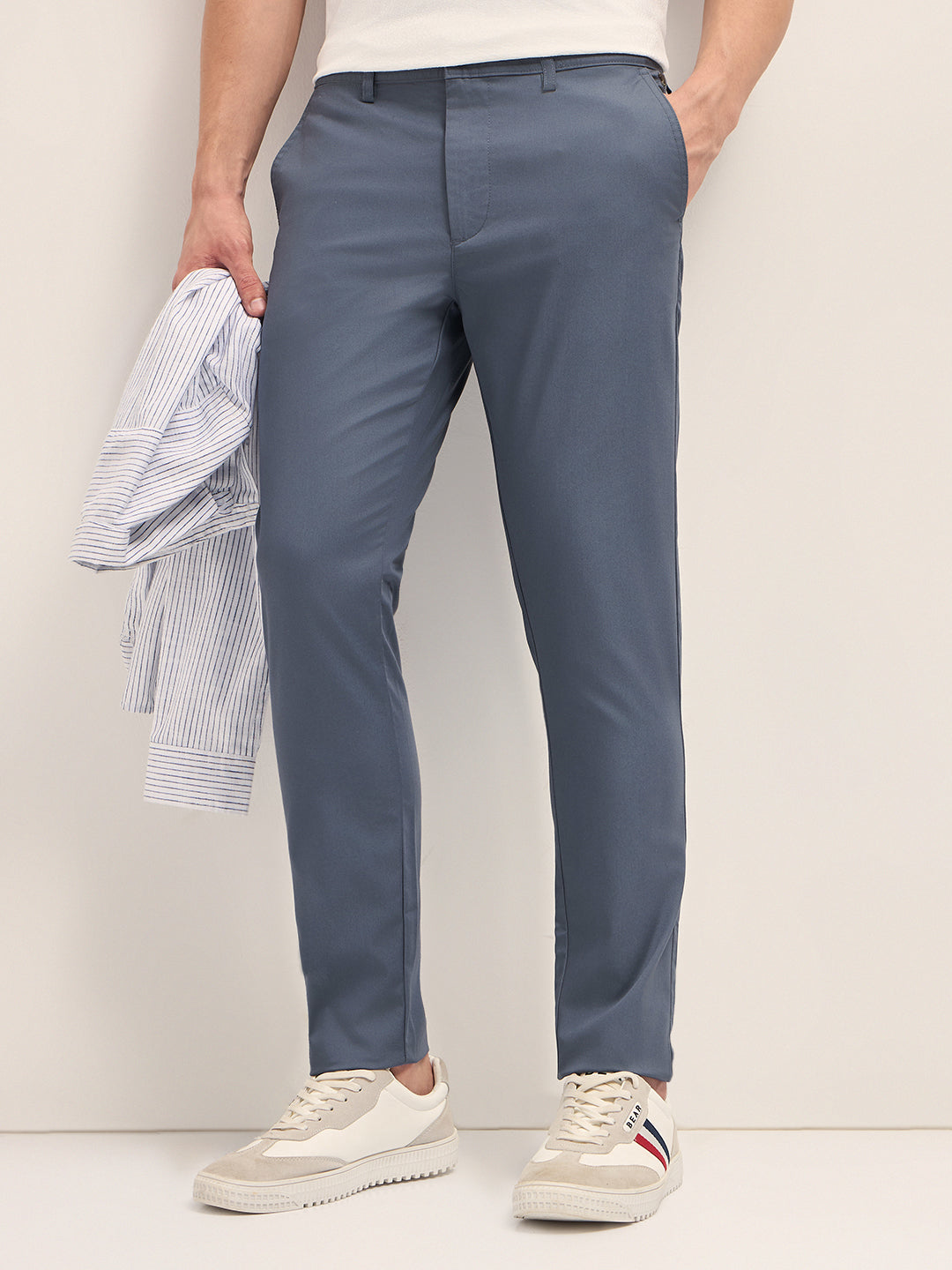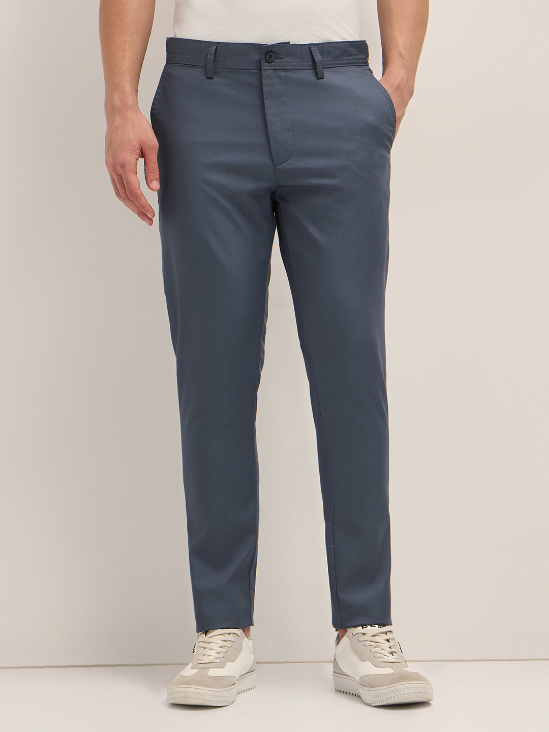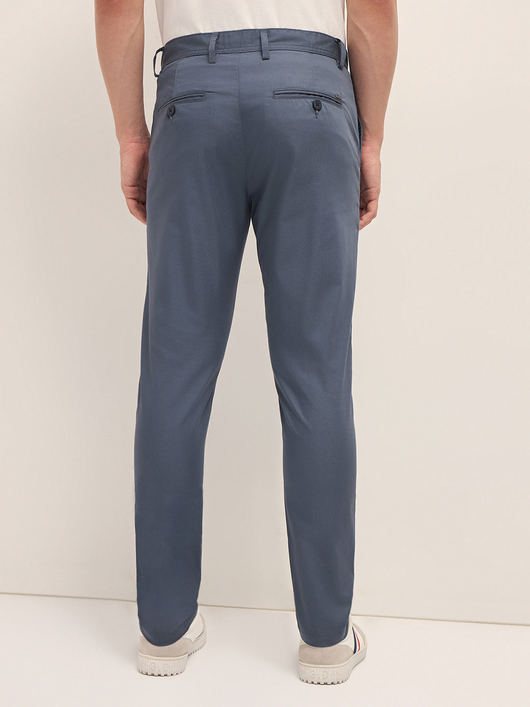 Blue Solid Slim Fit Chino Trousers