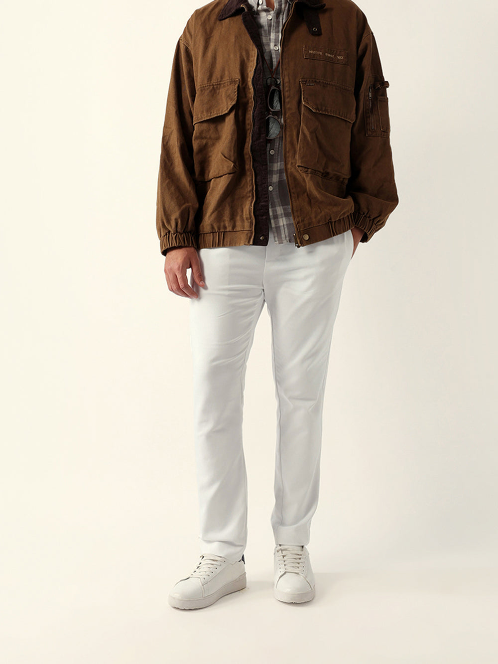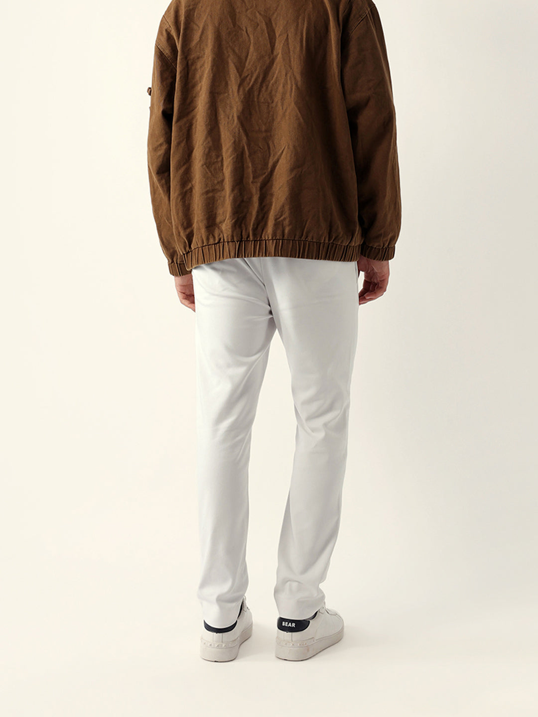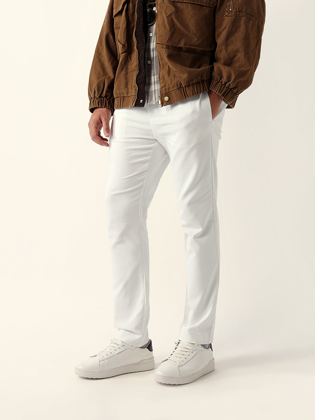 White Slim-Fit Formal Trousers with Elasticated Drawstring Waistband