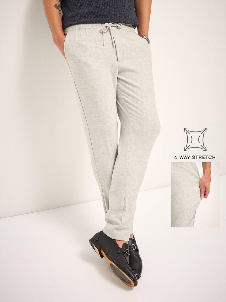 Grey Solid 4 Way Stretch Formal Trouser