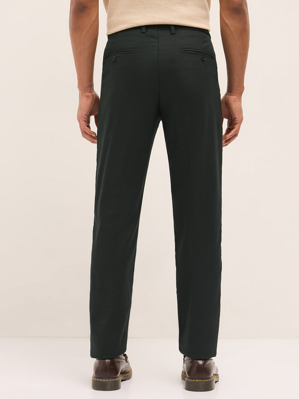 Dark Green Textured Weave Regular Fit Formal Trousers