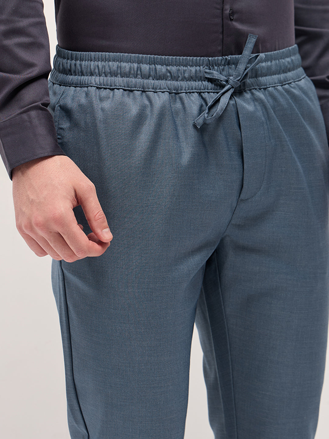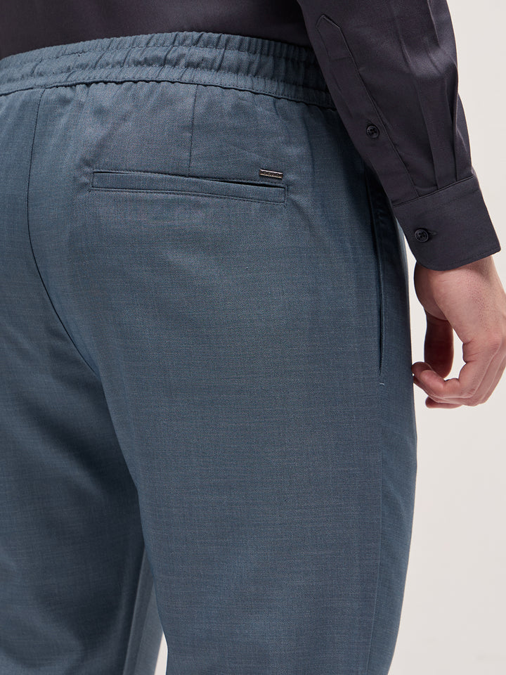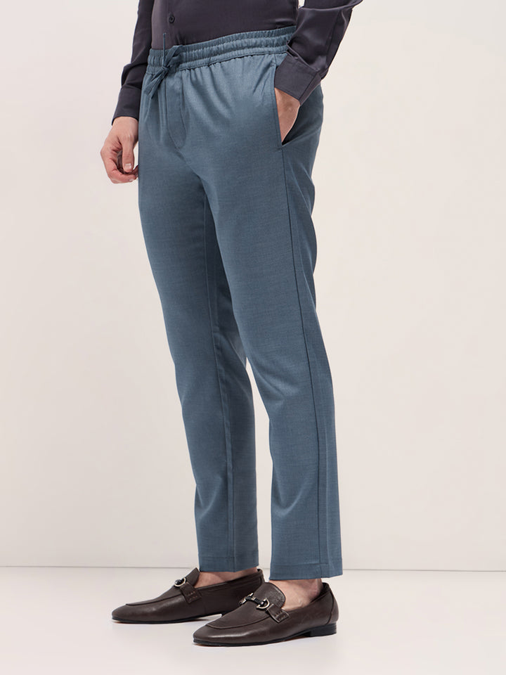 Steel Blue Slim Fit Formal Trouser with Elastic Waistband