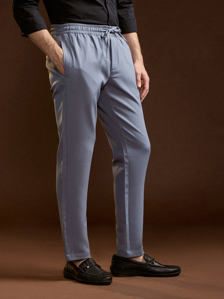 Light Blue Slim Fit Formal Trouser with Elastic Waistband