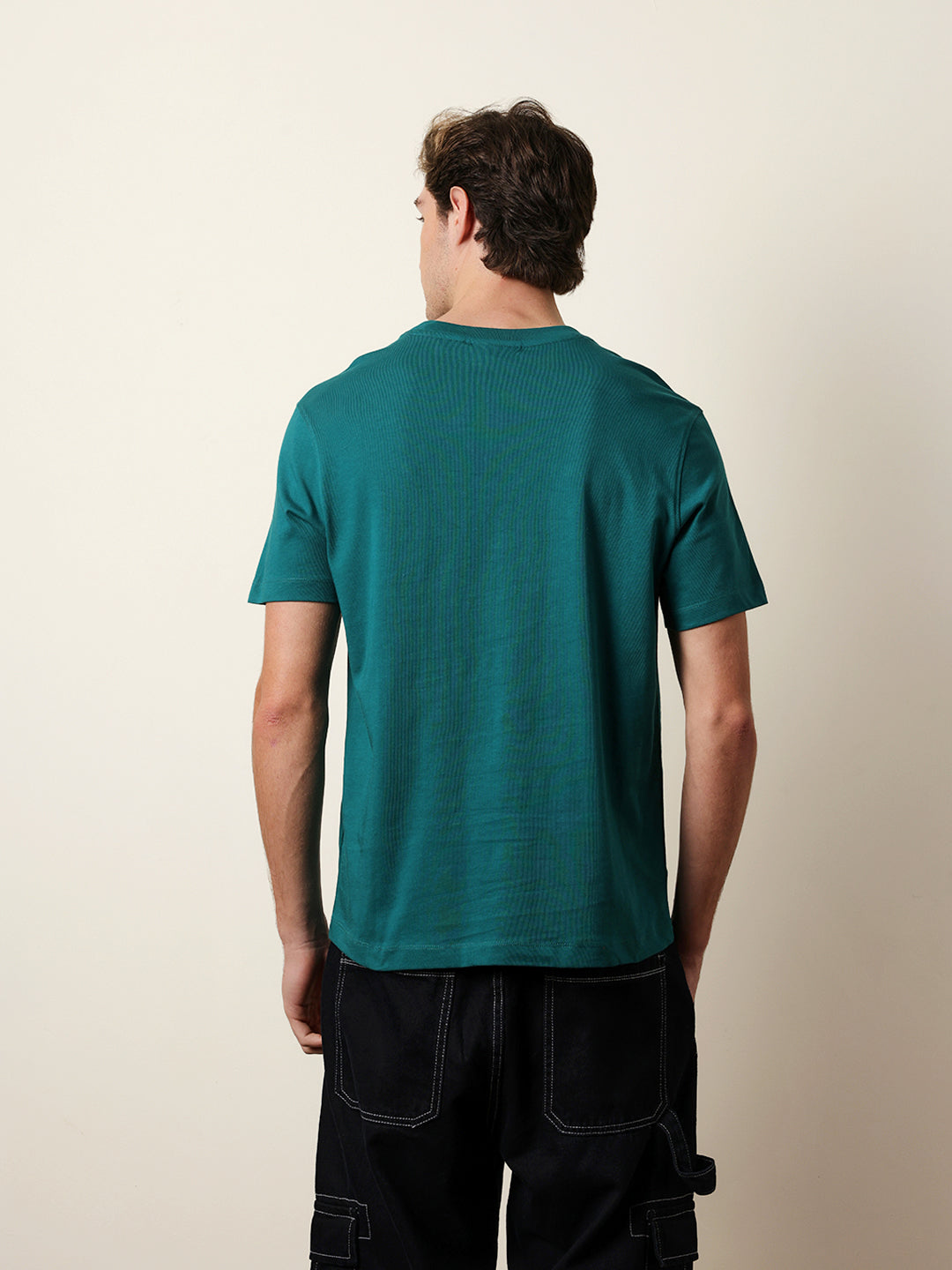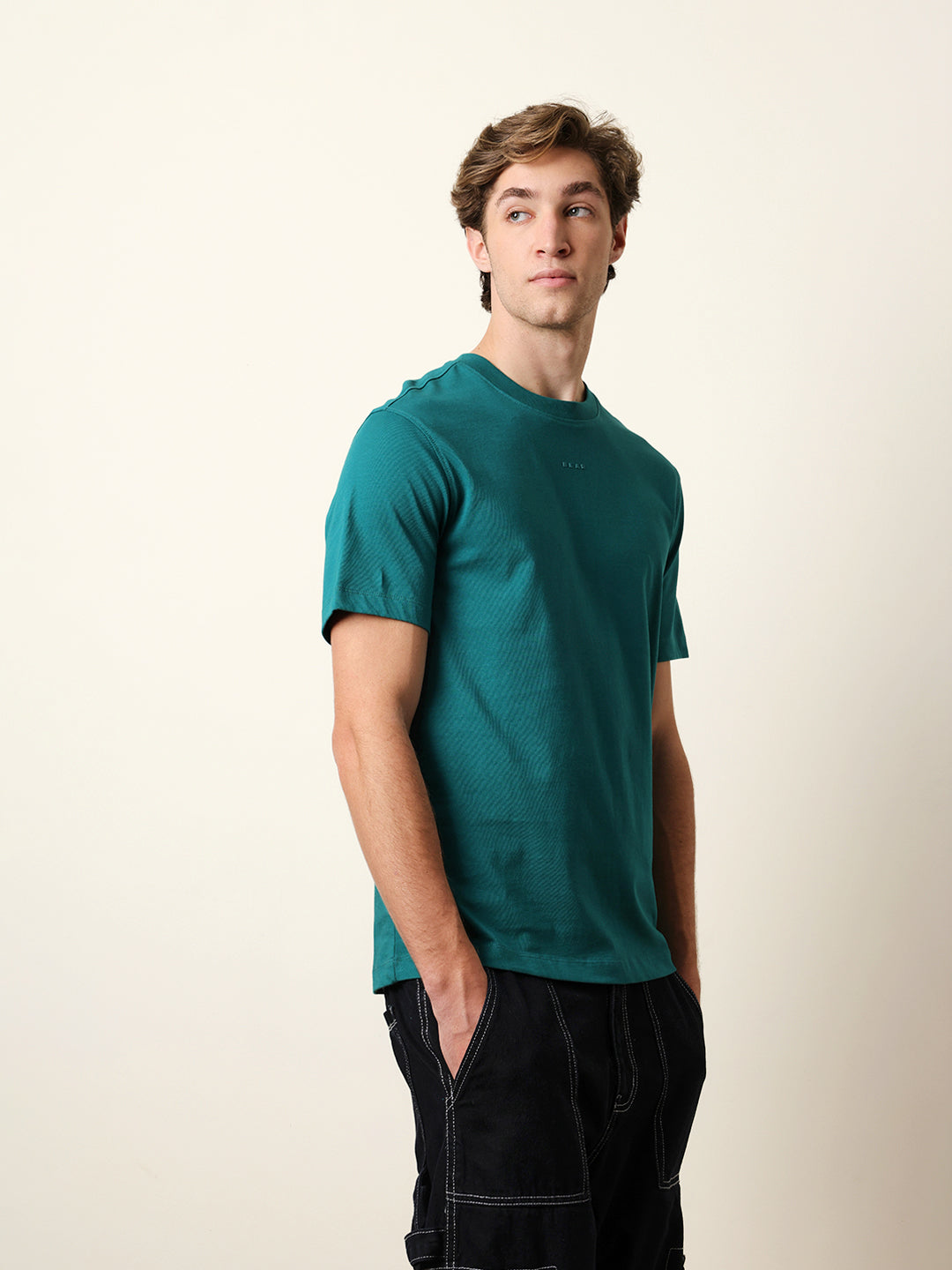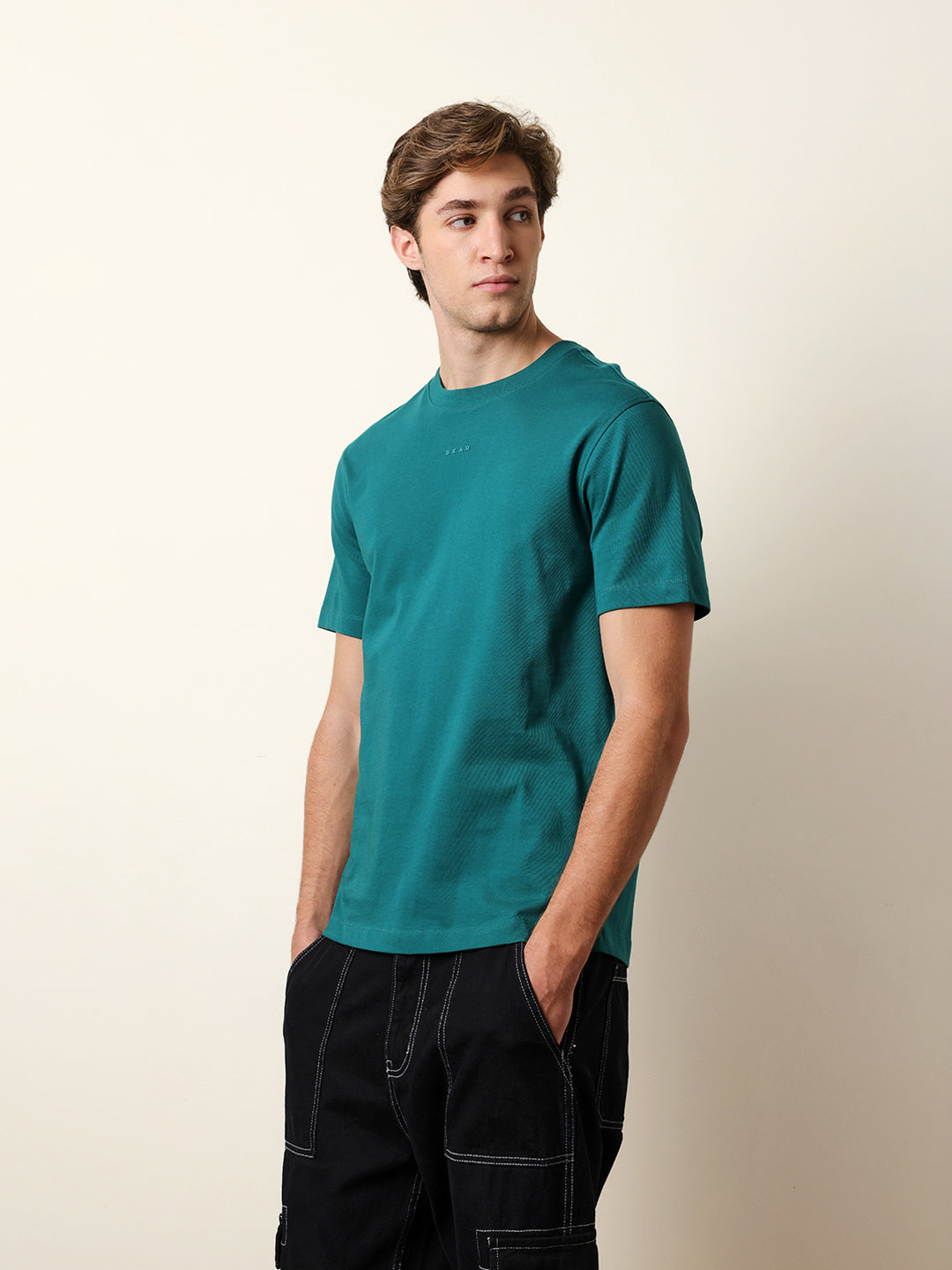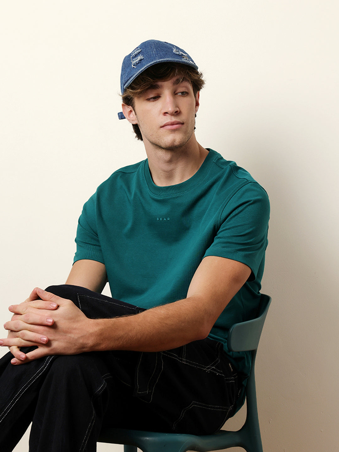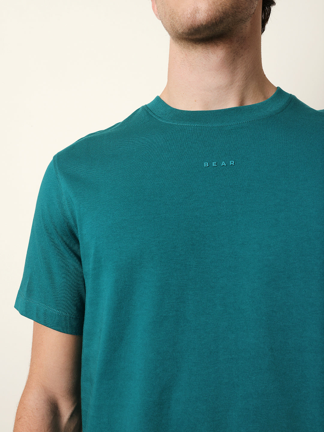 Teal Solid Crew Neck T-Shirt with “BEAR” Logo
