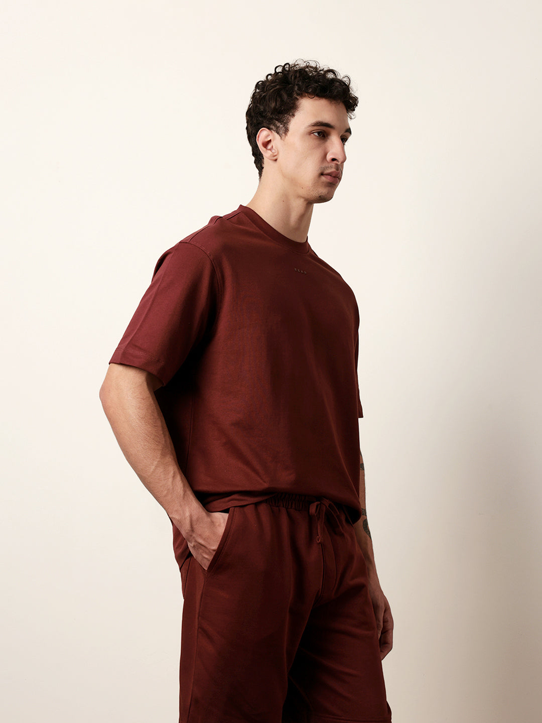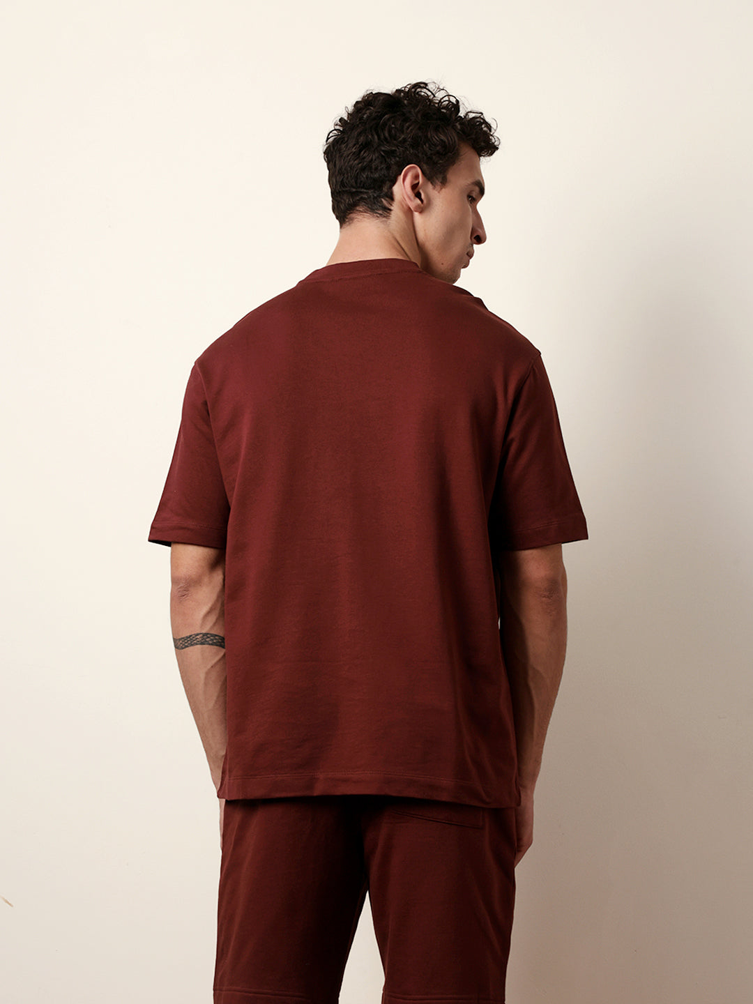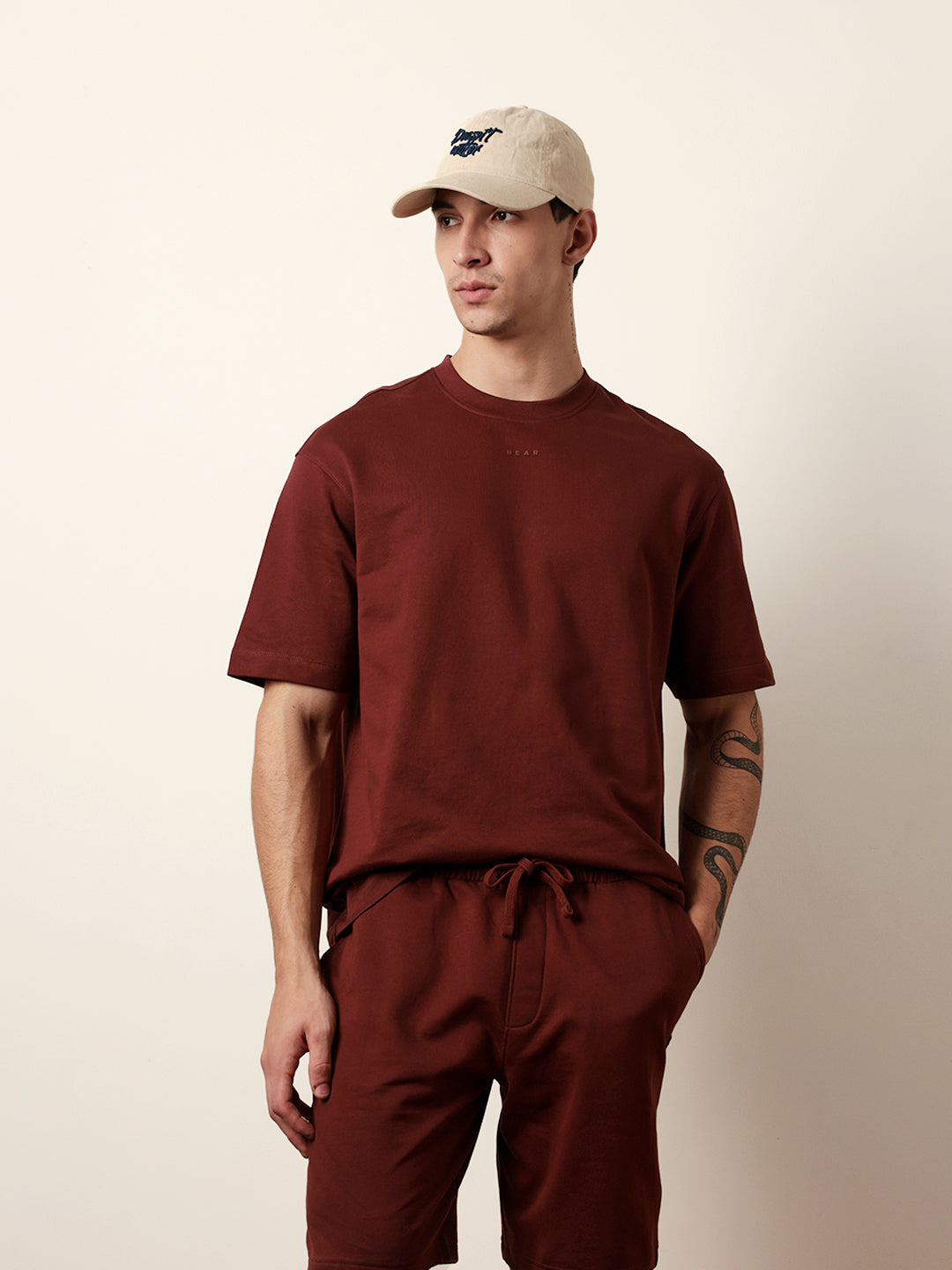 Maroon Oversized Crew Neck Sporty Casual T-Shirt