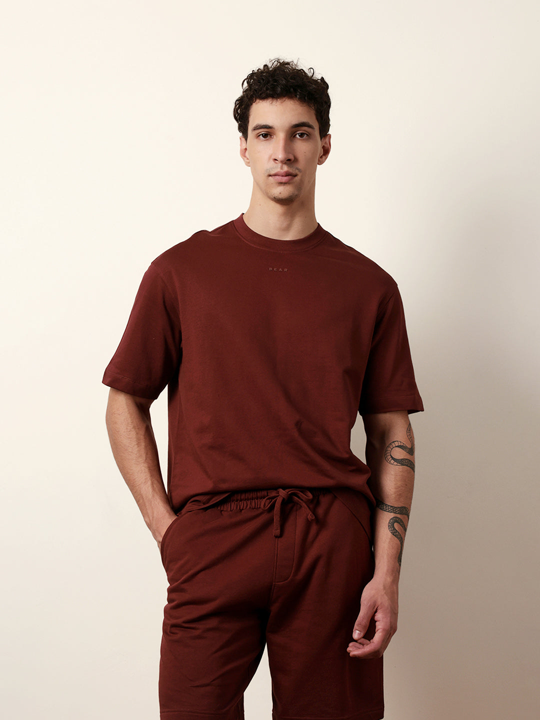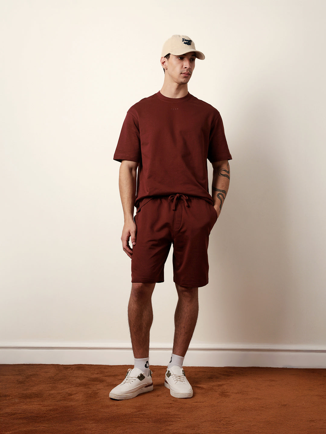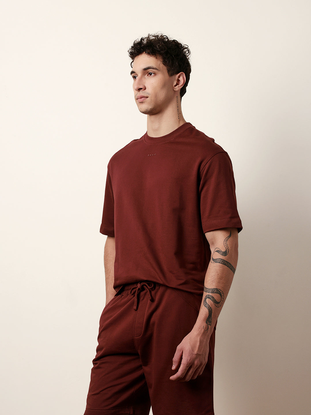 Maroon Oversized Crew Neck Sporty Casual T-Shirt