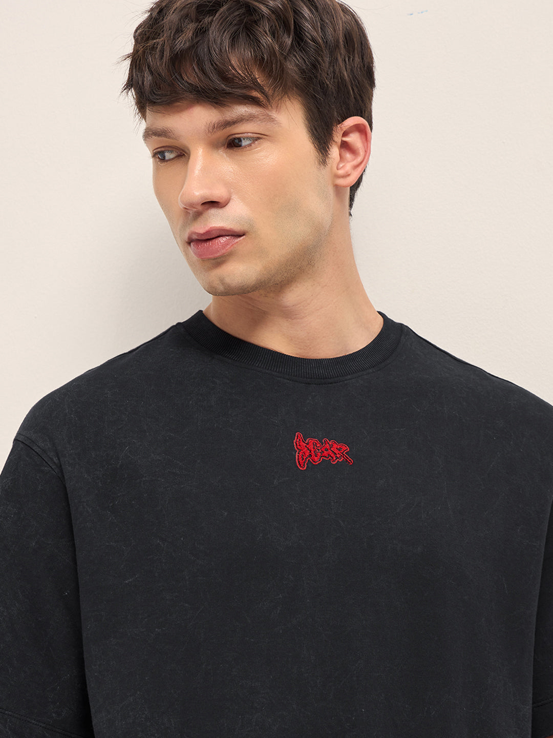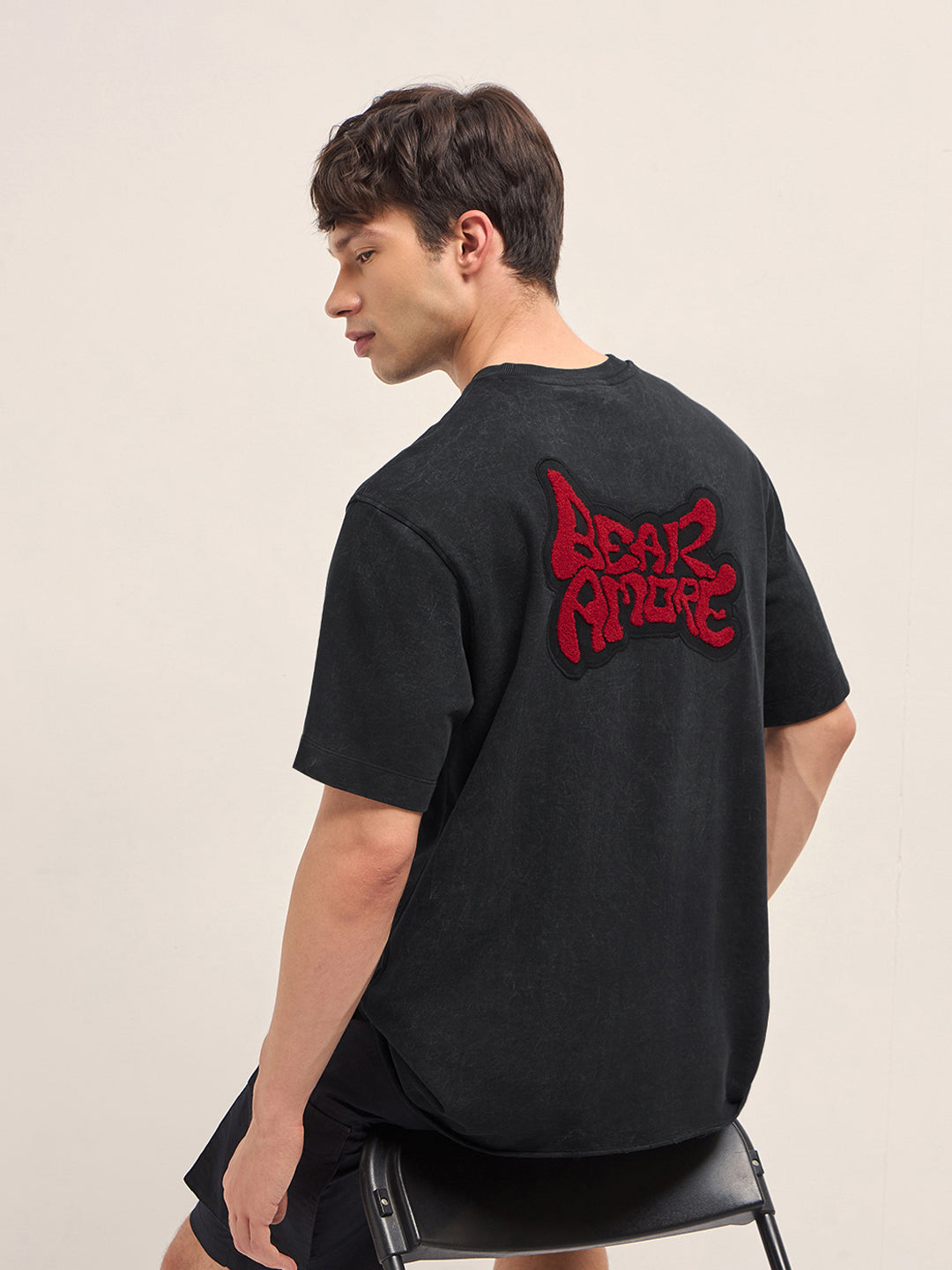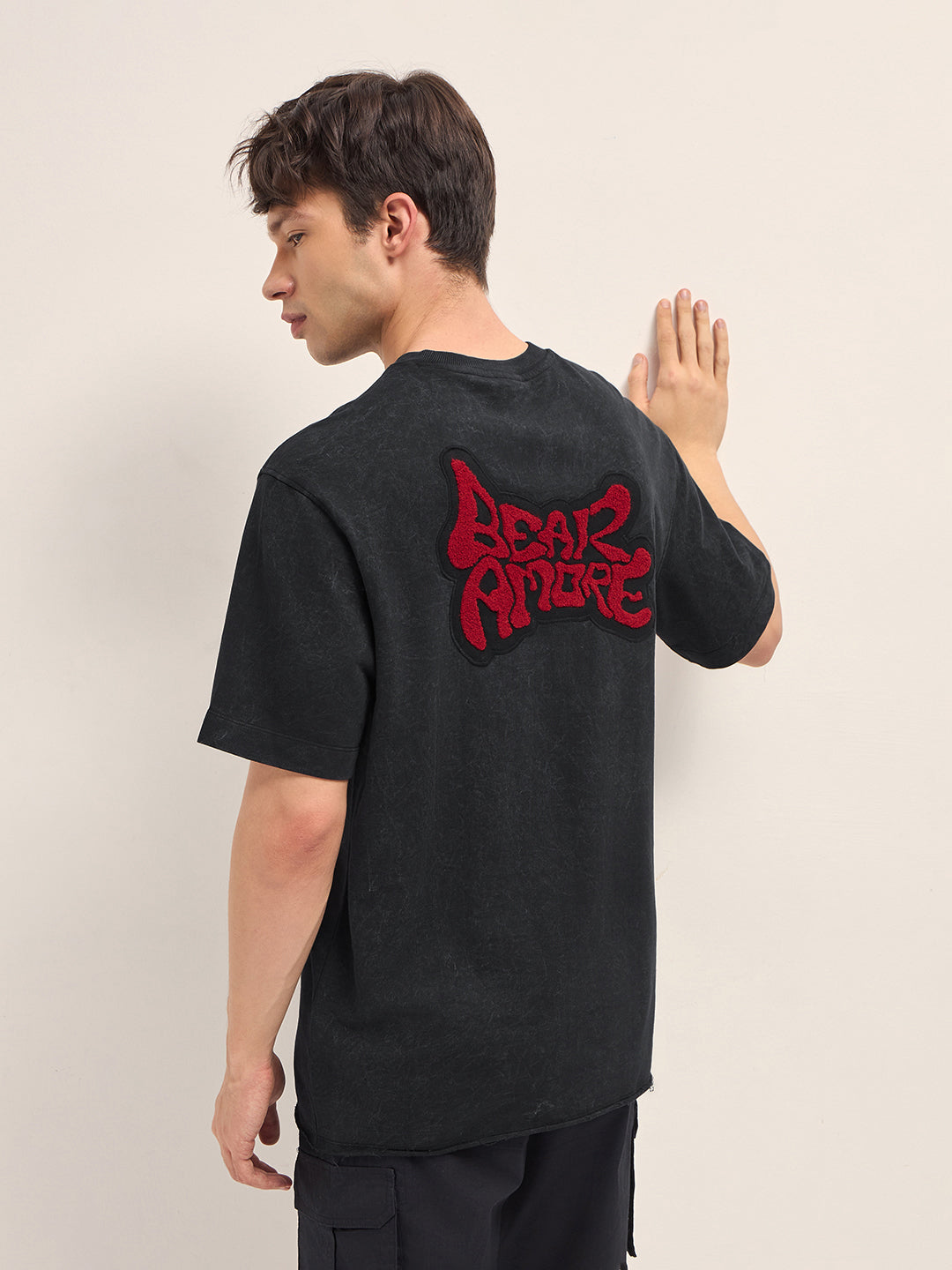 Black Oversized Crew Neck T-Shirt with “Bear Amore” Chenille Patch Embroidery