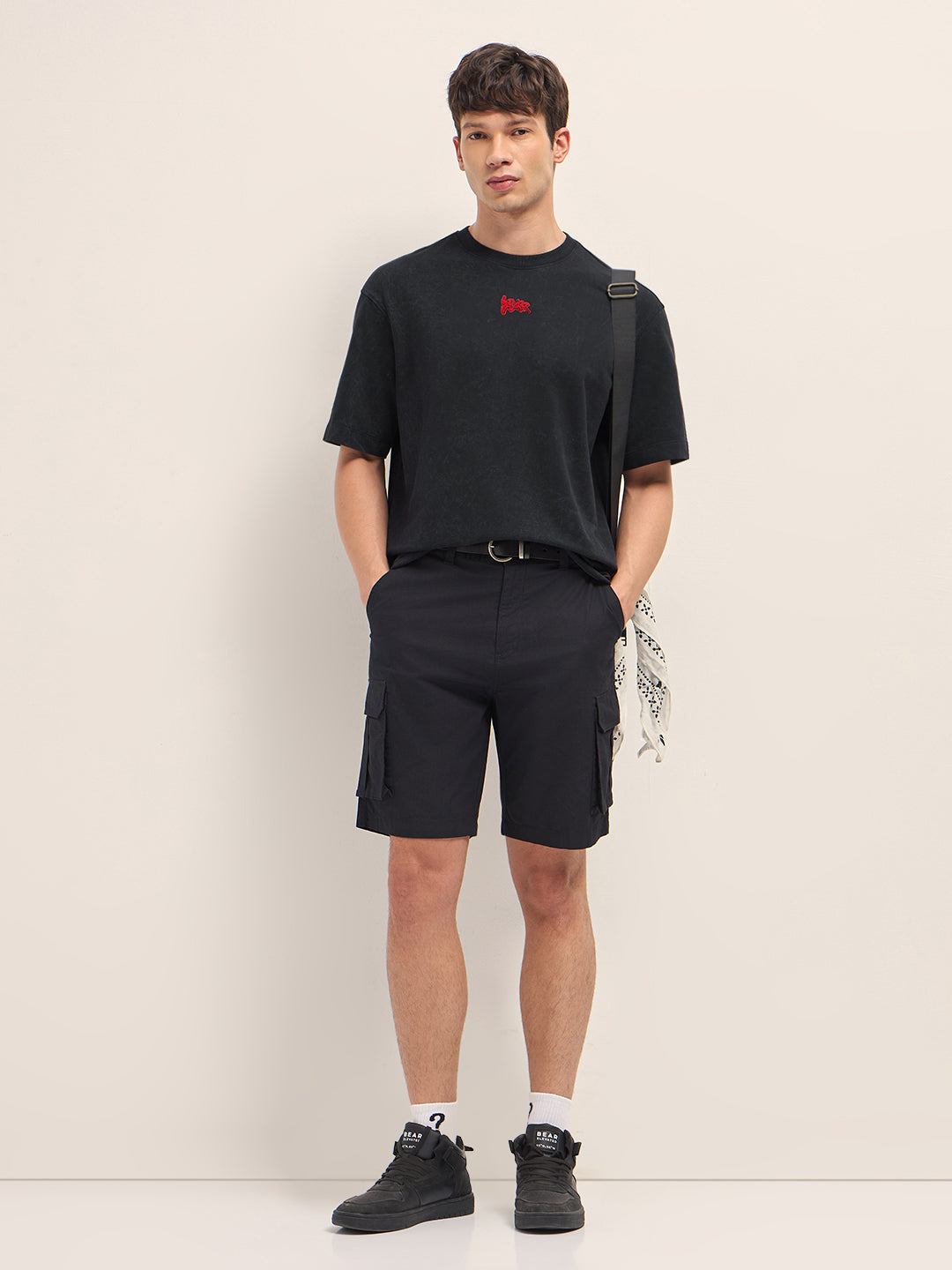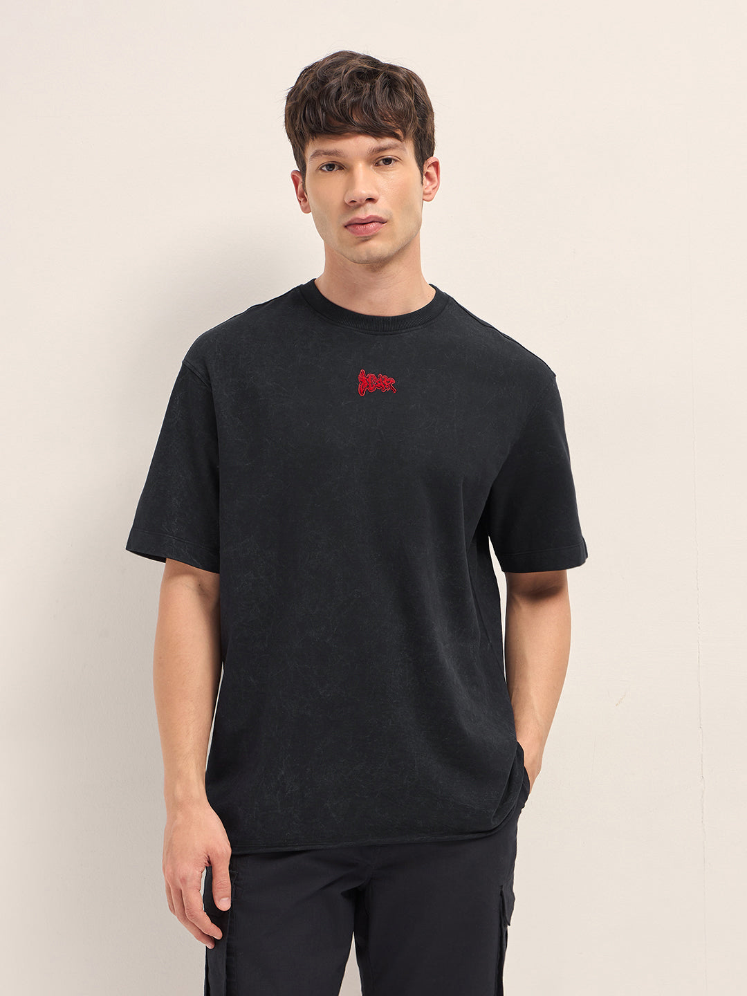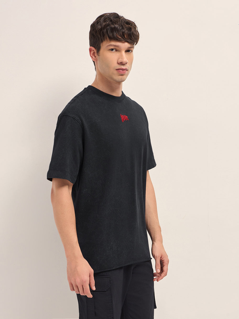 Black Oversized Crew Neck T-Shirt with “Bear Amore” Chenille Patch Embroidery