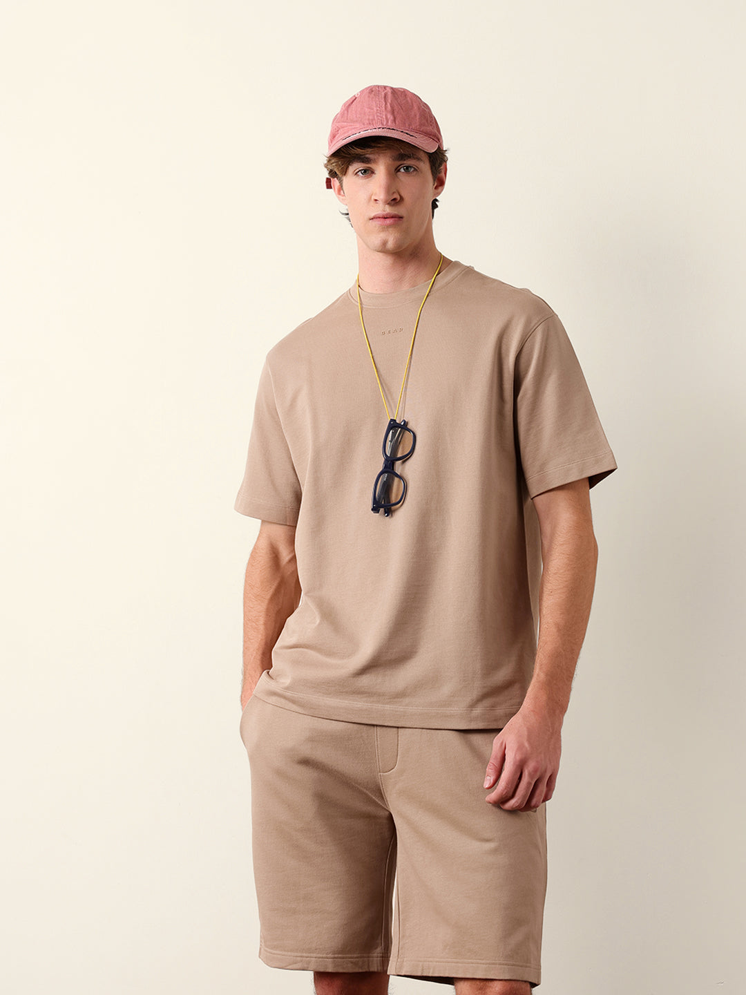 Shop Cream Oversized Crew Neck Sporty Casual T-Shirt Online