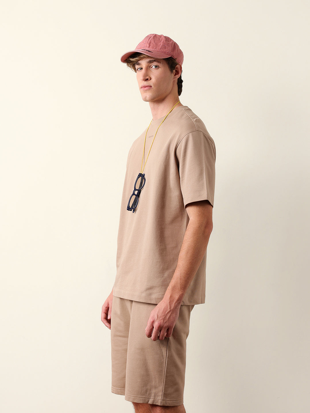 Cream Oversized Crew Neck Sporty Casual T-Shirt