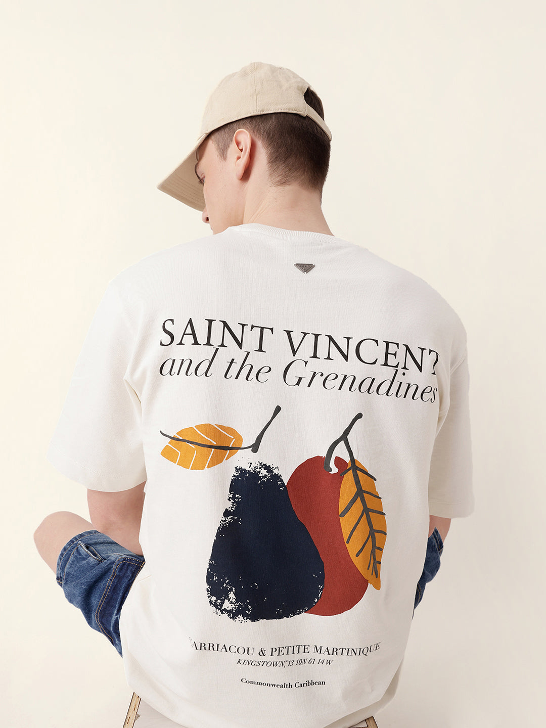- Back Design: Large abstract fruit and leaf graphic with bold “Saint Vincent and the Grenadines” typography