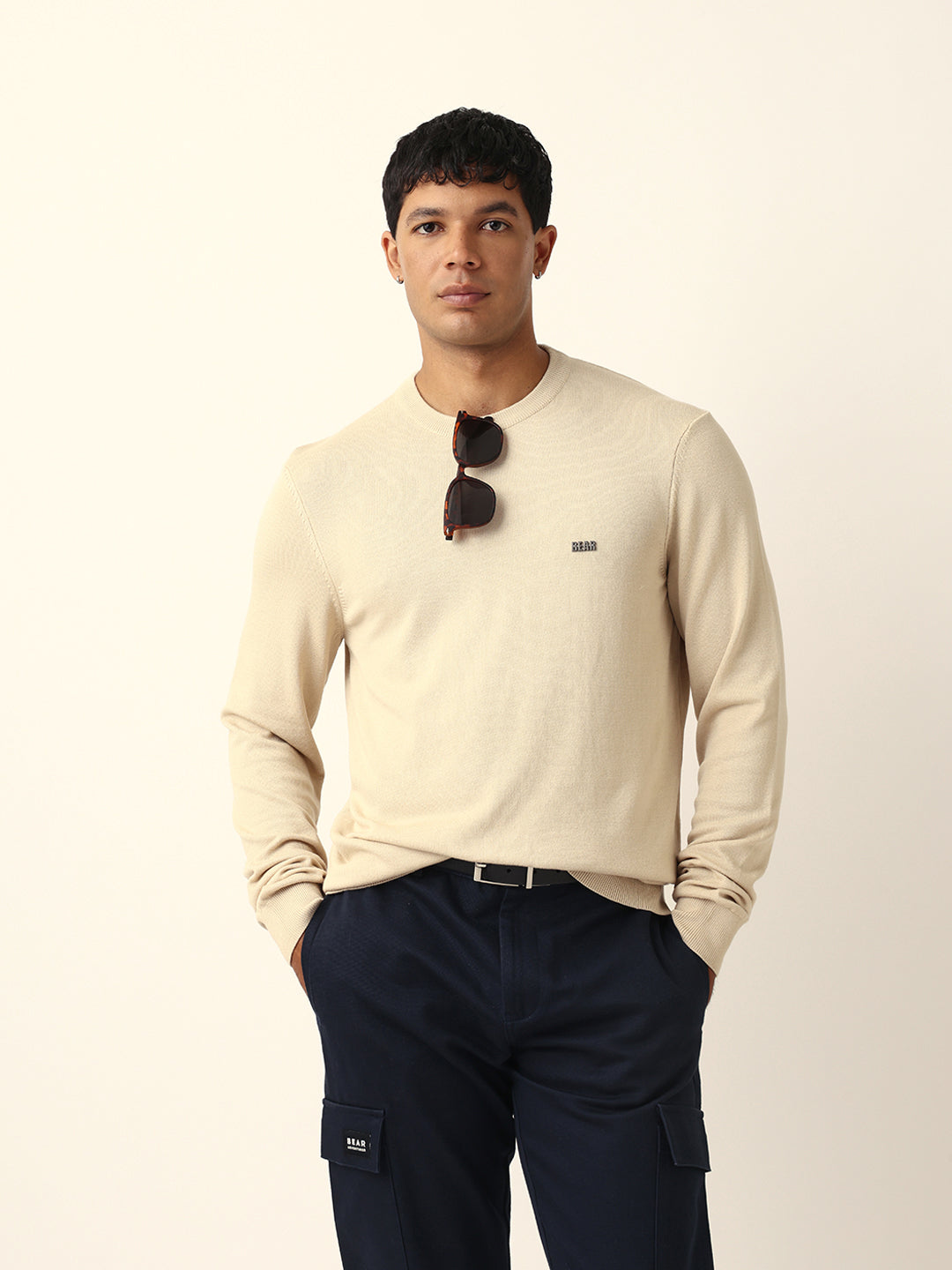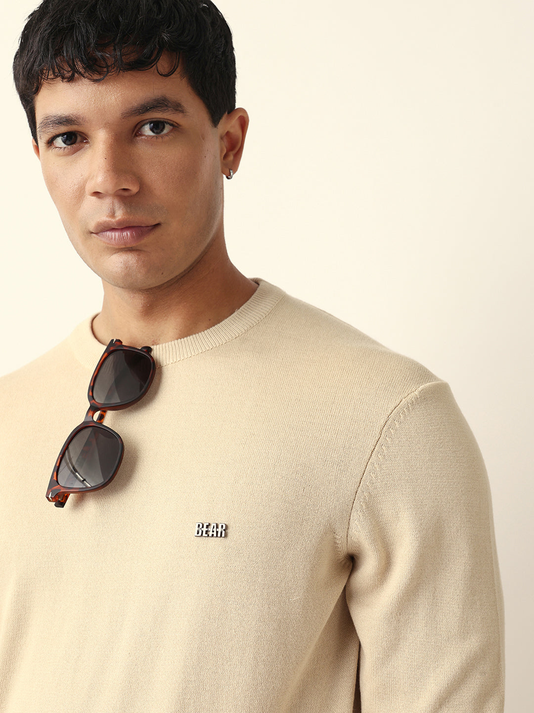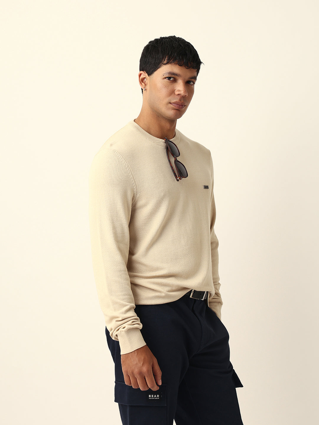 Beige Regular Fit Crew Neck Long Sleeve T-Shirt