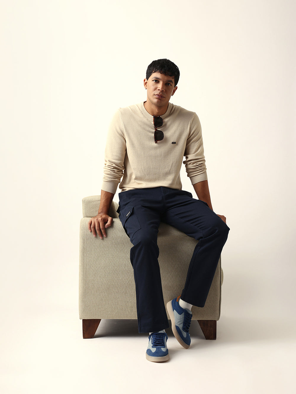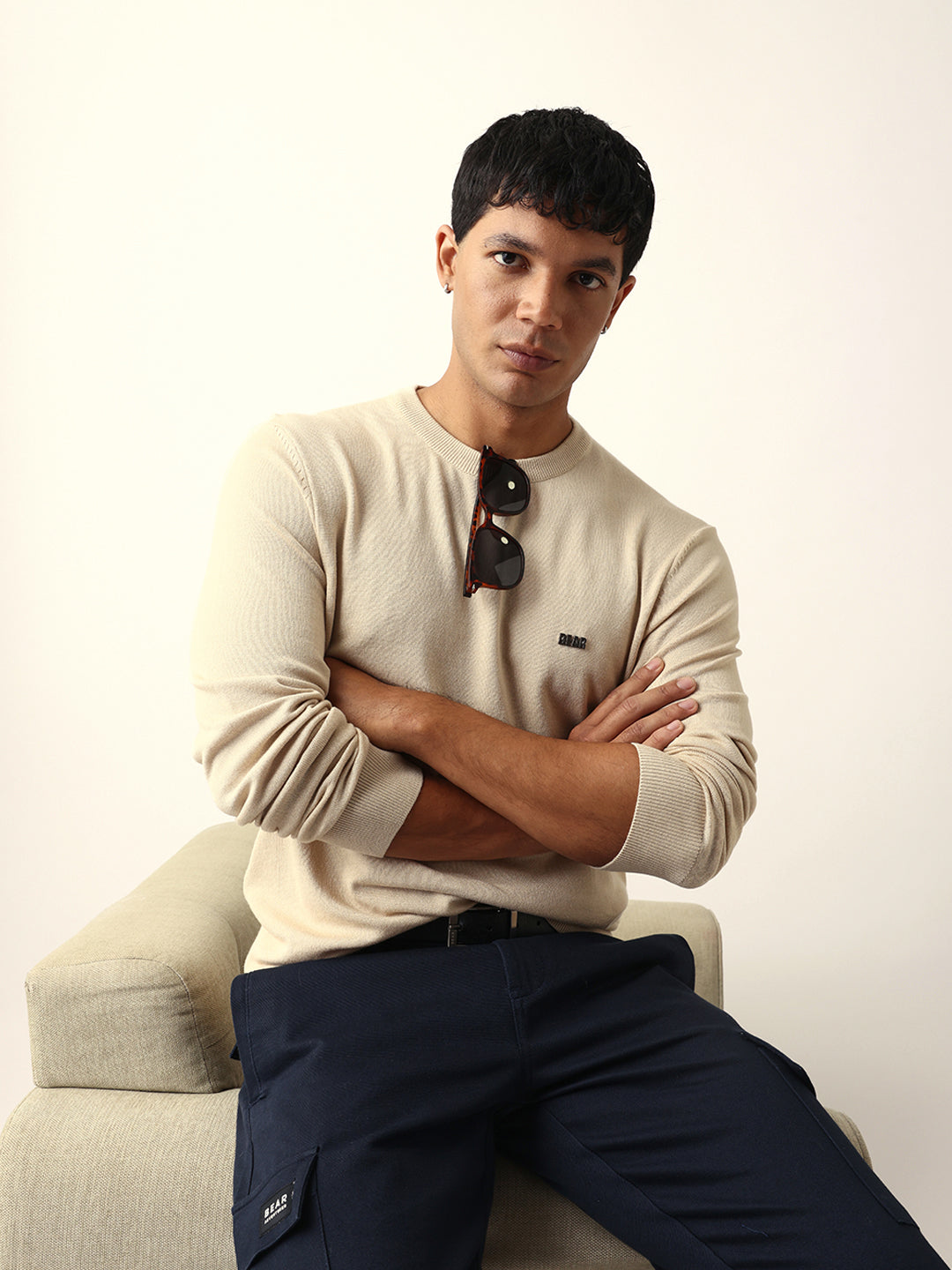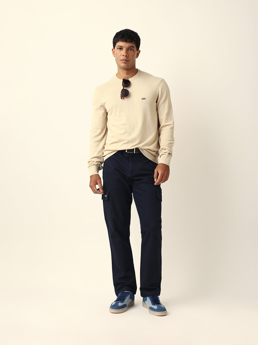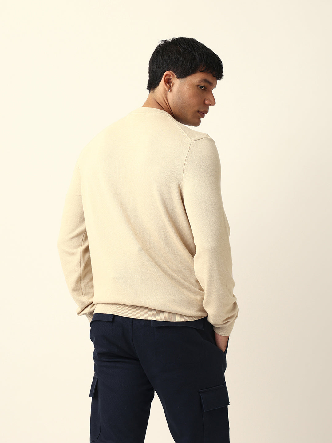 Beige Regular Fit Crew Neck Long Sleeve T-Shirt