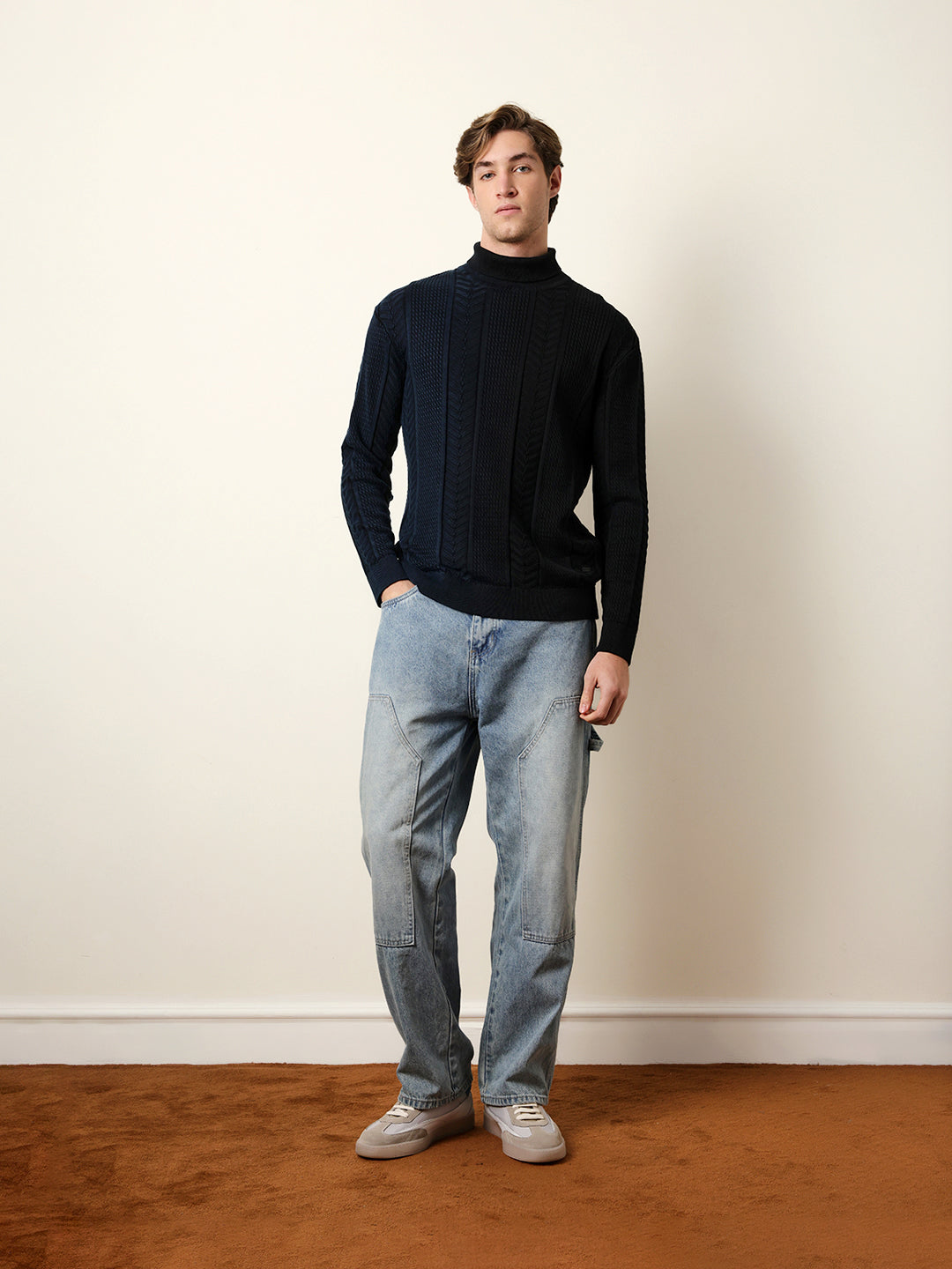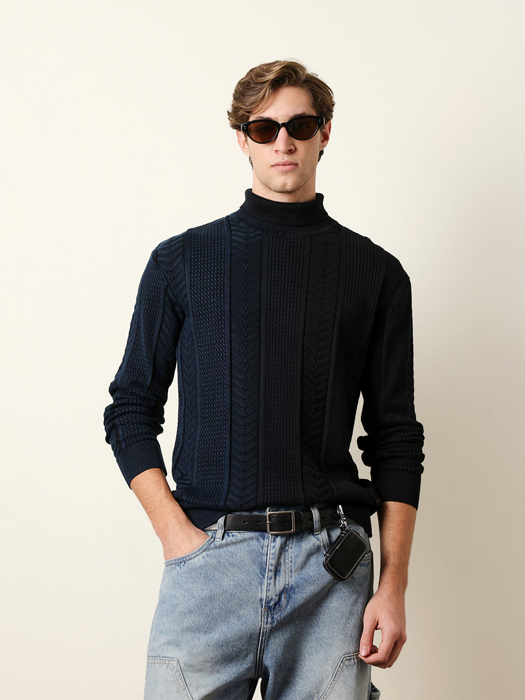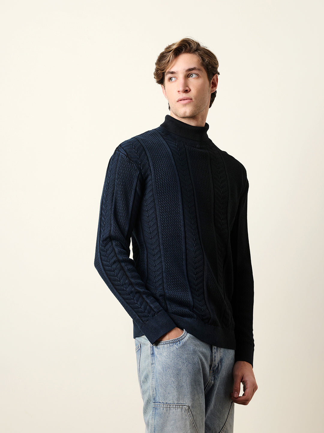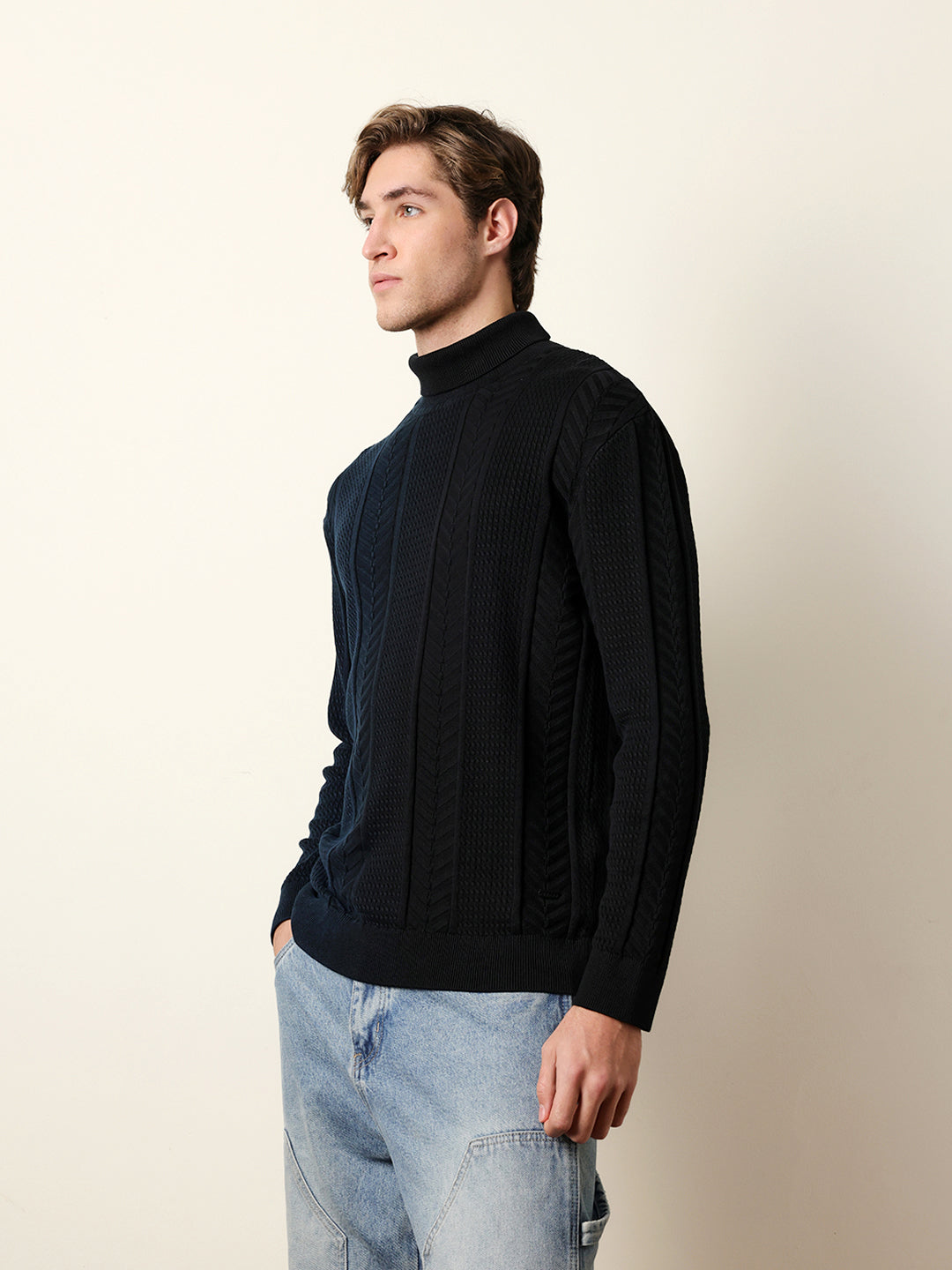 • Pattern : Half & Half Textured Vertical Cable Knit design