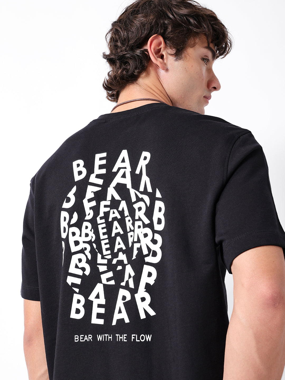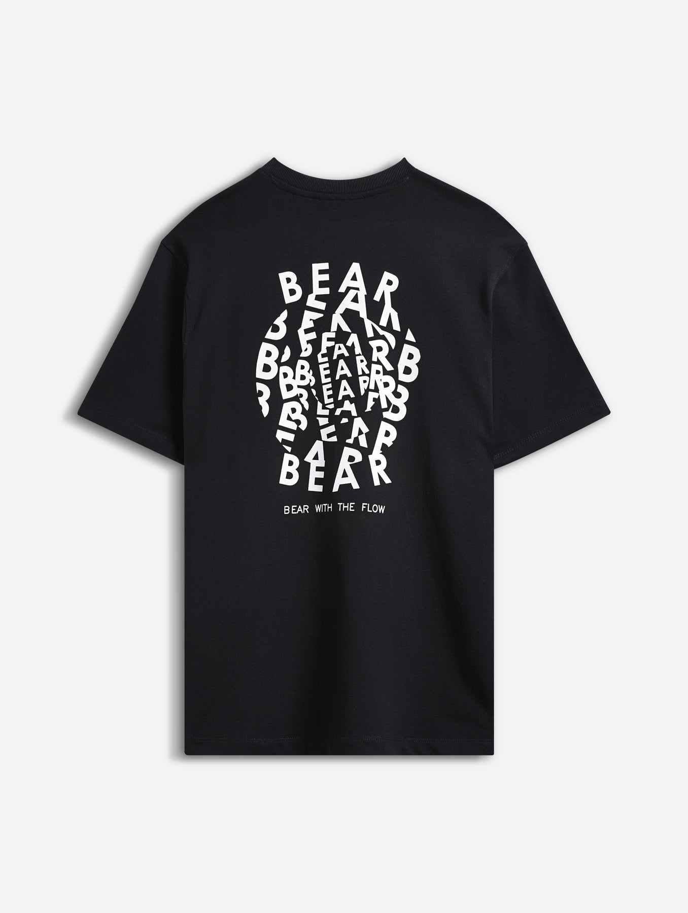 - Back Design: Bold multi-layered “BEAR” typography forming a stacked graphic with “Bear with the Flow” tagline