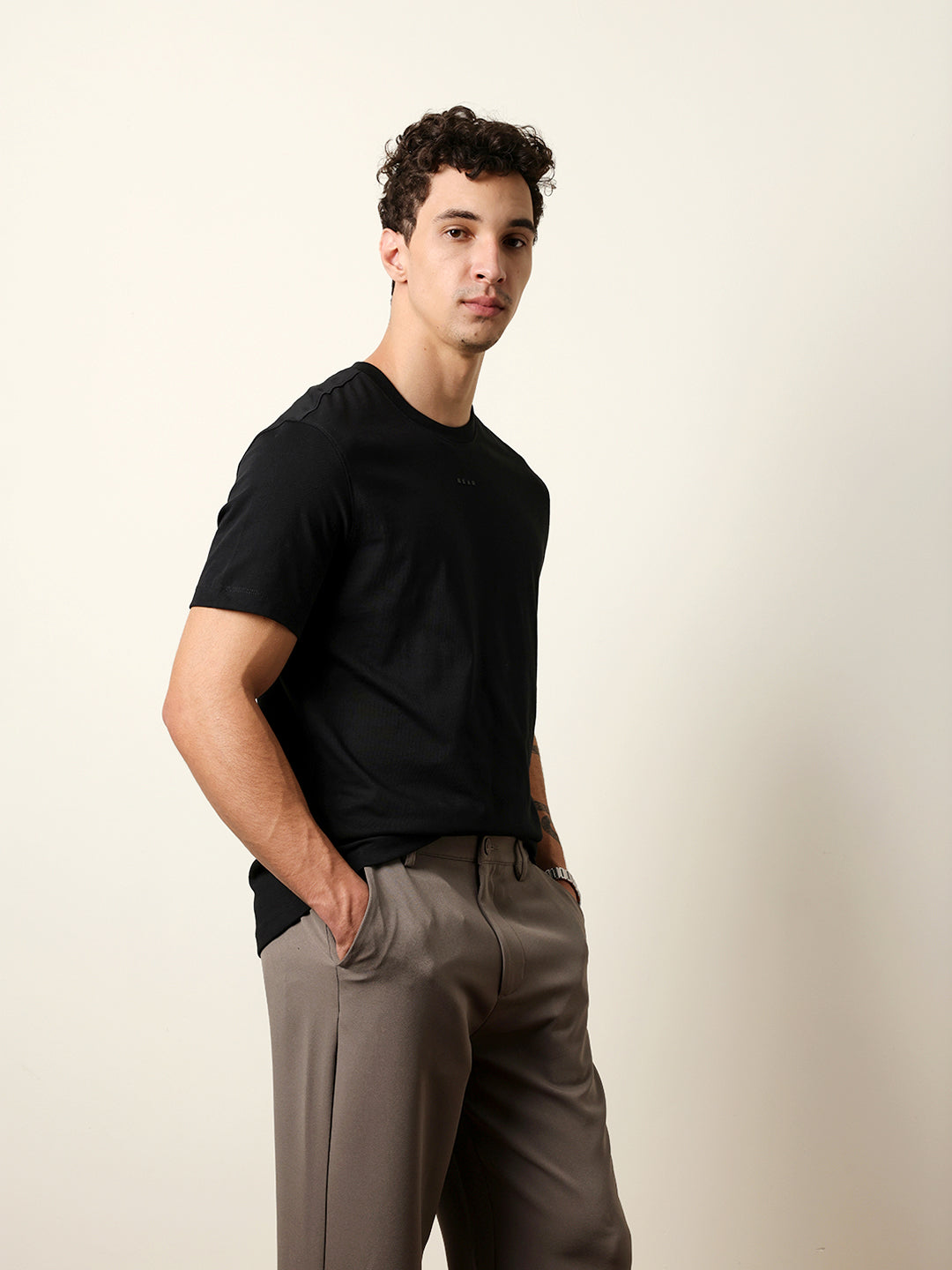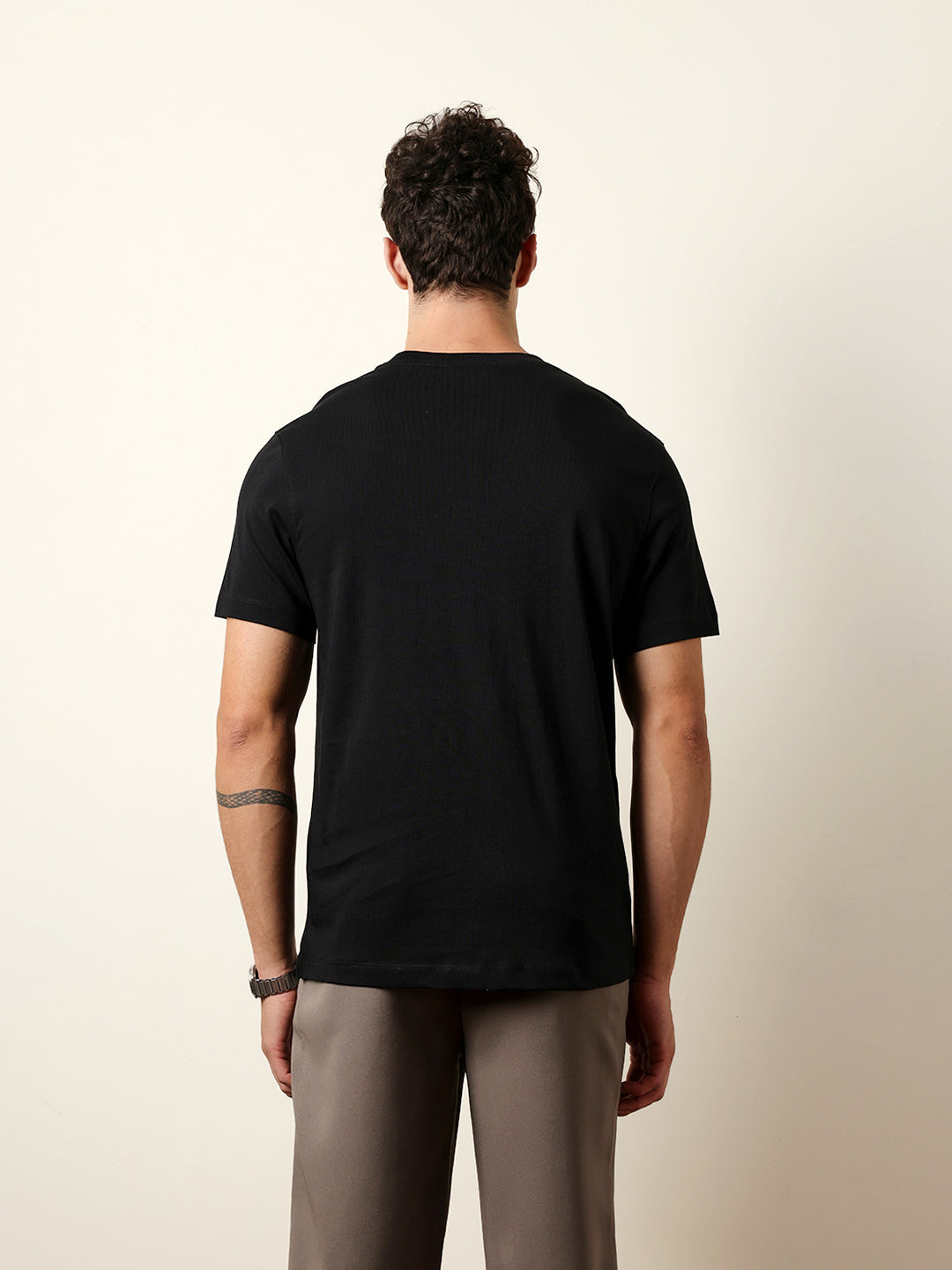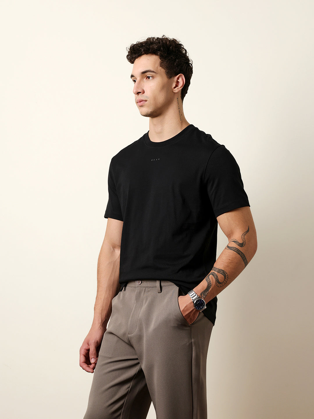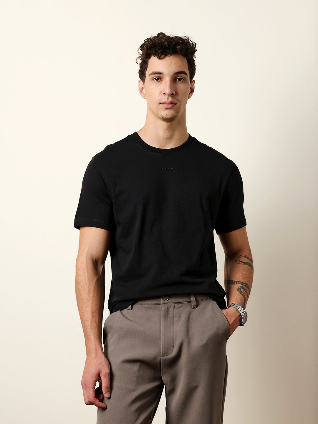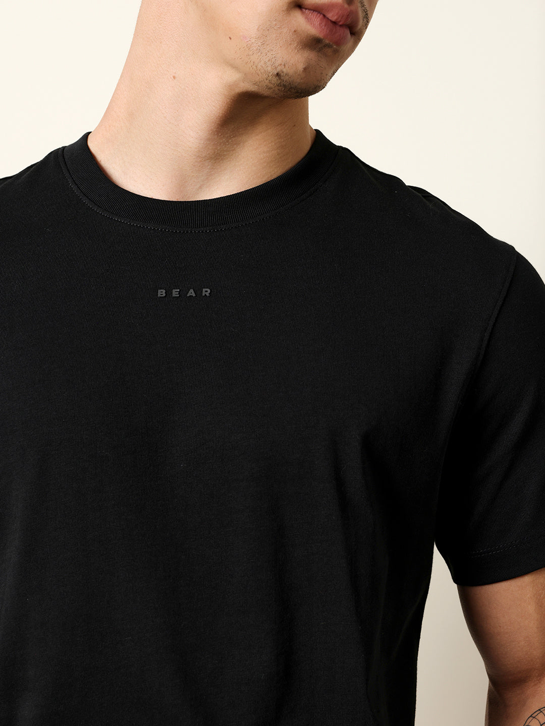 Black Solid Crew Neck T-Shirt with “BEAR” Logo
