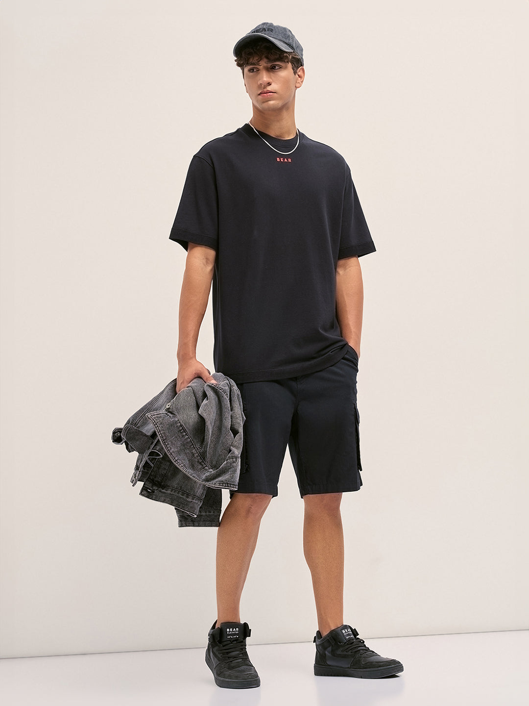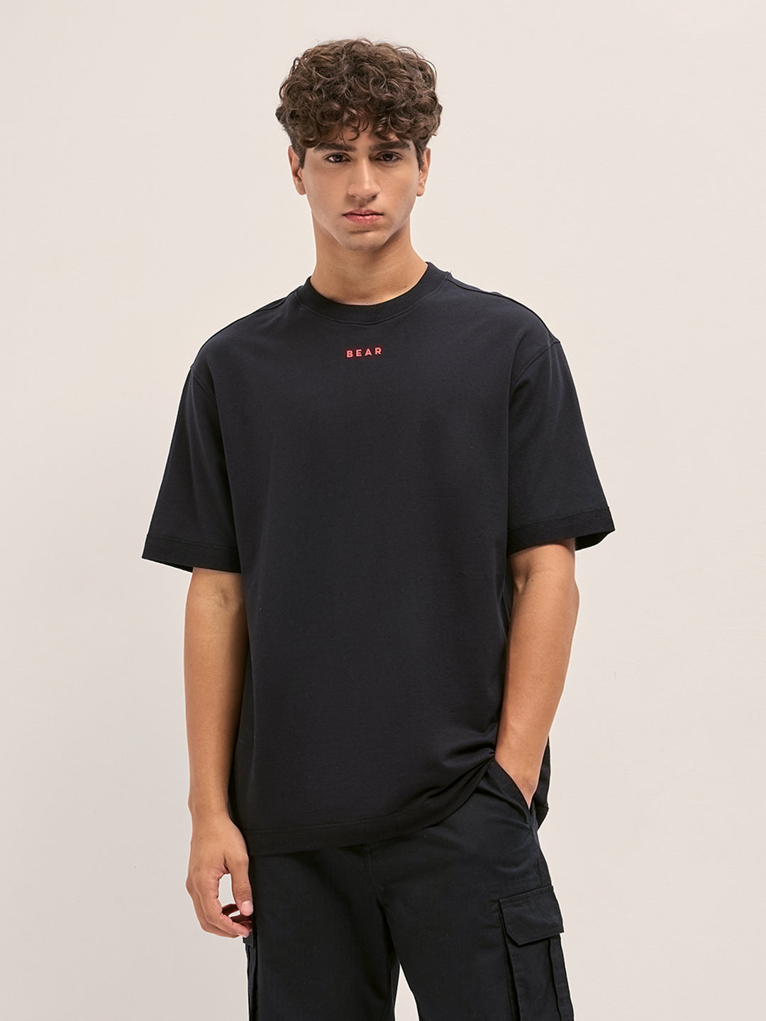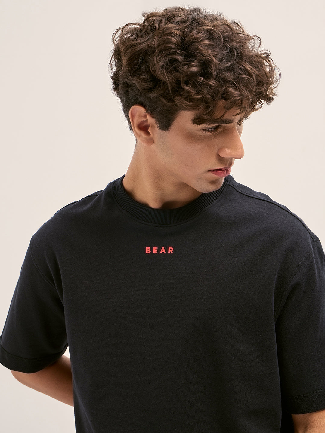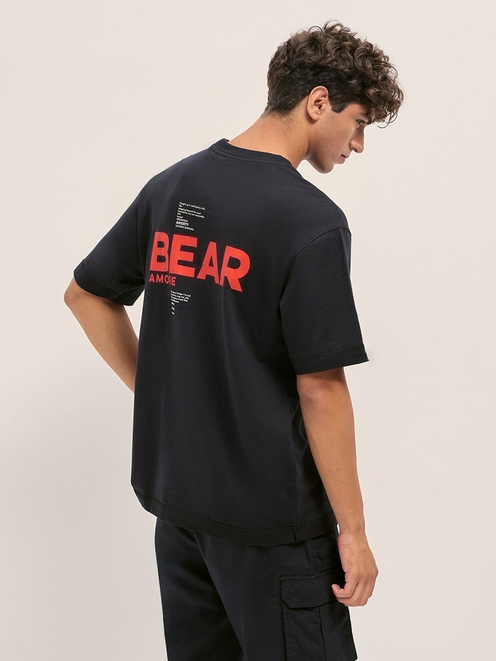 Black Crew Neck Graphic Print T-Shirt with Bold “BEAR” Illustration on Back