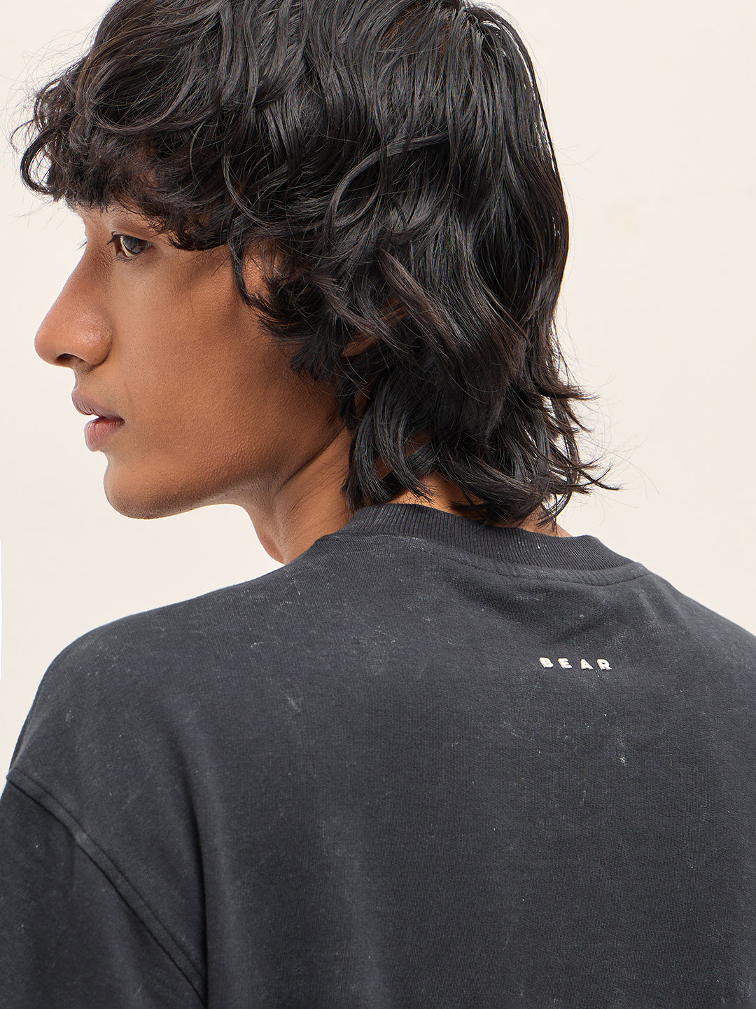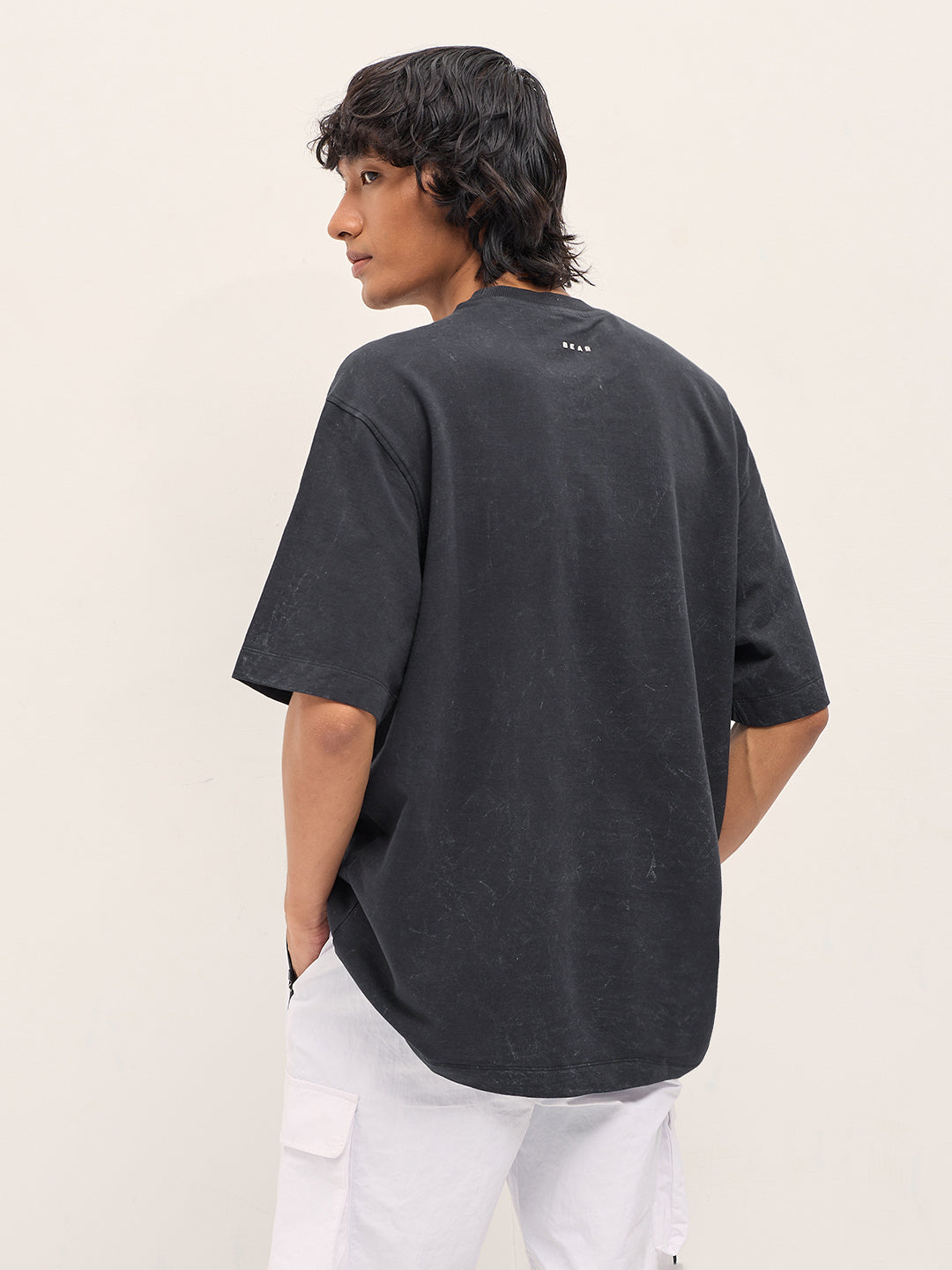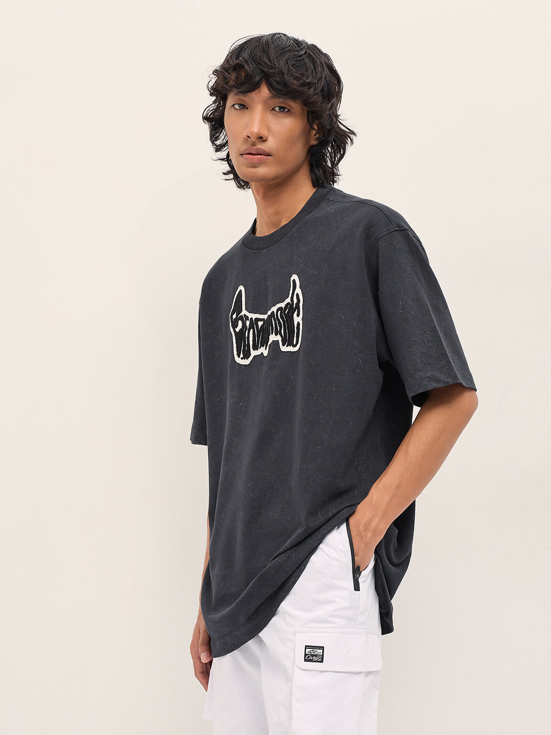 Grey Oversized Acid Wash T-Shirt with “Bear Amore” Chenille Patch