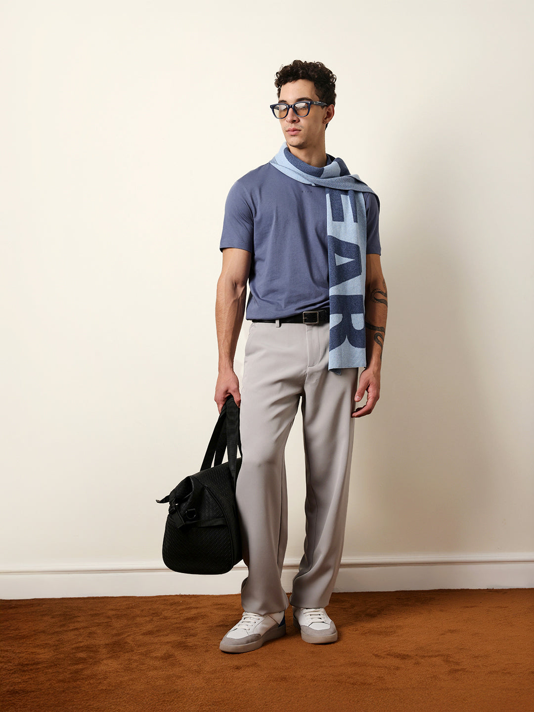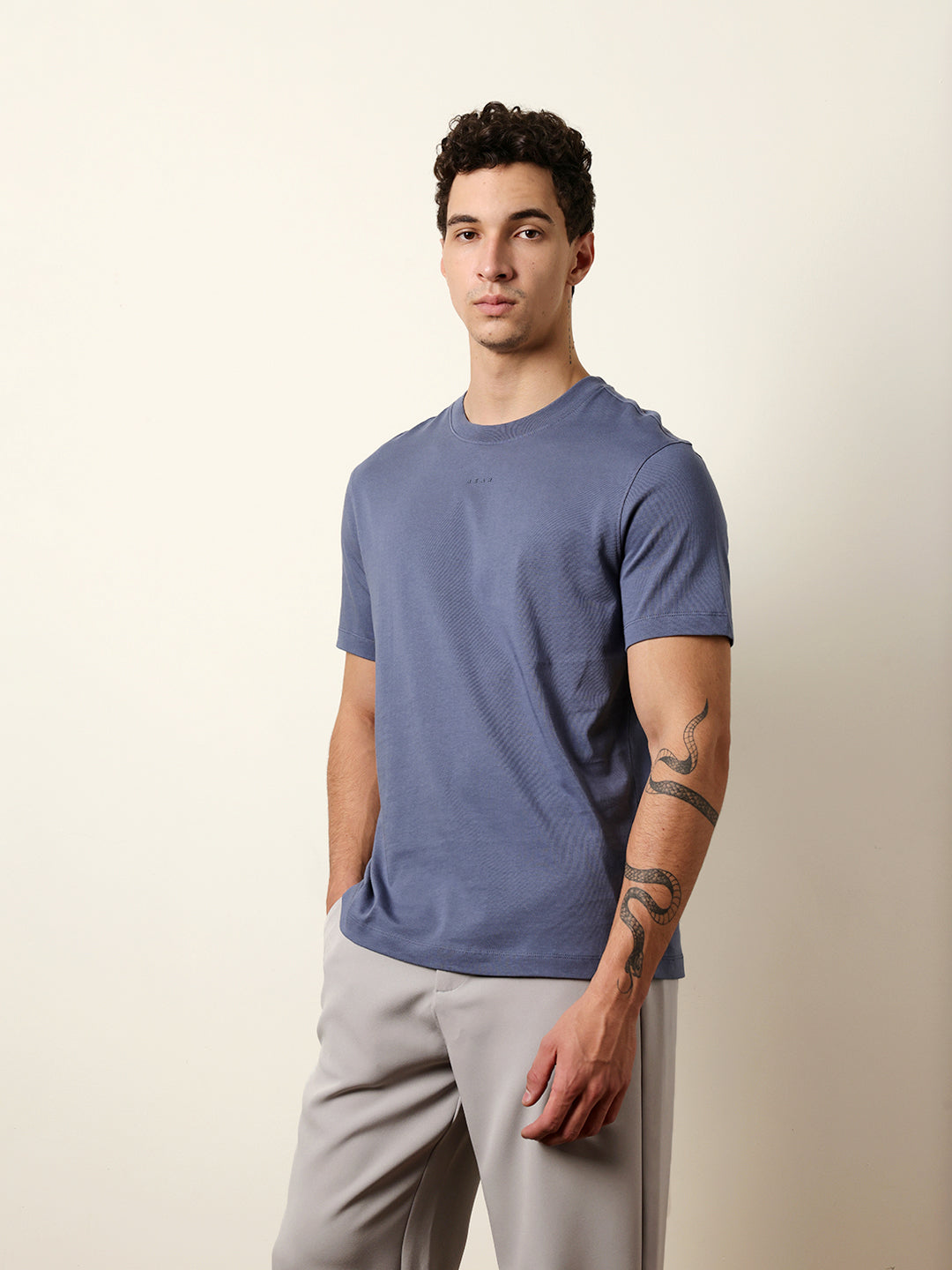 Shop Blue Solid Crew Neck T-Shirt with “BEAR” Logo Online