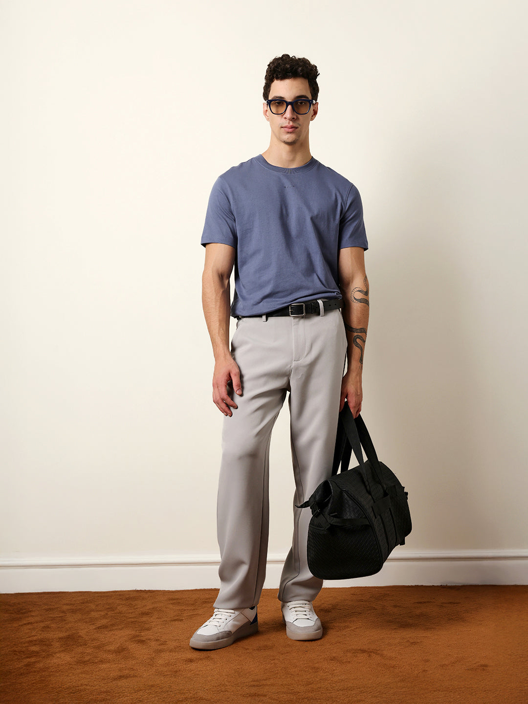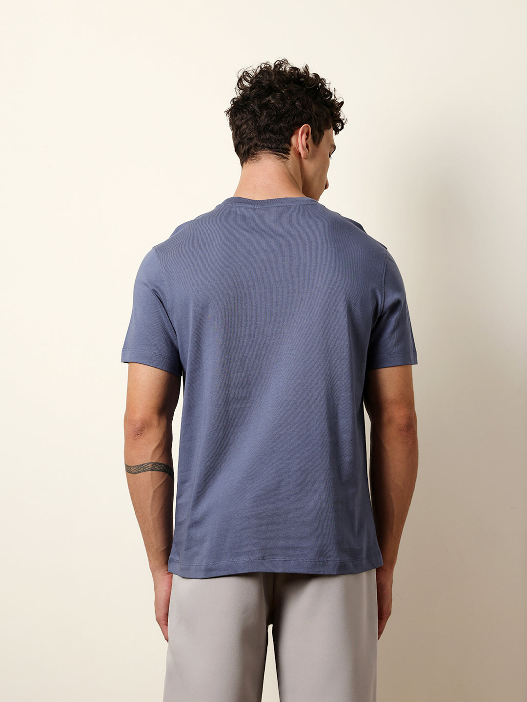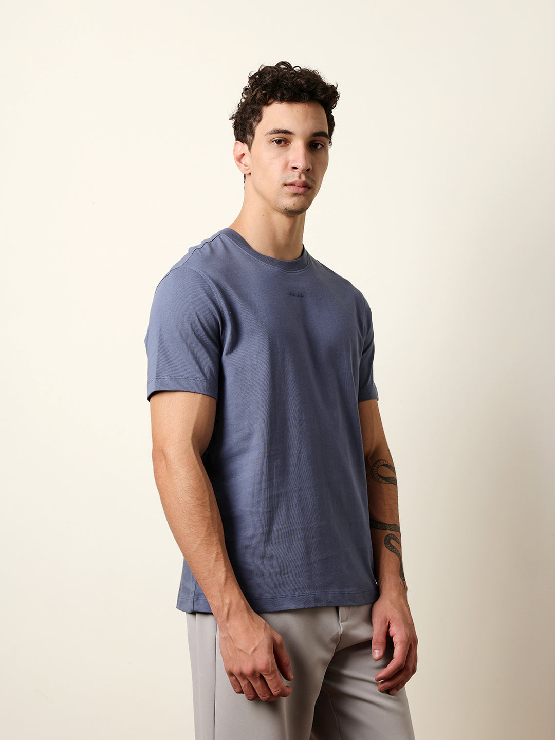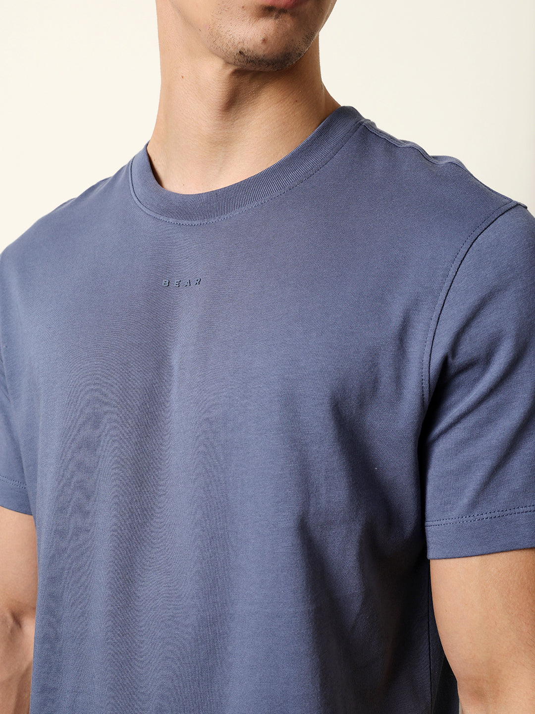 Blue Solid Crew Neck T-Shirt with “BEAR” Logo