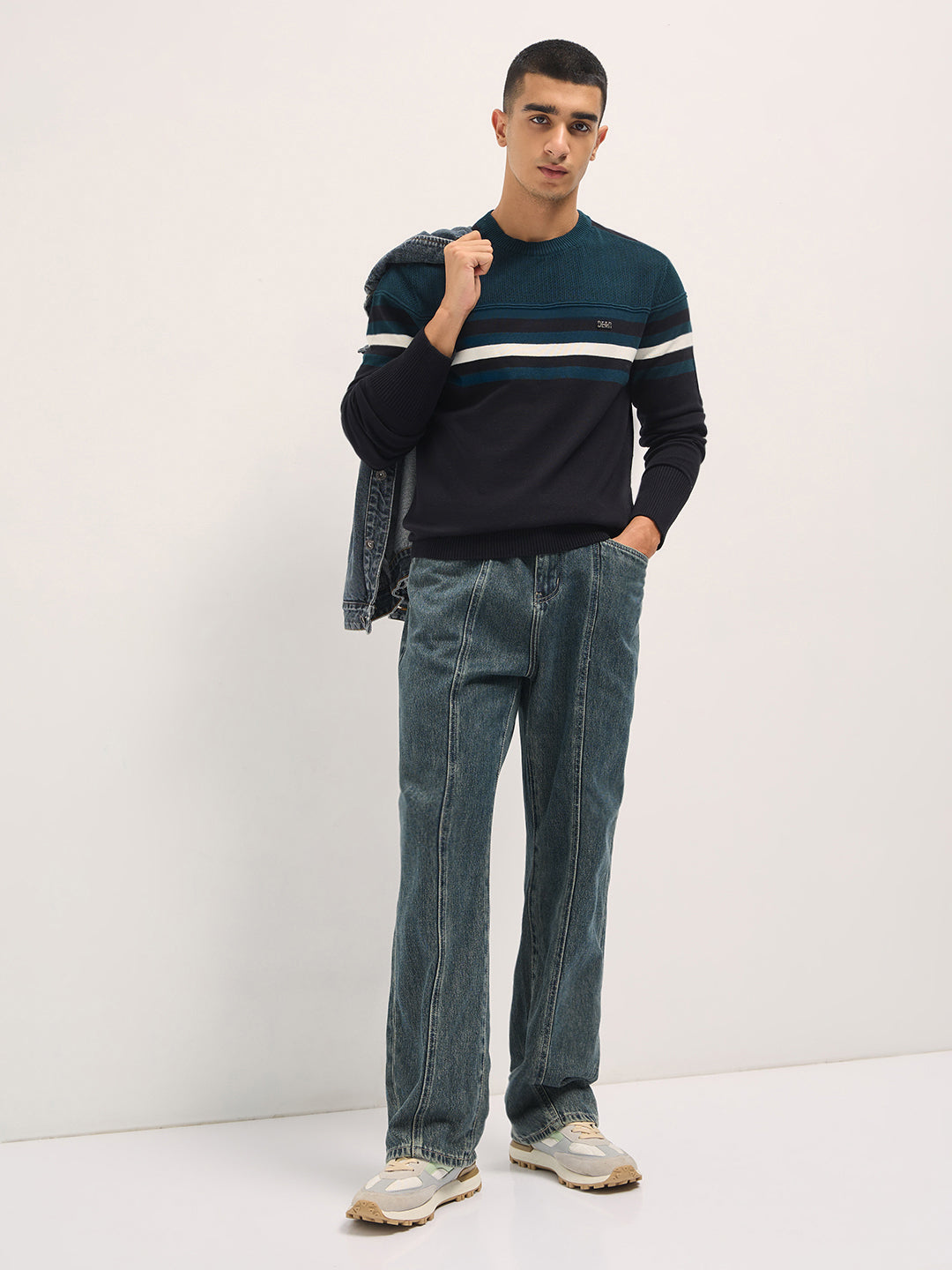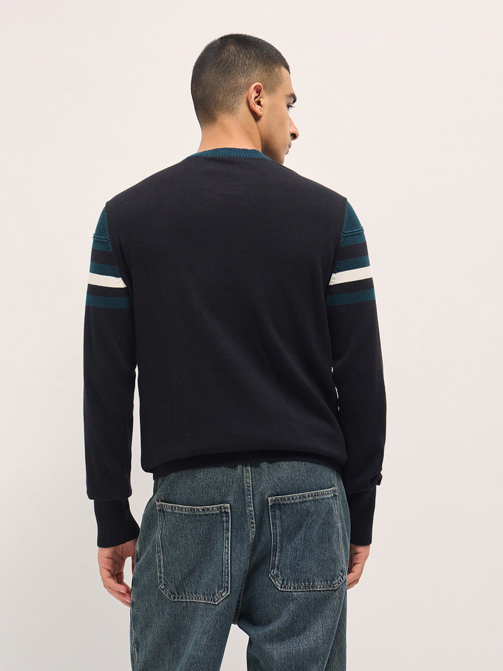 • Sleeves: Long sleeves with contrast stripe detailing