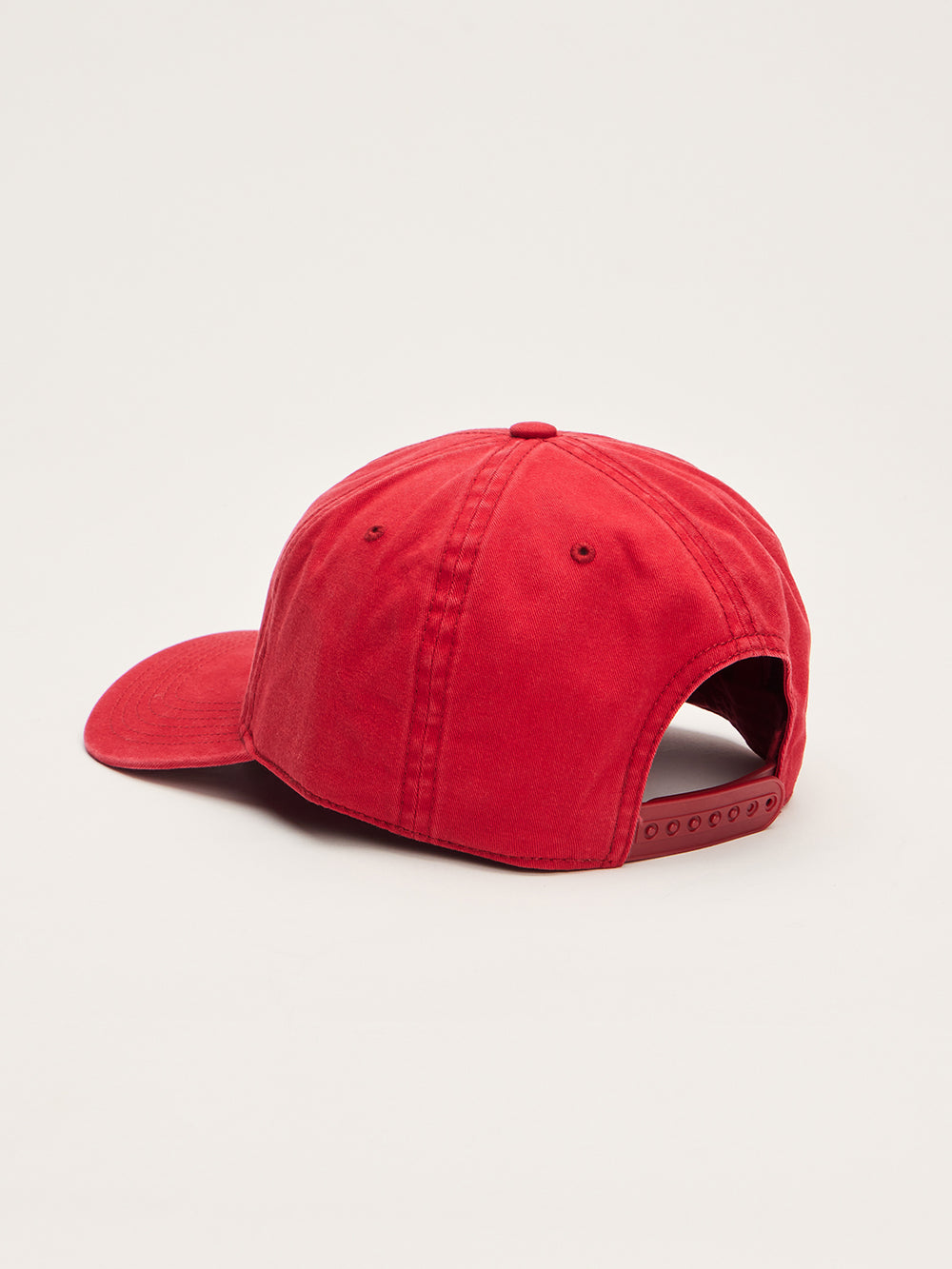 Shop Red Cotton Snapback Baseball Cap with Embroidered Text Online.