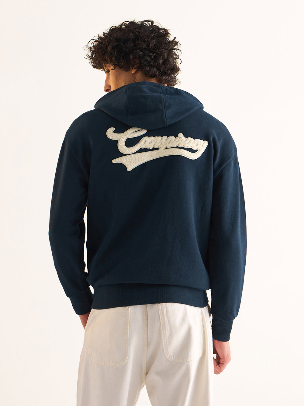 Navy Blue Relaxed Fit Hoodie with Chenille Patch Design
