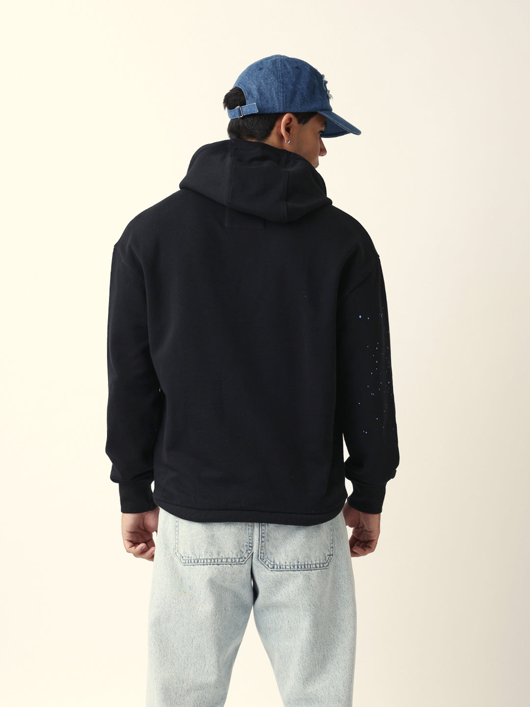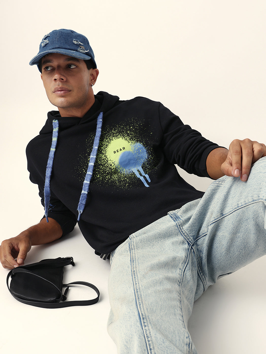 Black Relaxed Fit Hoodie with Artistic Neon Spray Graphic
